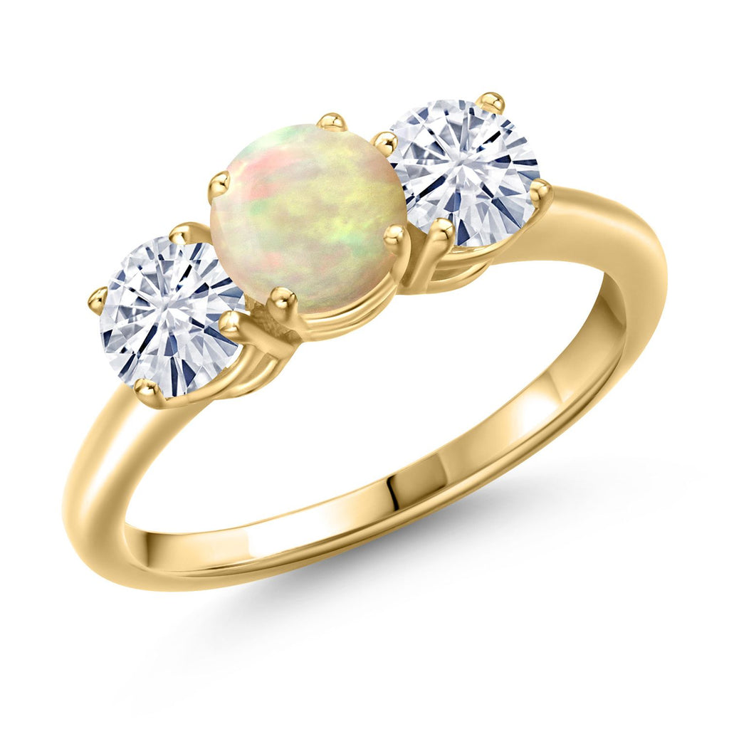 18K Yellow Gold Plated Silver 3-Stone Engagement Ring for Women | 6MM Round Gemstone Birthstone with 5MM Round White Moissanite Accents | Wedding Anniversary Promise Ring | Sizes 5-9