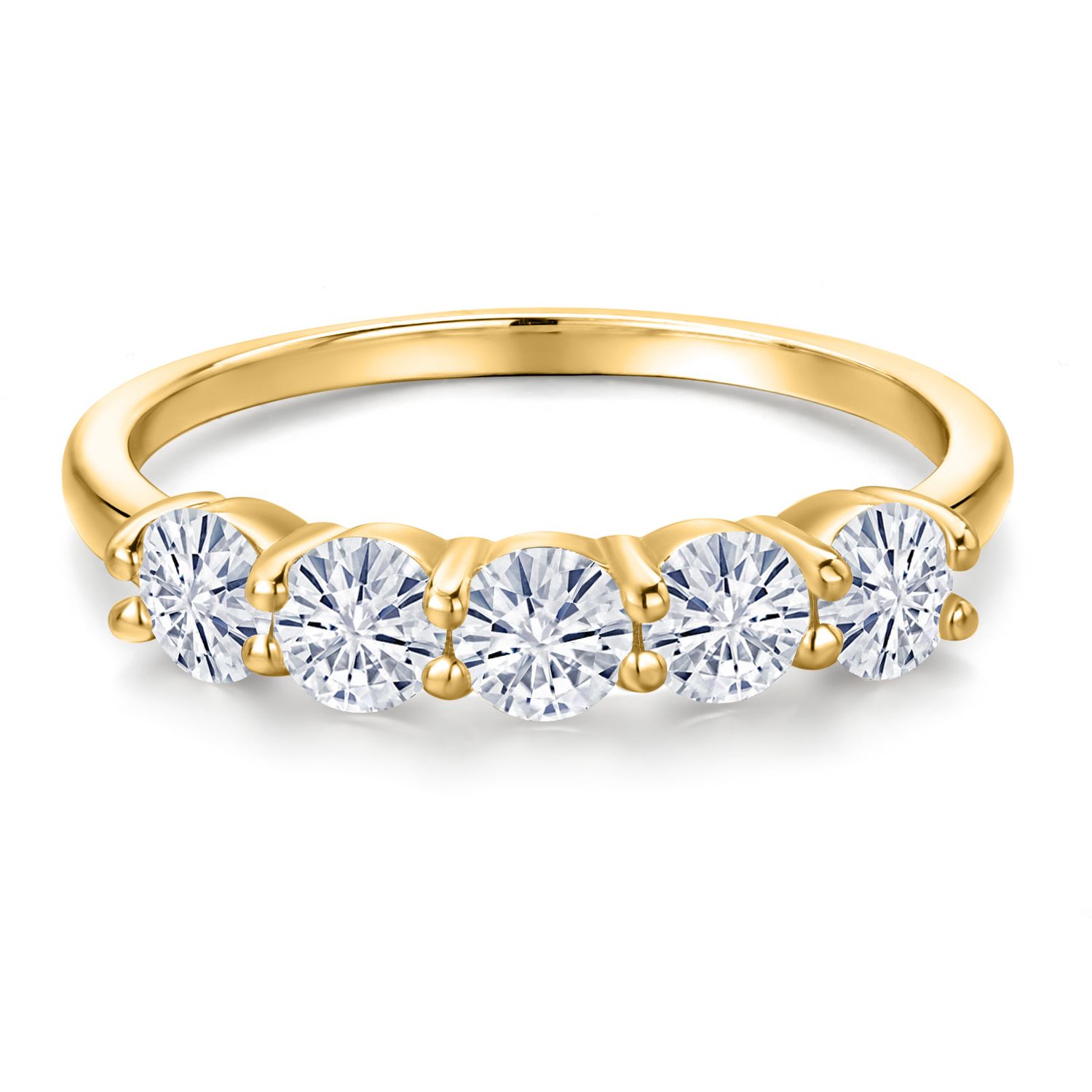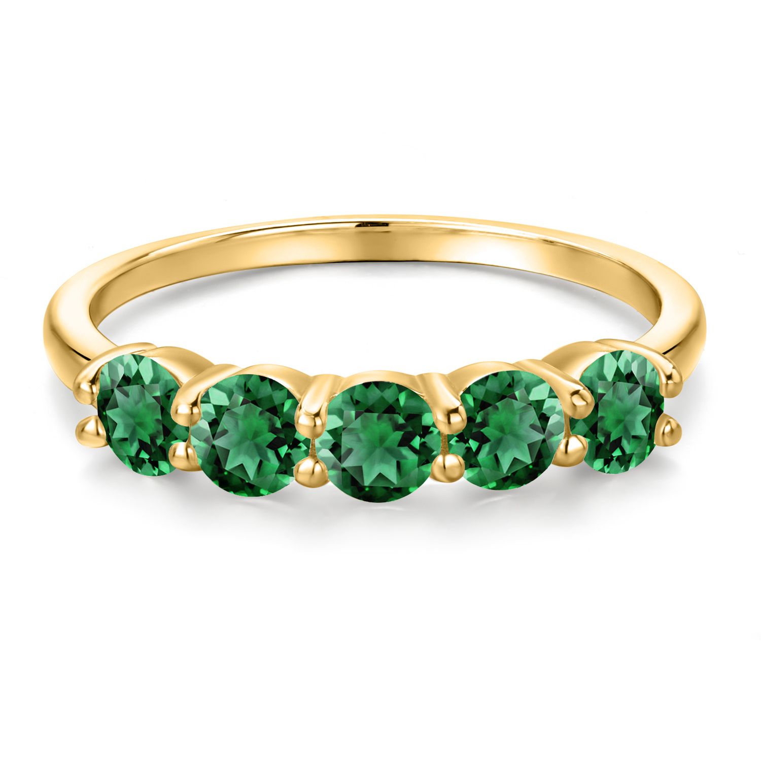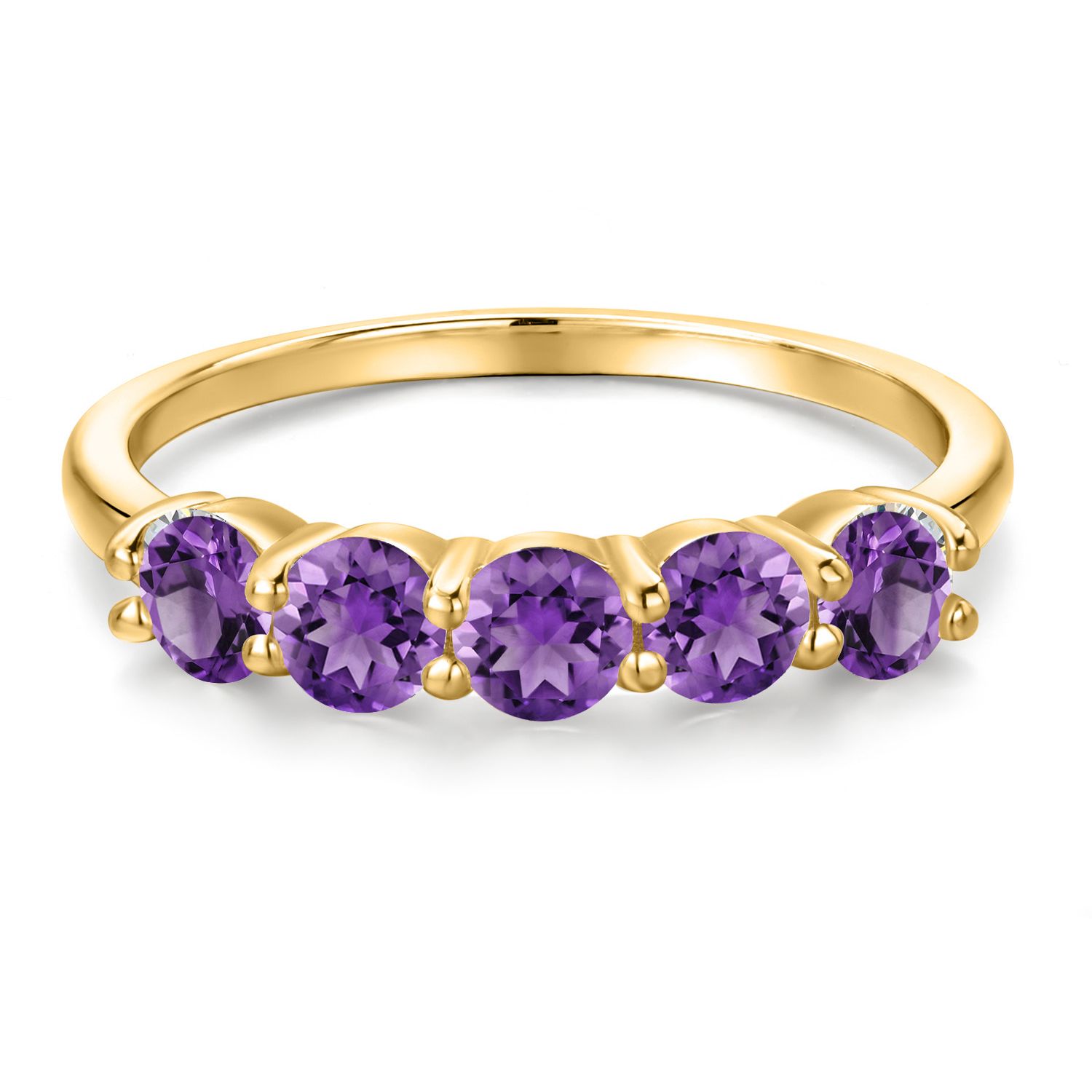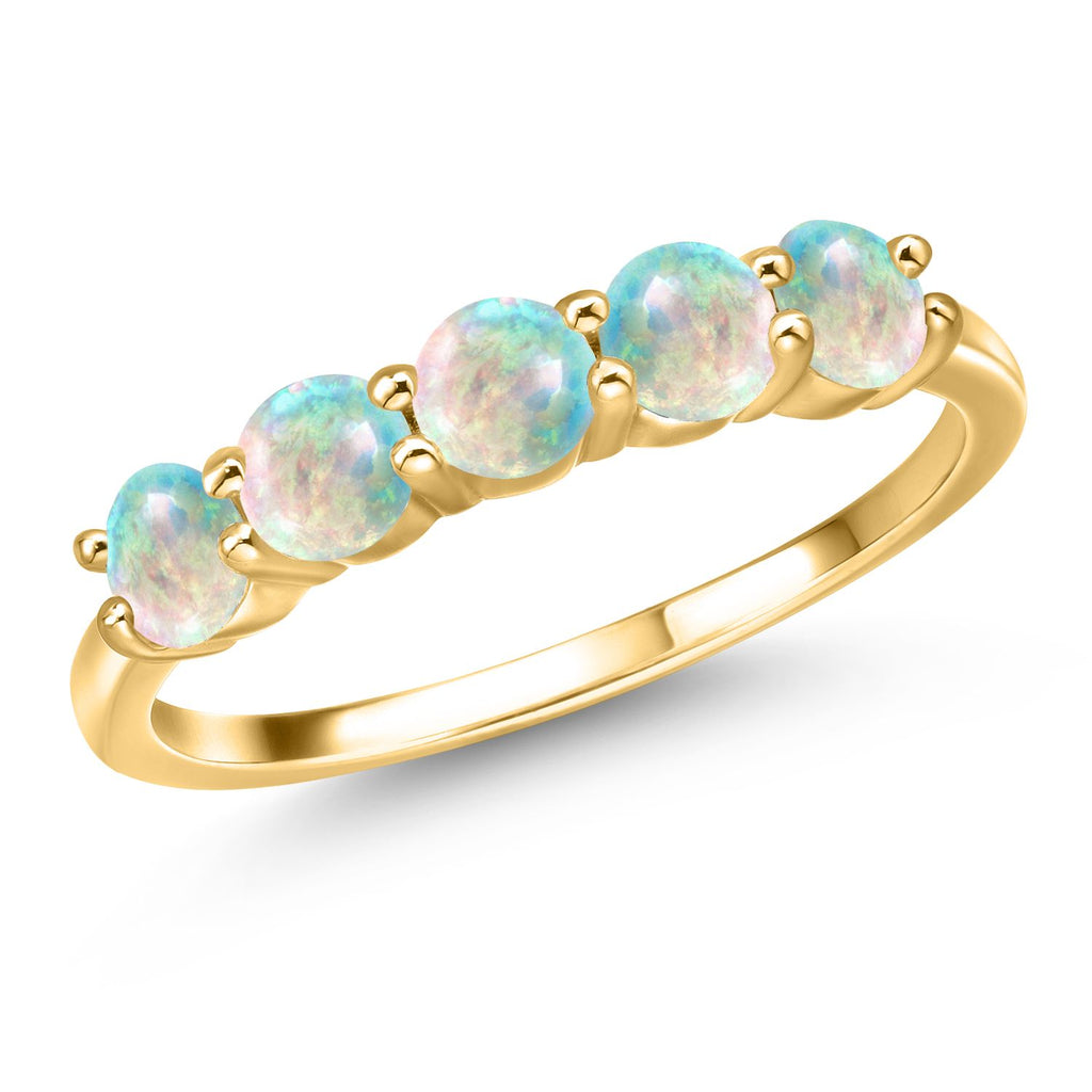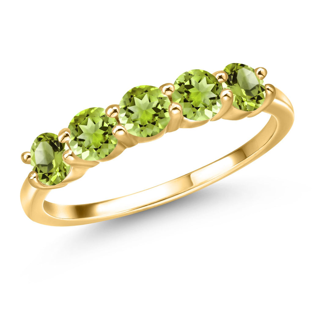 18K Yellow Gold Plated Silver 4MM Round Gemstone Birthstone 5-Stone Wedding Band Ring | Five Stone Engagement Anniversary Promise Ring For Women | Available in Size 5, 6, 7, 8, 9