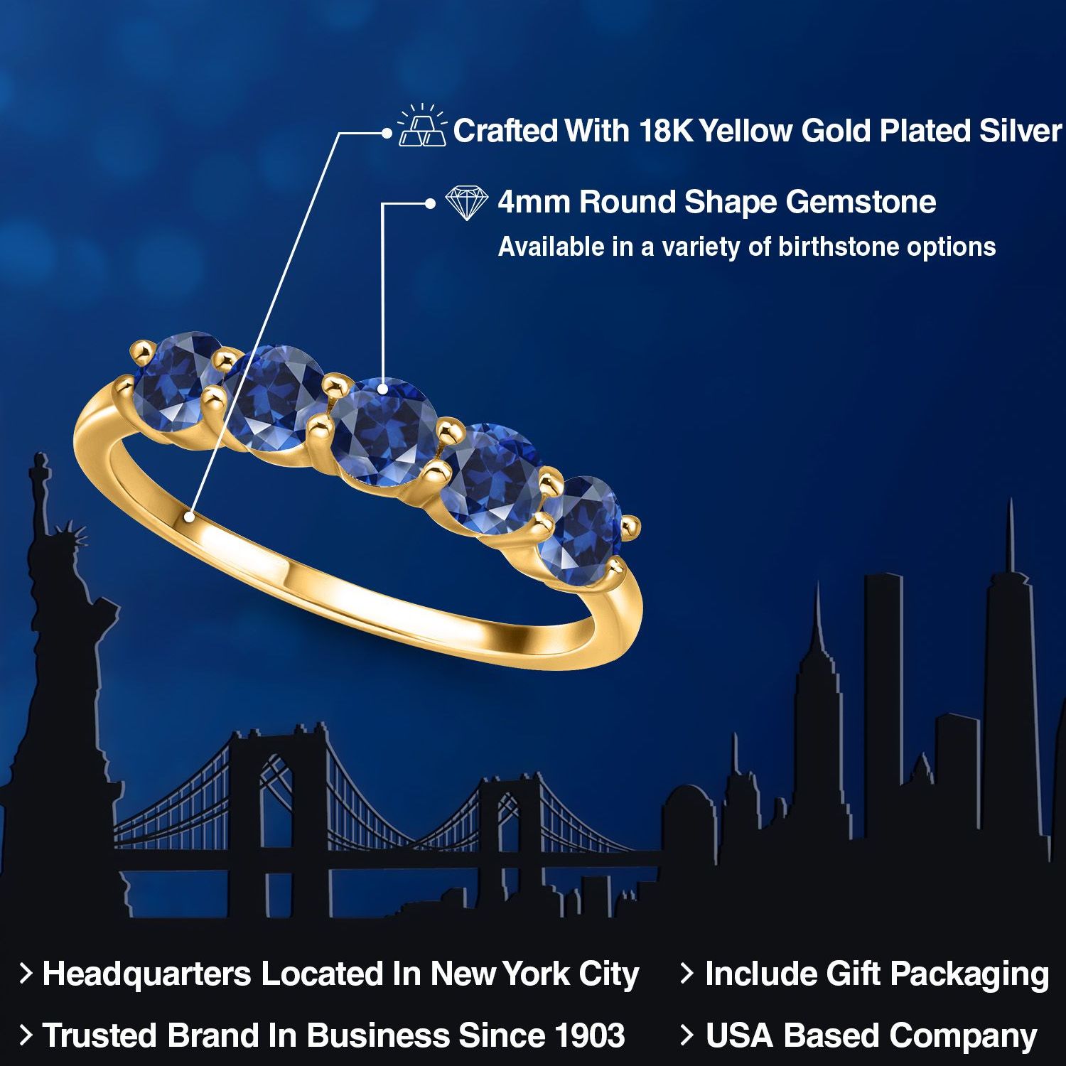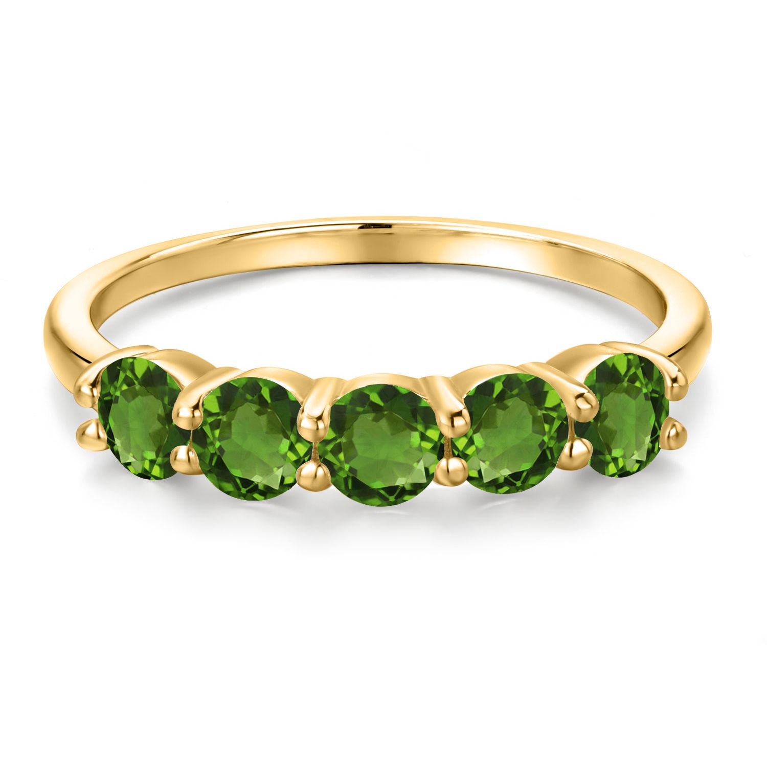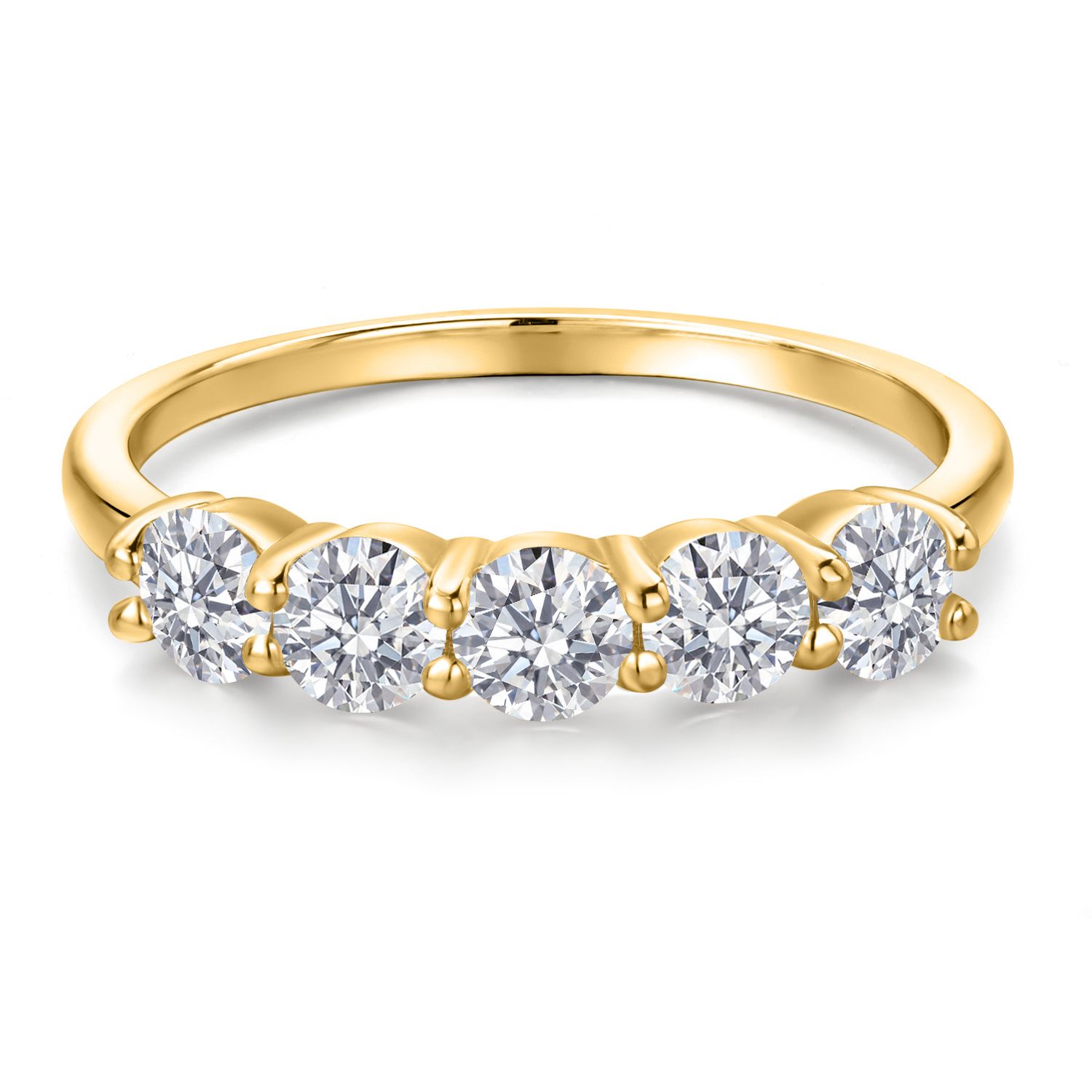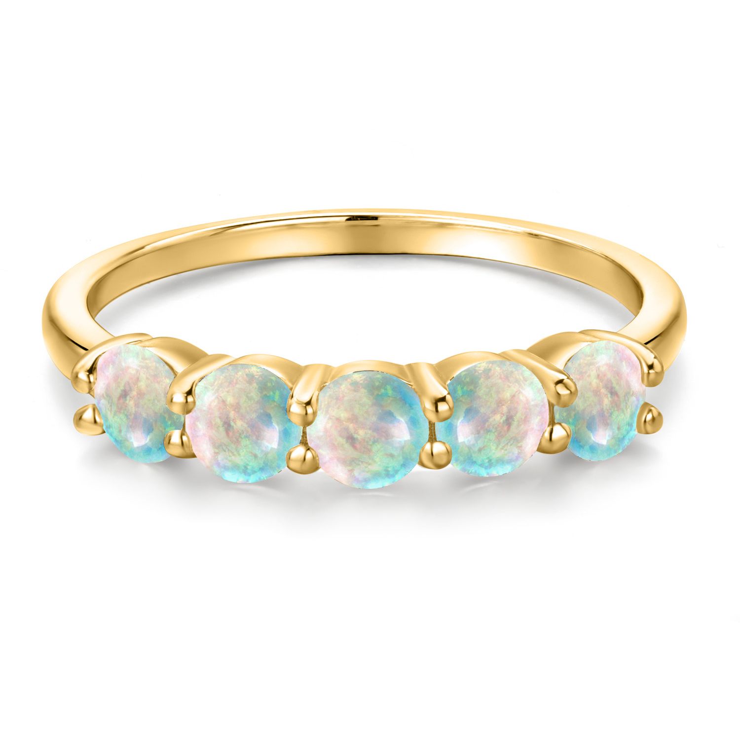 18K Yellow Gold Plated Silver 4MM Round Gemstone Birthstone 5-Stone Wedding Band Ring | Five Stone Engagement Anniversary Promise Ring For Women | Available in Size 5, 6, 7, 8, 9