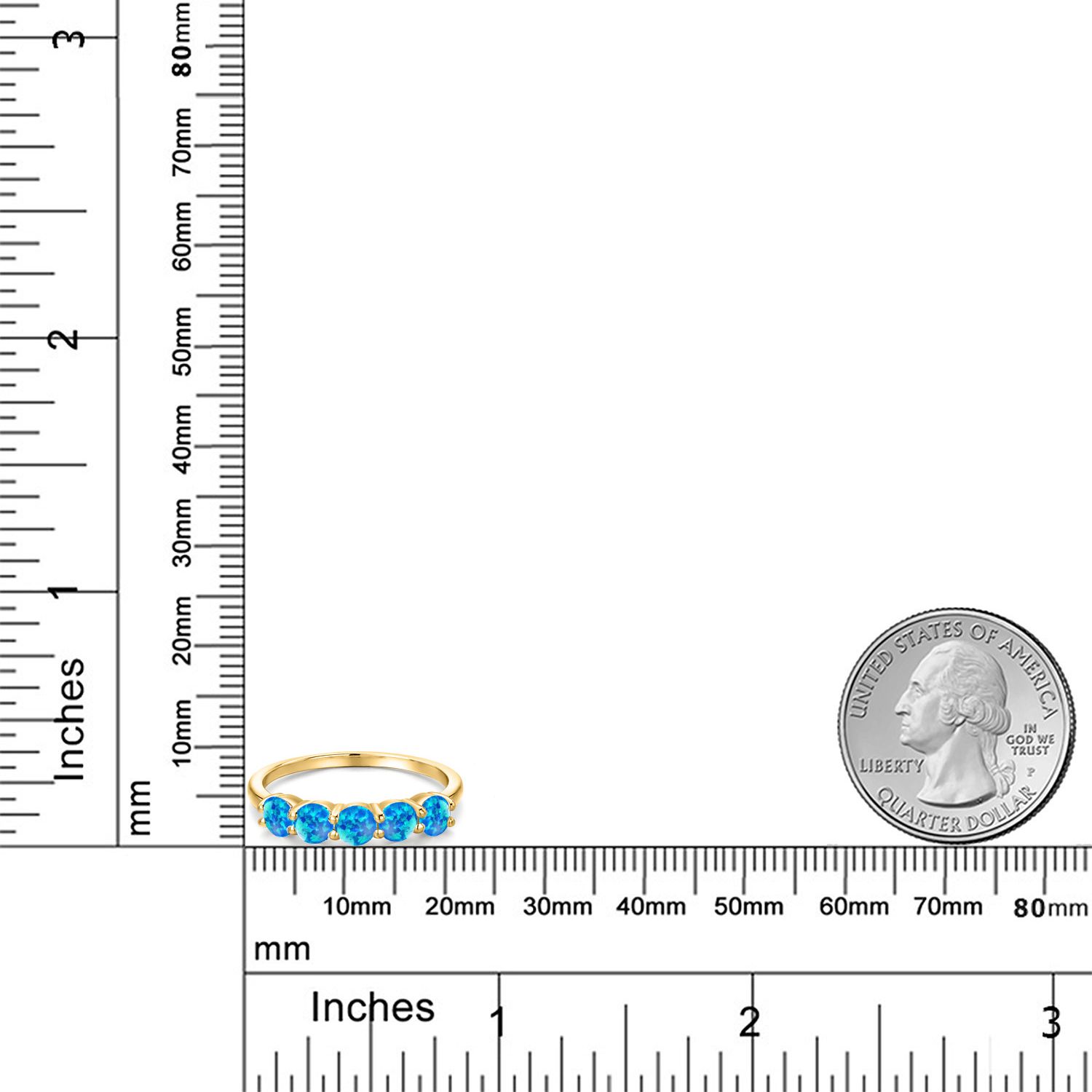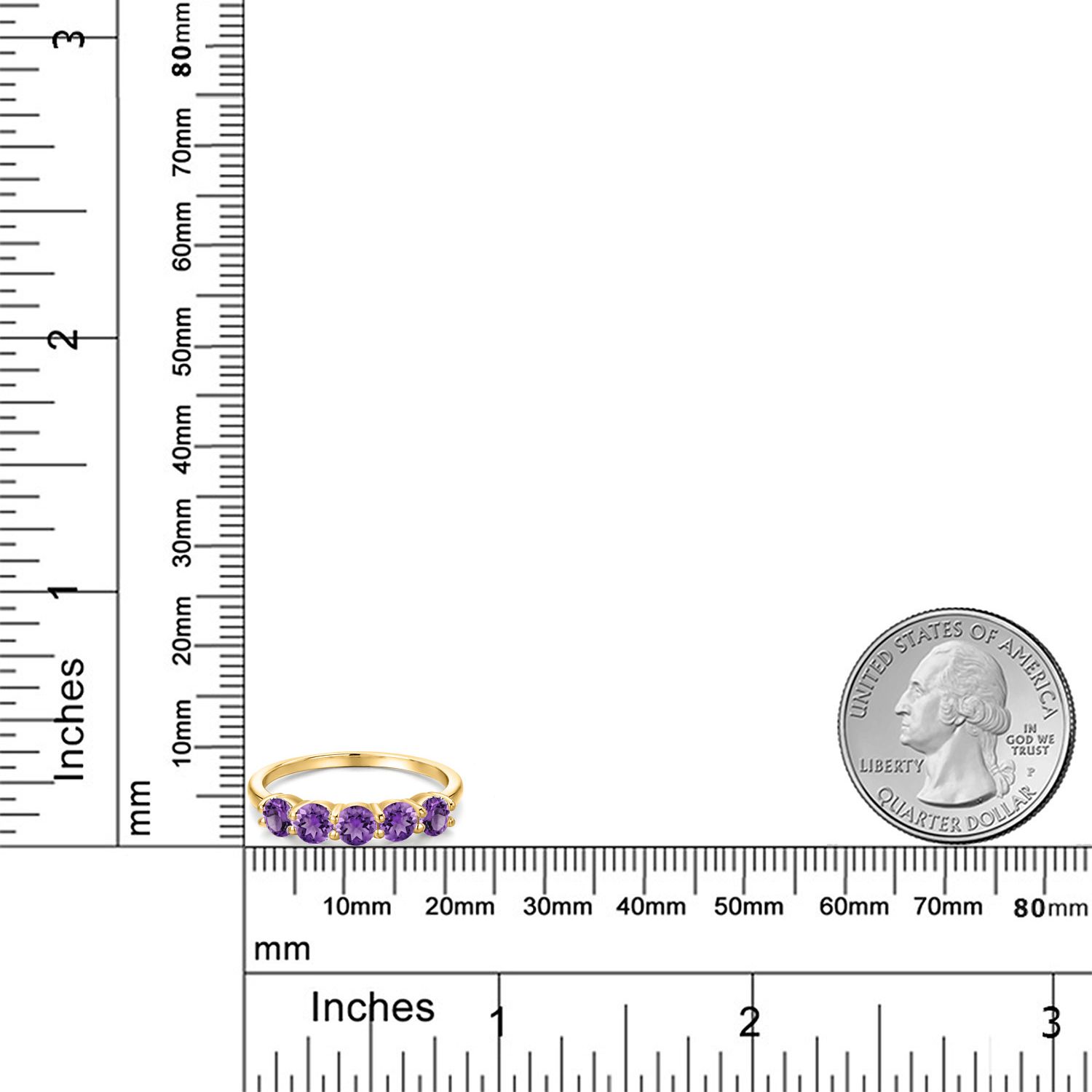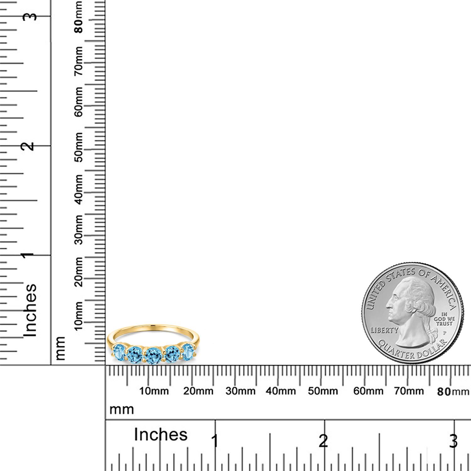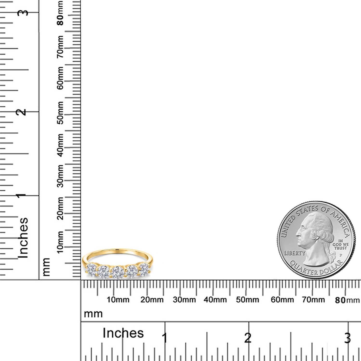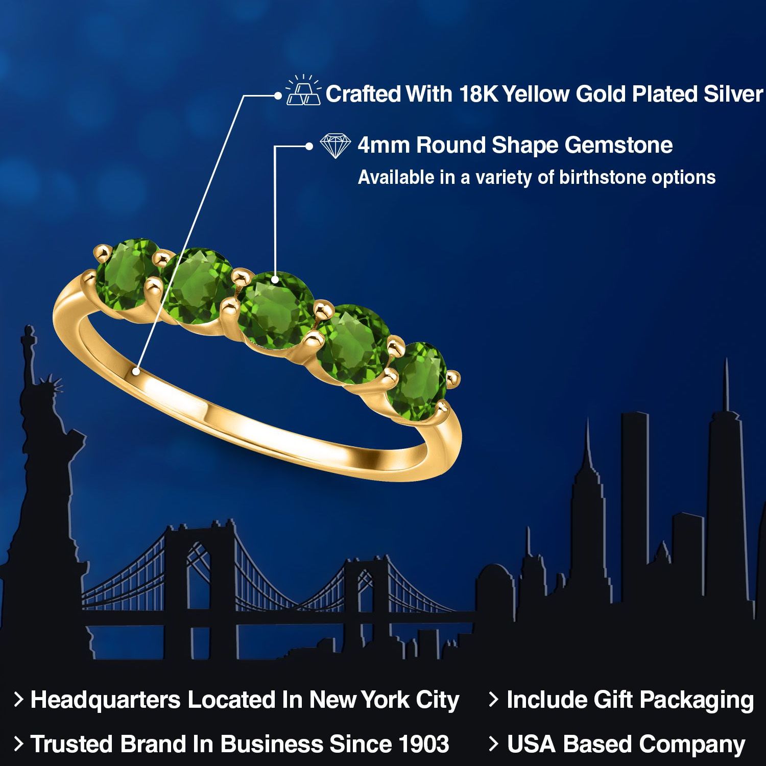 18K Yellow Gold Plated Silver 4MM Round Gemstone Birthstone 5-Stone Wedding Band Ring | Five Stone Engagement Anniversary Promise Ring For Women | Available in Size 5, 6, 7, 8, 9