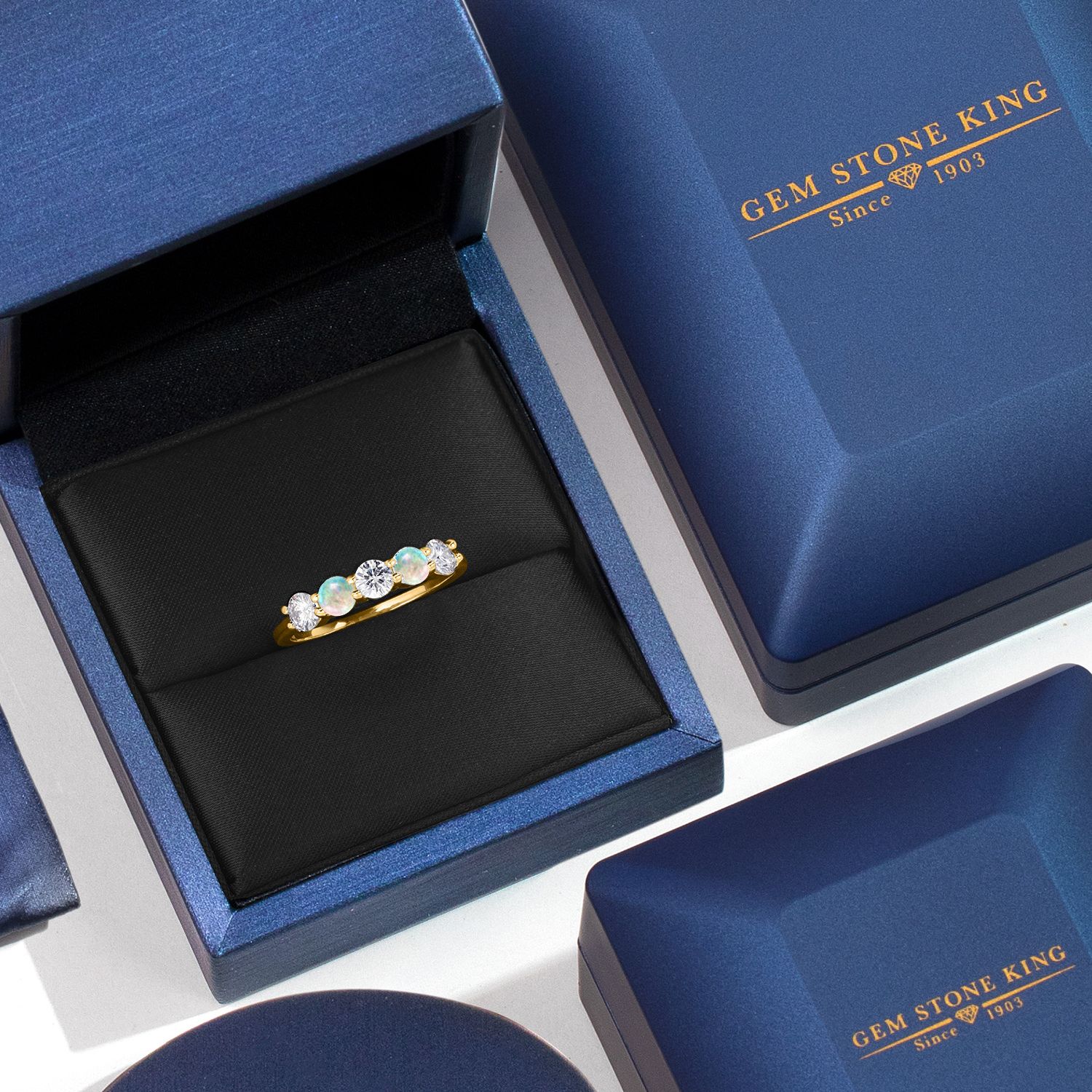 LUXURIOUS 18K YELLOW GOLD PLATING: Crafted from high-quality silver and plated with 18K yellow gold, this ring offers a rich, warm finish that enhances the gemstones' brilliance while ensuring durability and resistance to tarnishing.