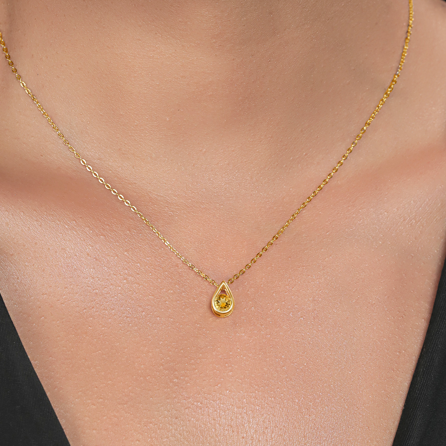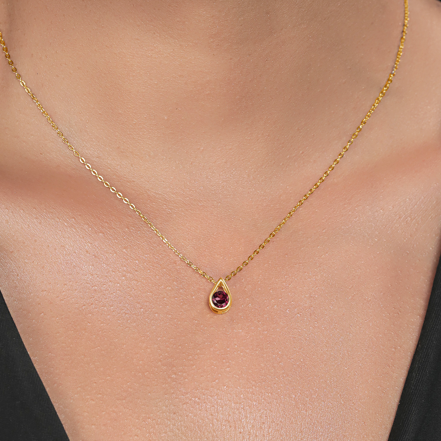 LUXURIOUS DESIGN: This 18K Yellow Gold Plated Silver Teardrop Pendant Necklace features a 5MM round gemstone birthstone, adding a touch of luxury and sophistication that elevates any outfit.