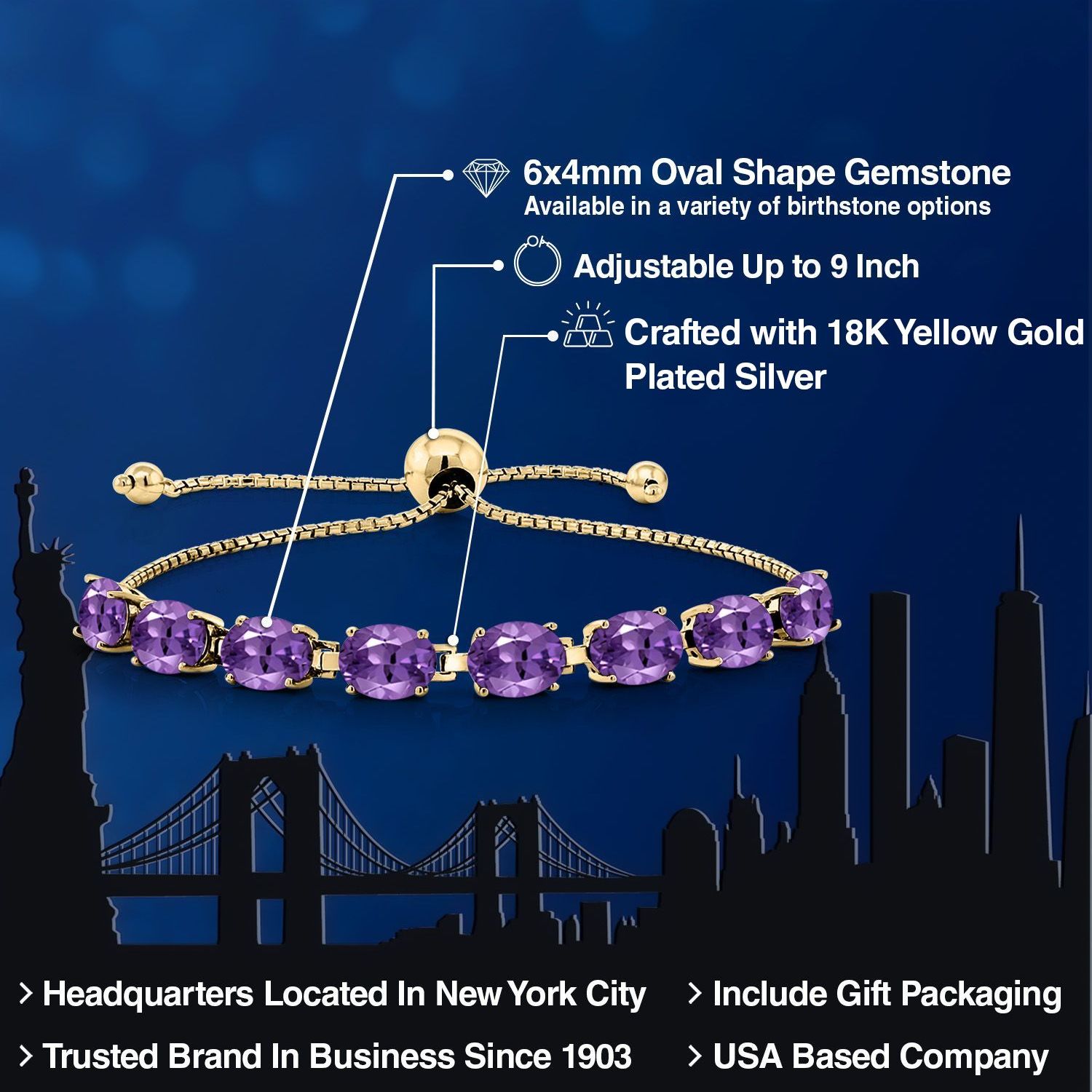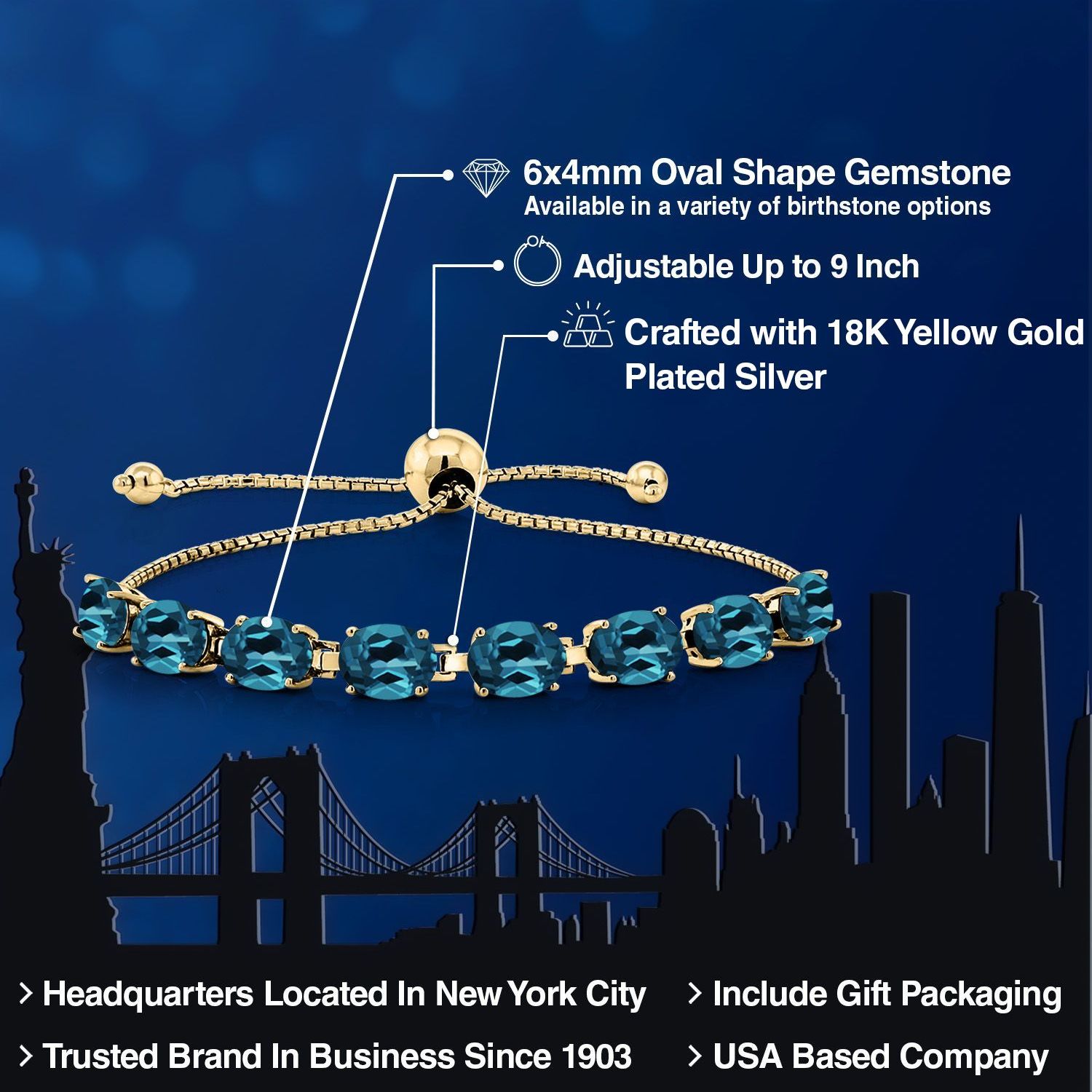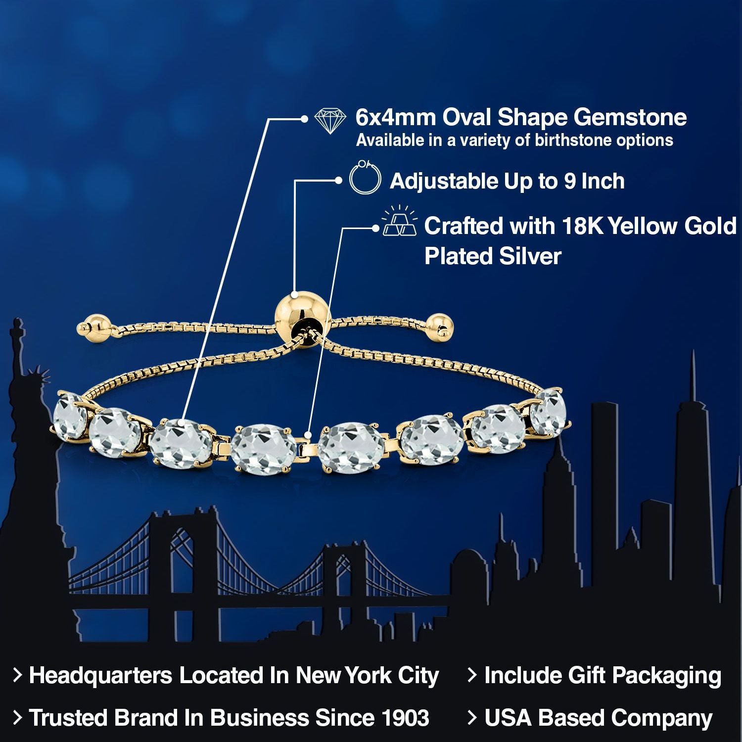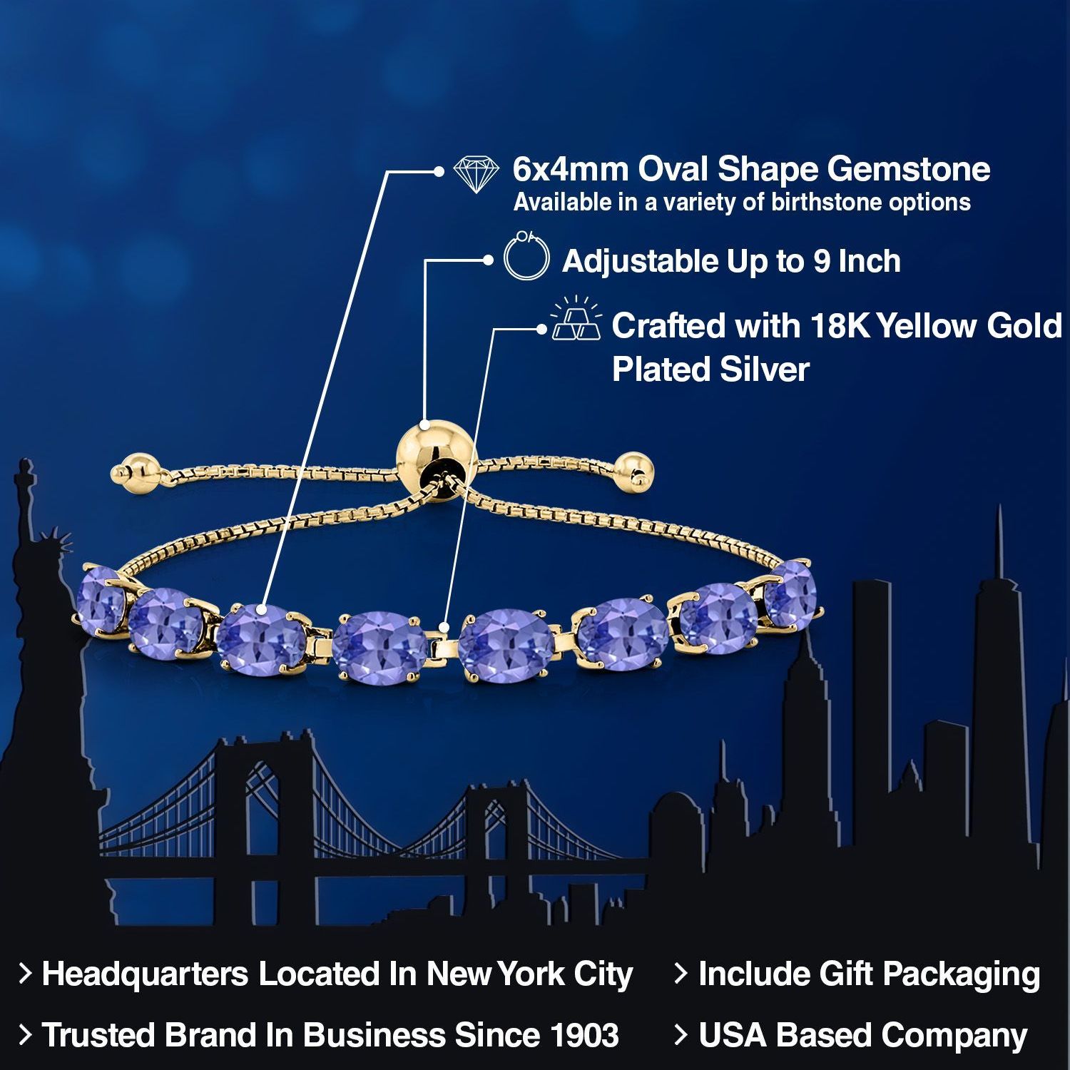LUXURIOUS 18K YELLOW GOLD PLATING: Crafted from high-quality silver and plated with 18K yellow gold, this bracelet provides a rich, warm finish that enhances the gemstones’ beauty while ensuring durability and resistance to tarnishing.
