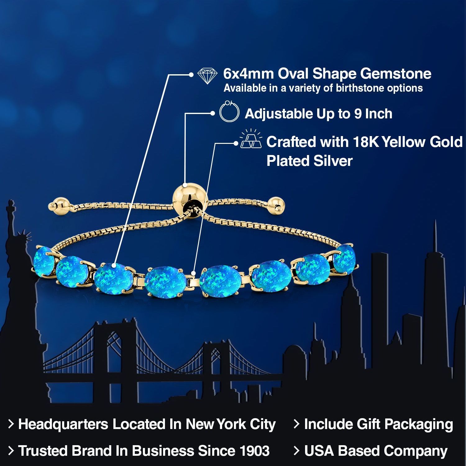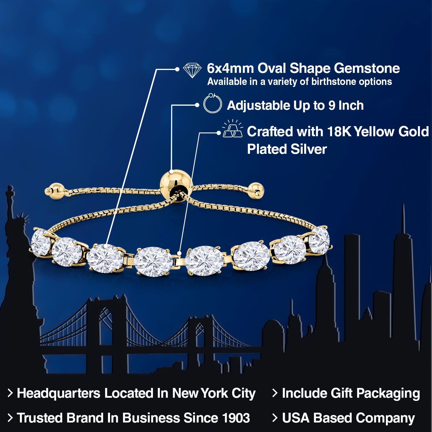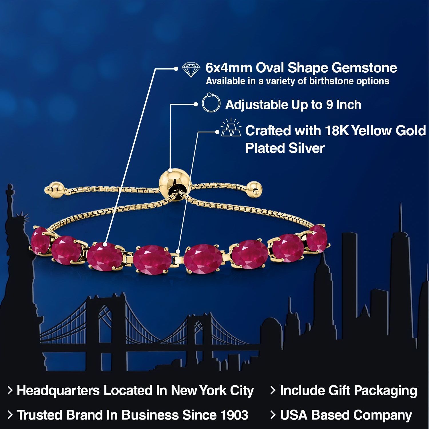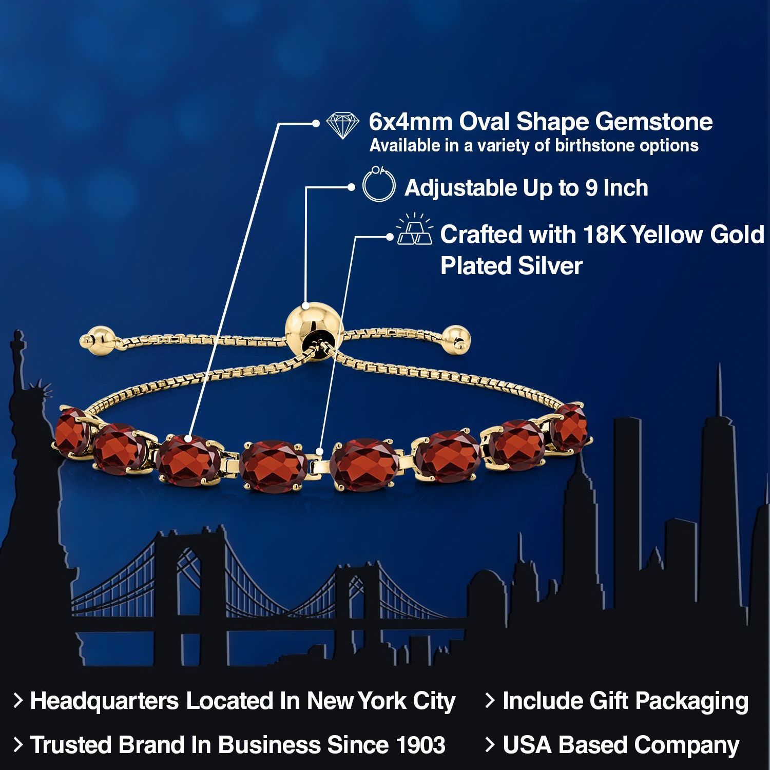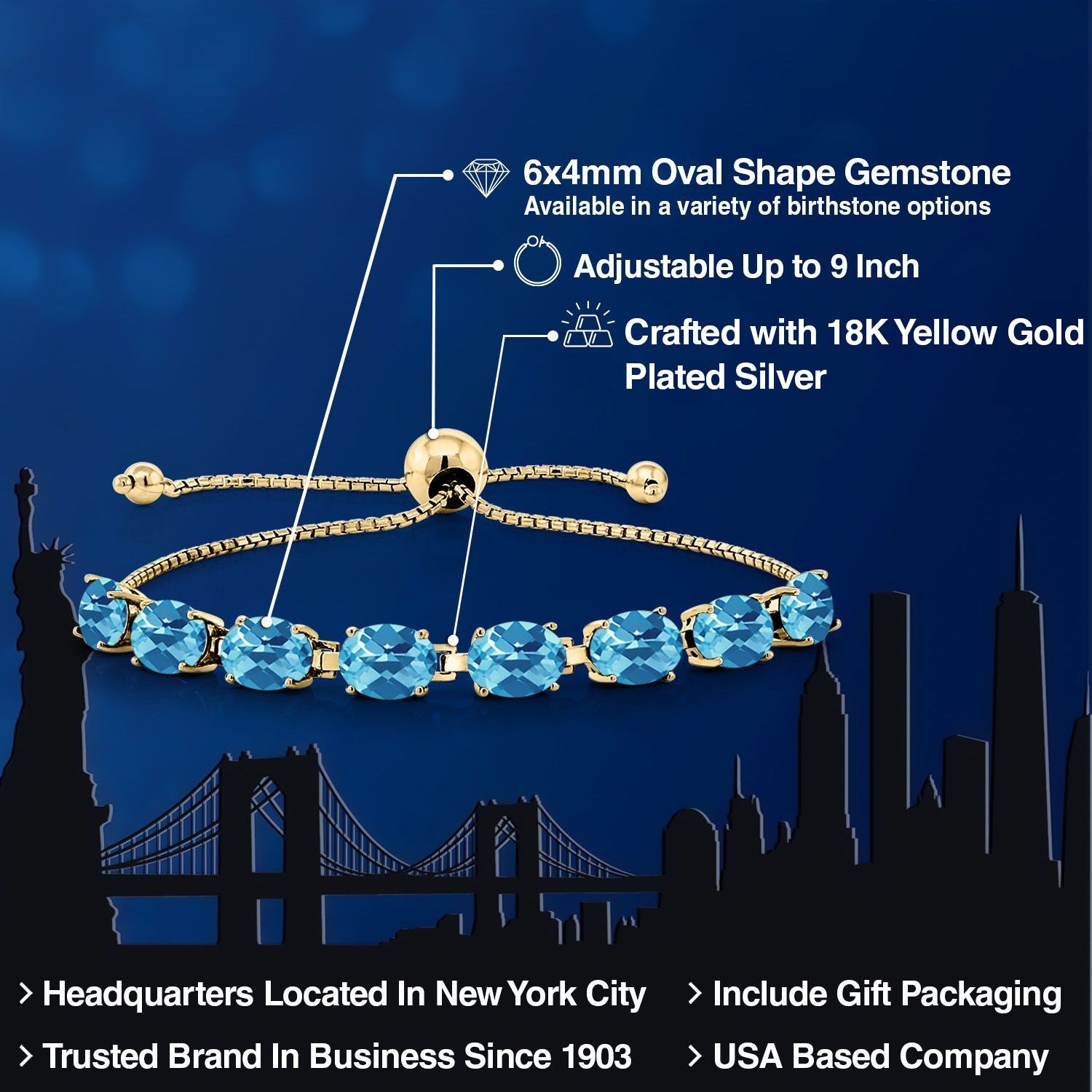 LUXURIOUS 18K YELLOW GOLD PLATING: Crafted from high-quality silver and plated with 18K yellow gold, this bracelet provides a rich, warm finish that enhances the gemstones’ beauty while ensuring durability and resistance to tarnishing.