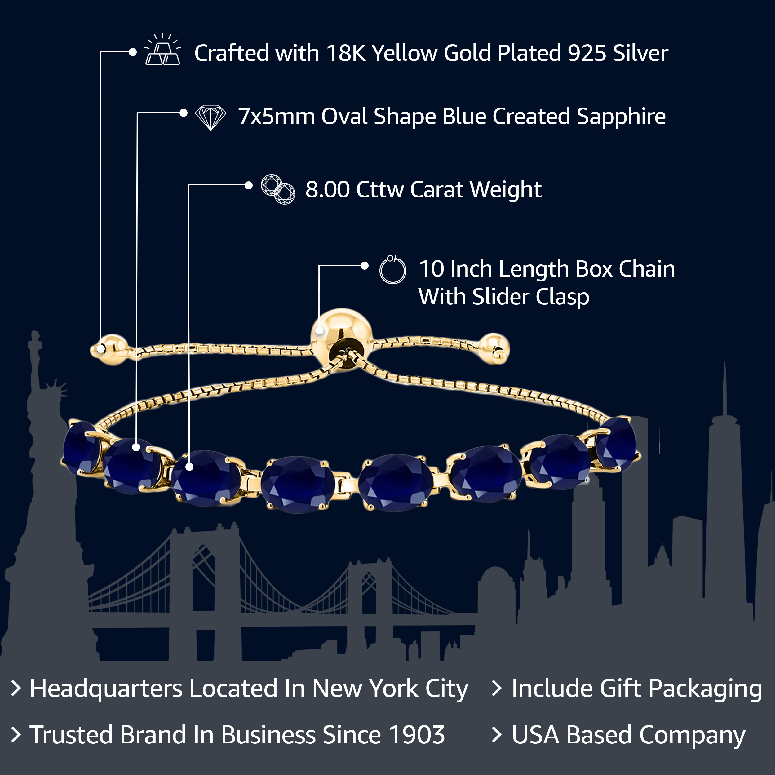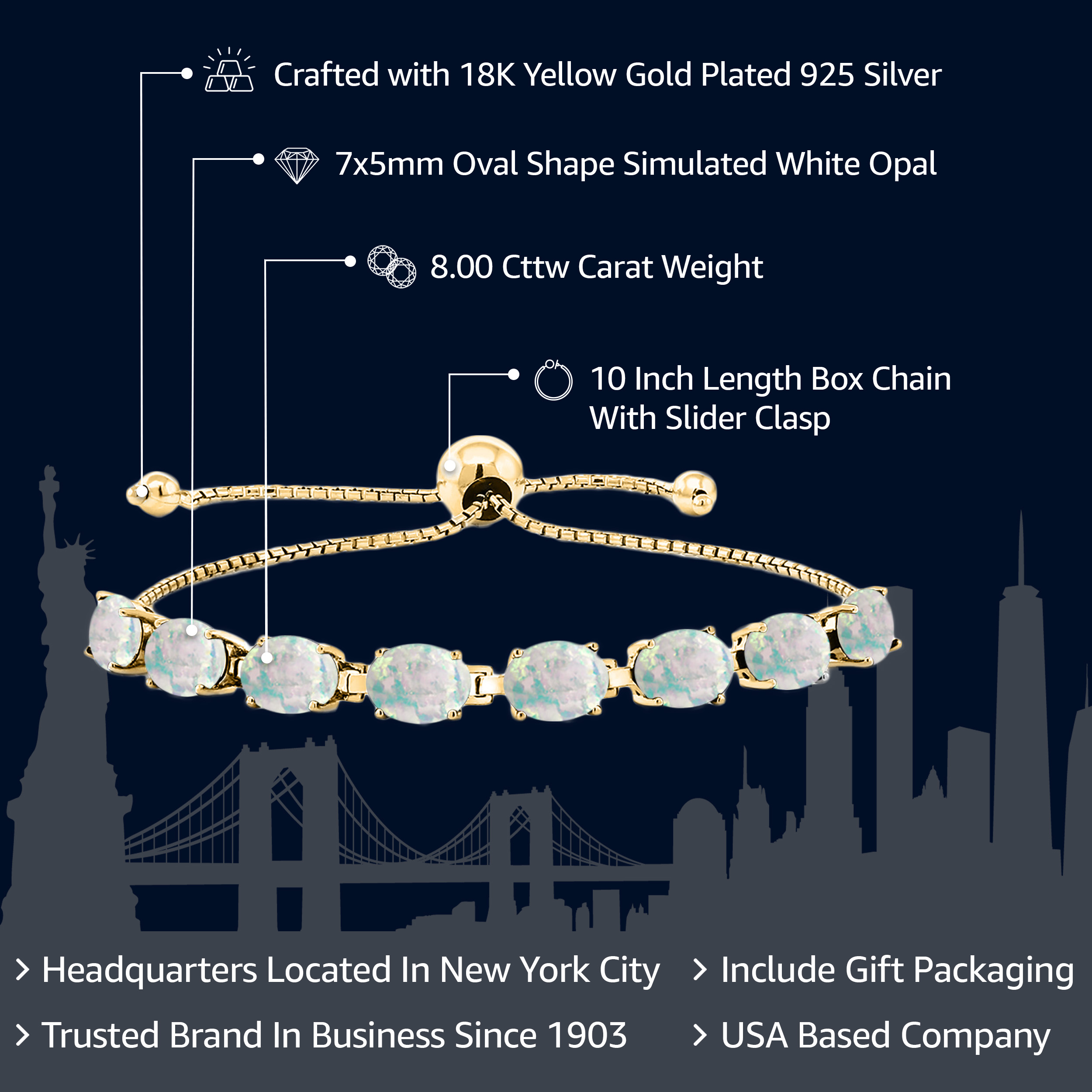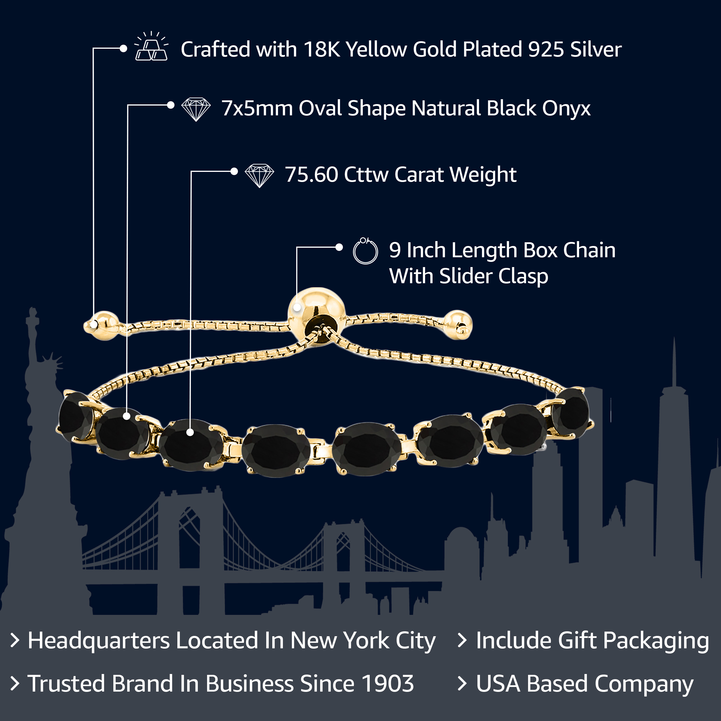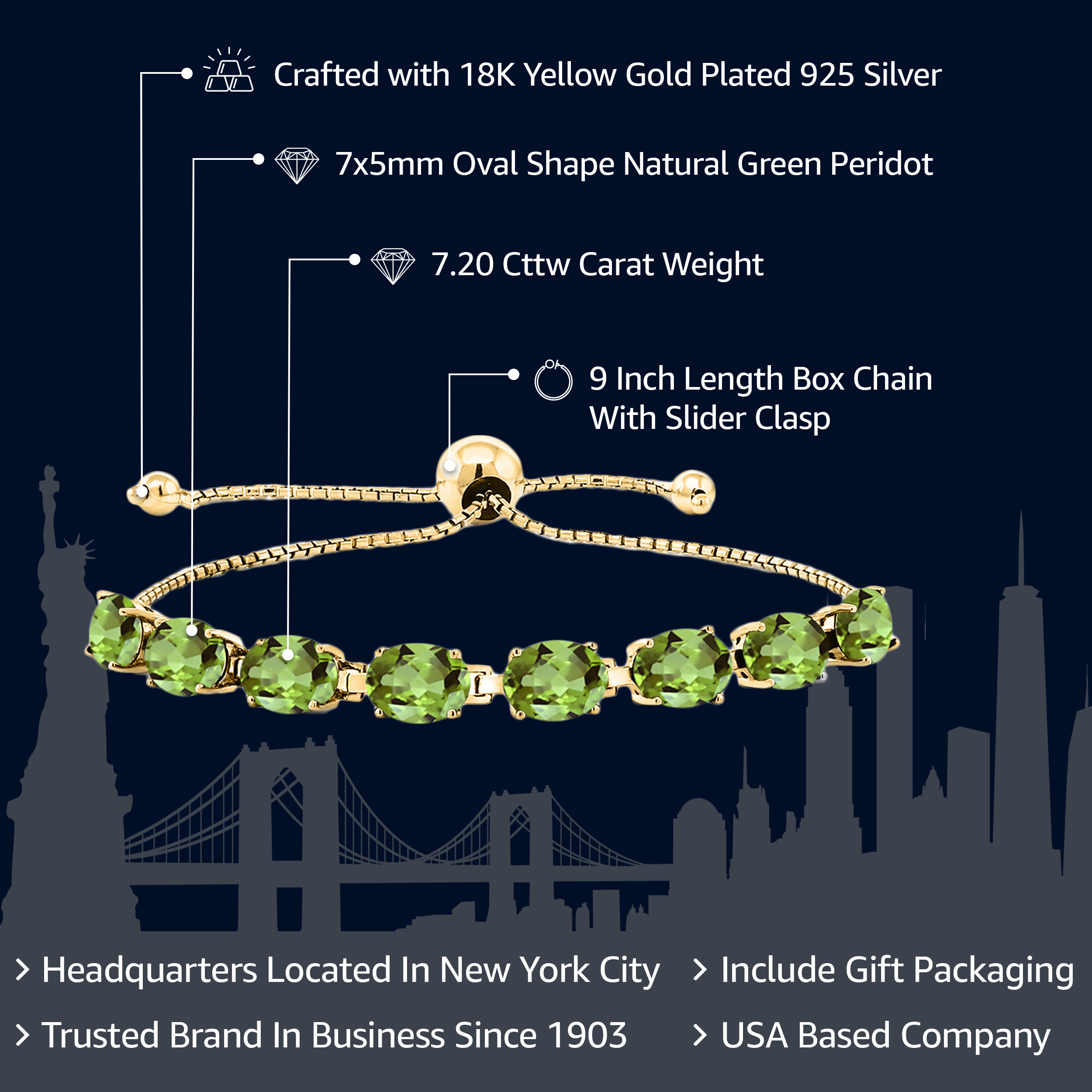 LUXURIOUS 18K YELLOW GOLD PLATING: Crafted from high-quality silver and plated with 18K yellow gold, this bracelet provides a rich, warm finish that enhances the gemstones’ beauty while ensuring durability and resistance to tarnishing.