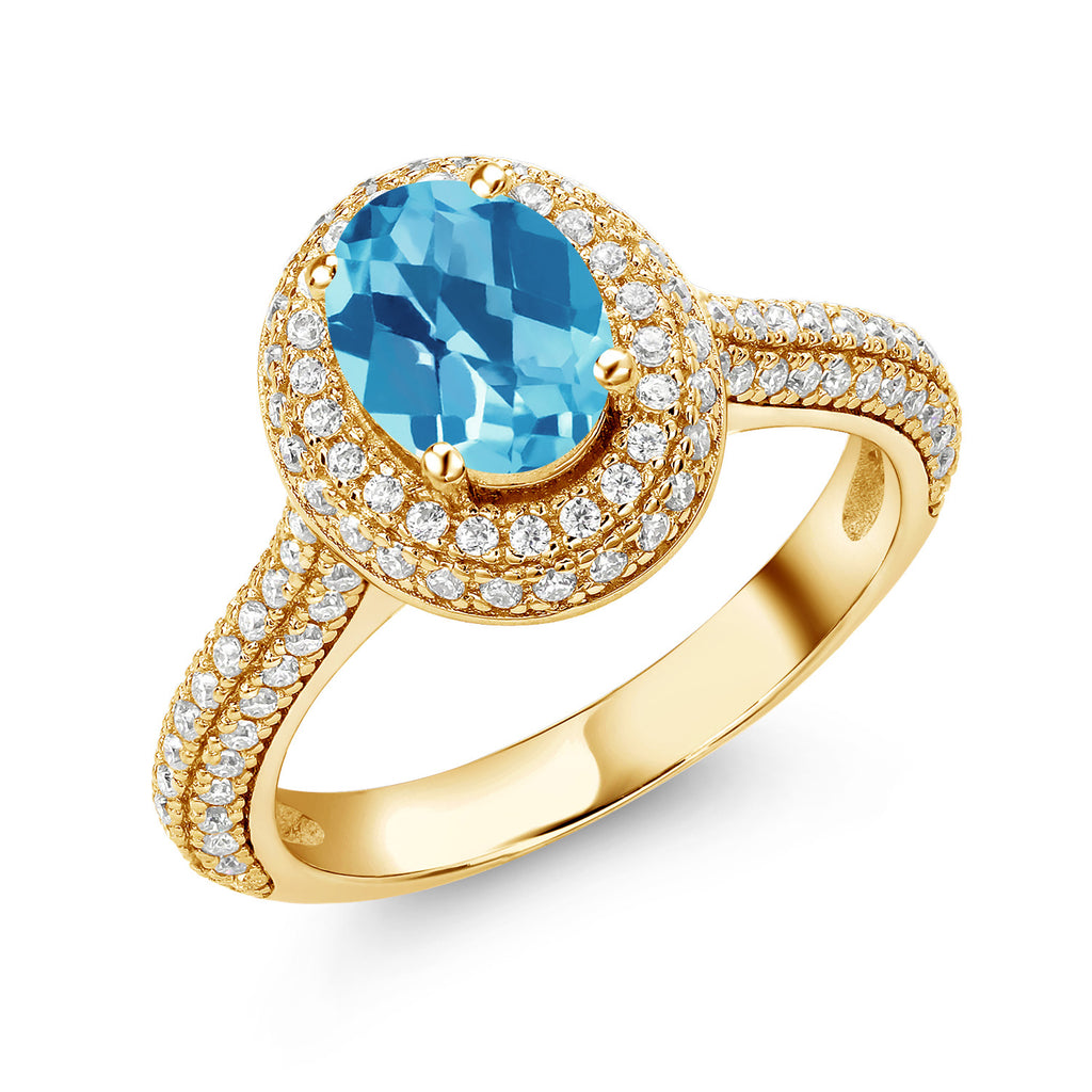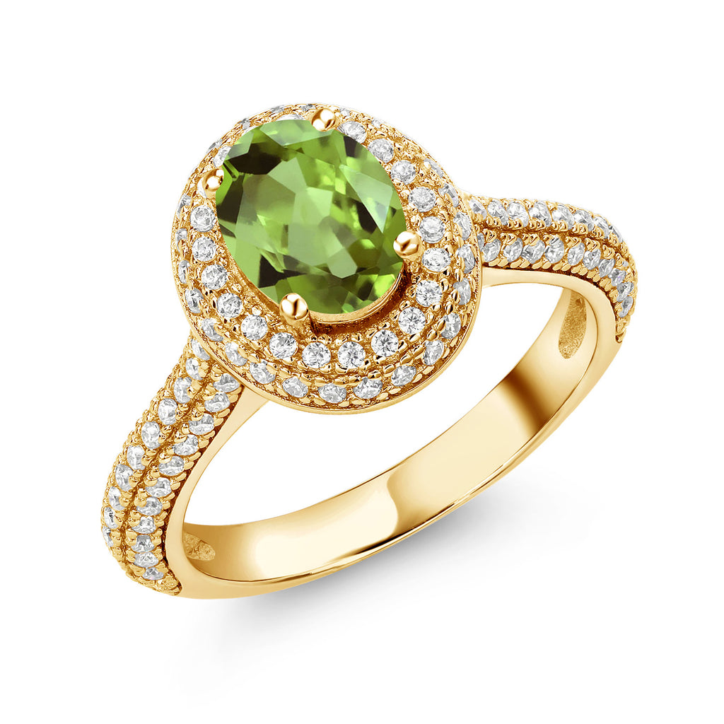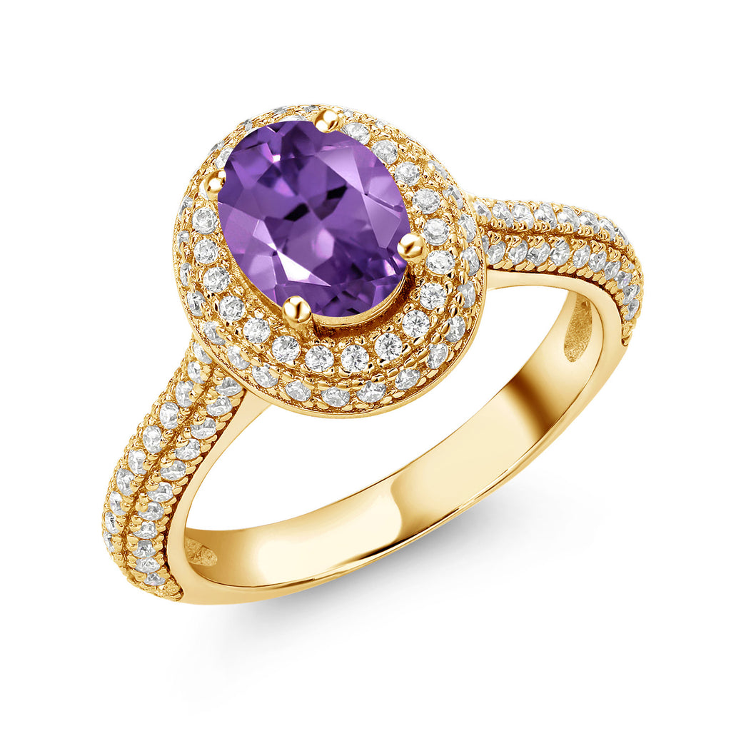 18K Yellow Gold Plated Silver 8X6MM Oval Gemstone Birthstone and White Moissanite Halo Engagement Ring | Wedding Anniversary Promise Ring For Women | Size 5,6,7,8,9