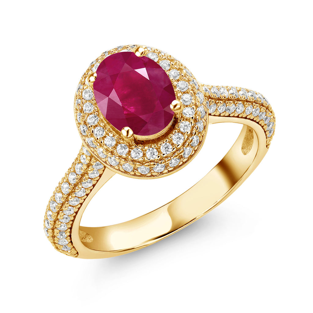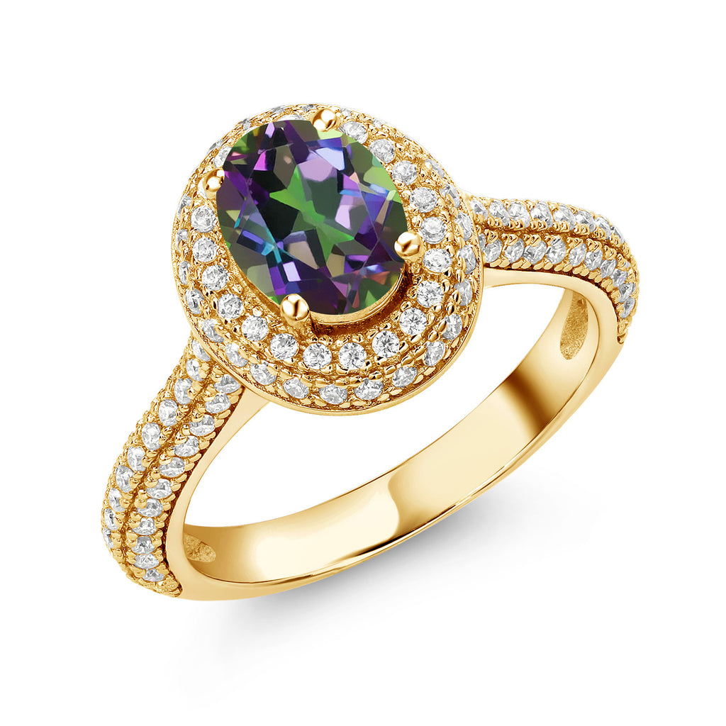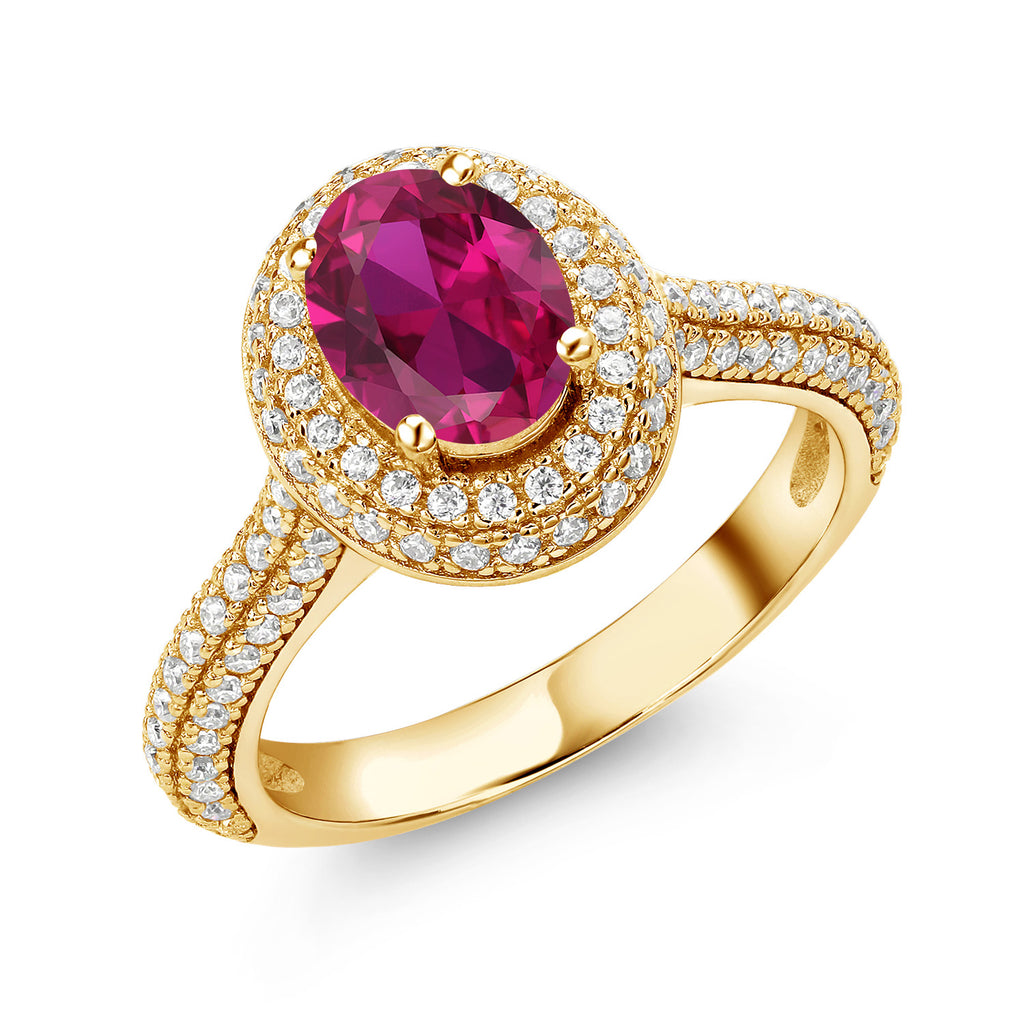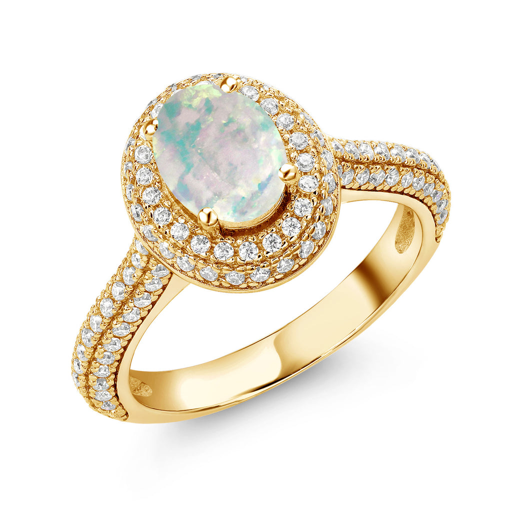 18K Yellow Gold Plated Silver 8X6MM Oval Gemstone Birthstone and White Moissanite Halo Engagement Ring | Wedding Anniversary Promise Ring For Women | Size 5,6,7,8,9