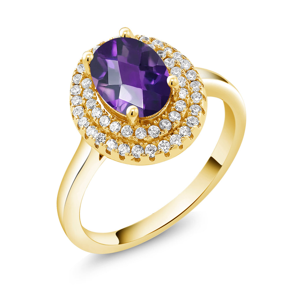 18K Yellow Gold Plated Silver 8X6MM Oval Gemstone Birthstone Double Halo Engagement Ring | Wedding Anniversary Promise Ring For Women | Size 5,6,7,8,9