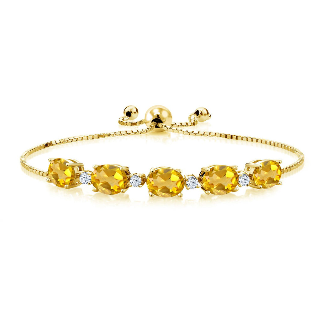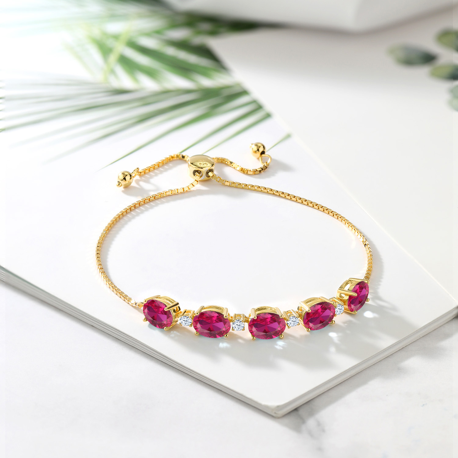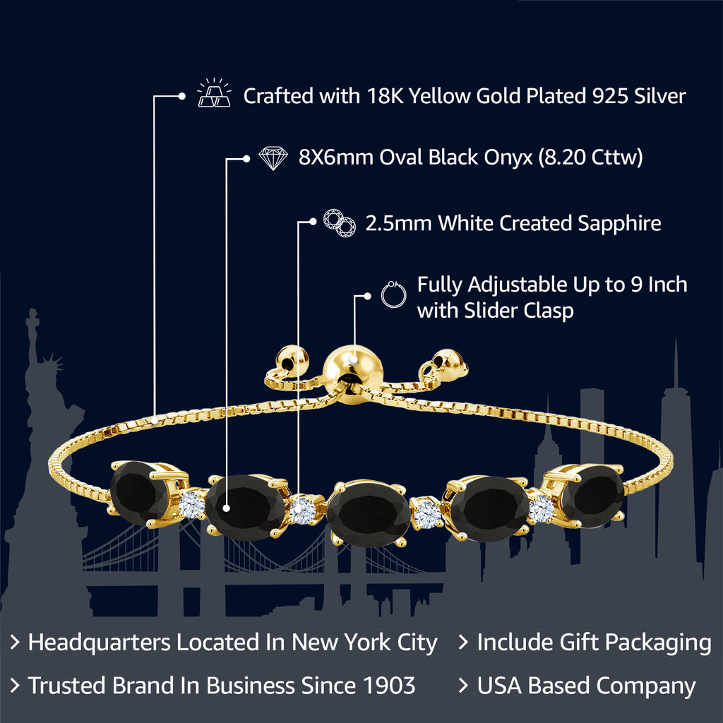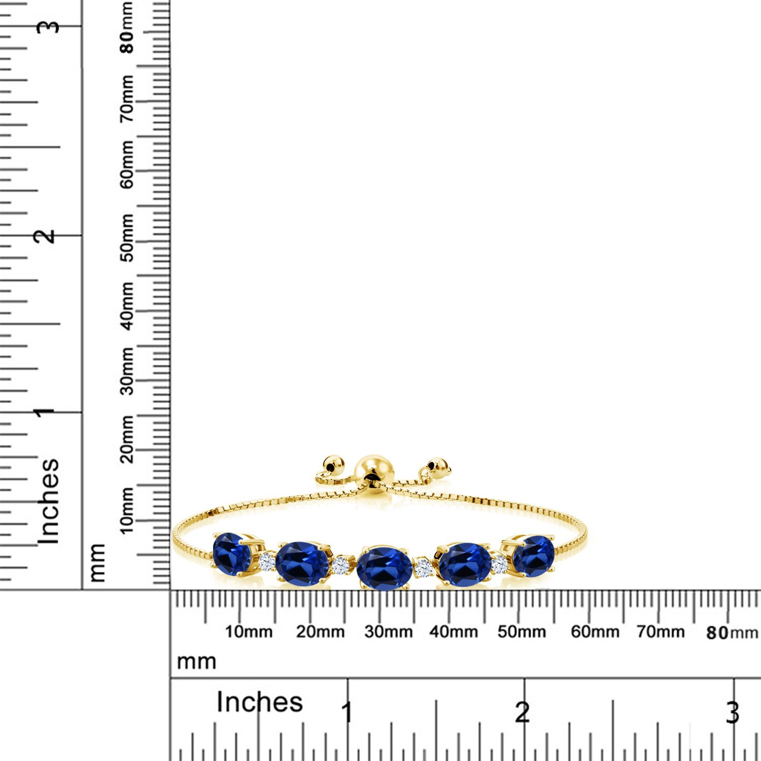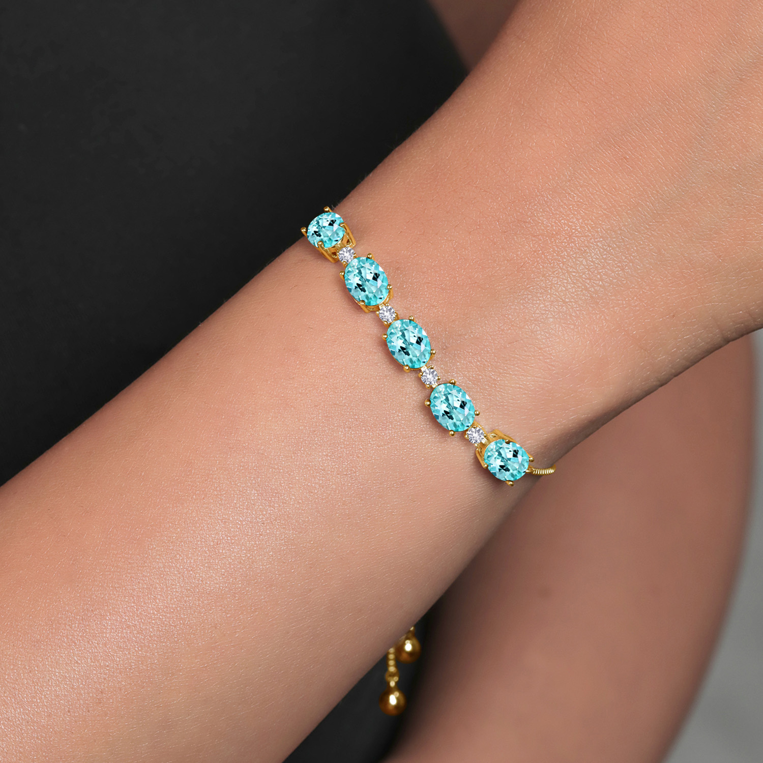 5-8 Cttw Gemstone Birthstone and White Created Sapphire Tennis Bracelet for Women | 18K Yellow Gold Plated Silver | Oval 8X6MM with Round 2.5MM Accents | Adjustable Bolo Chain