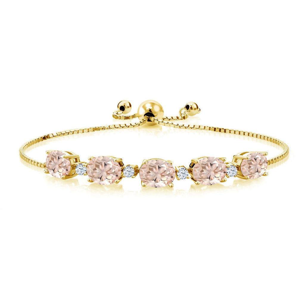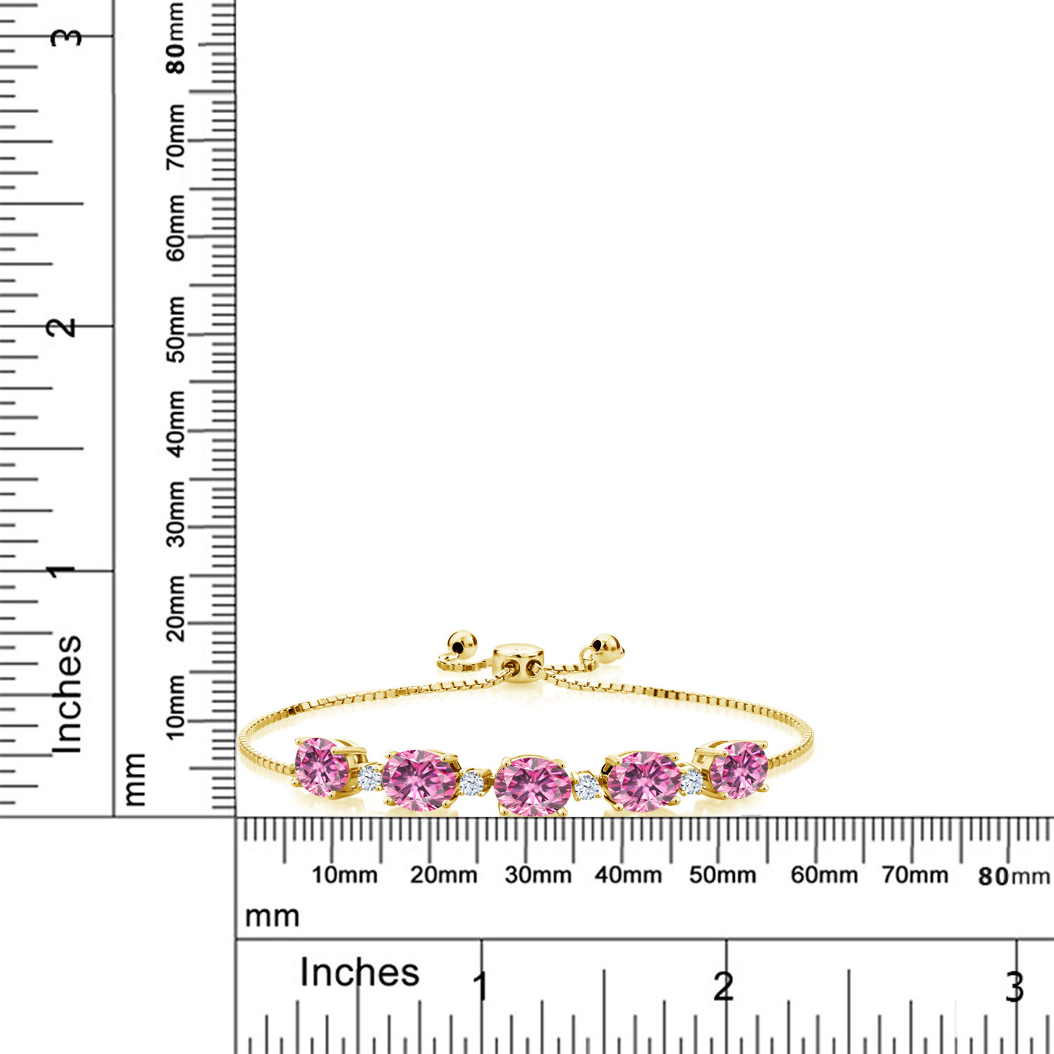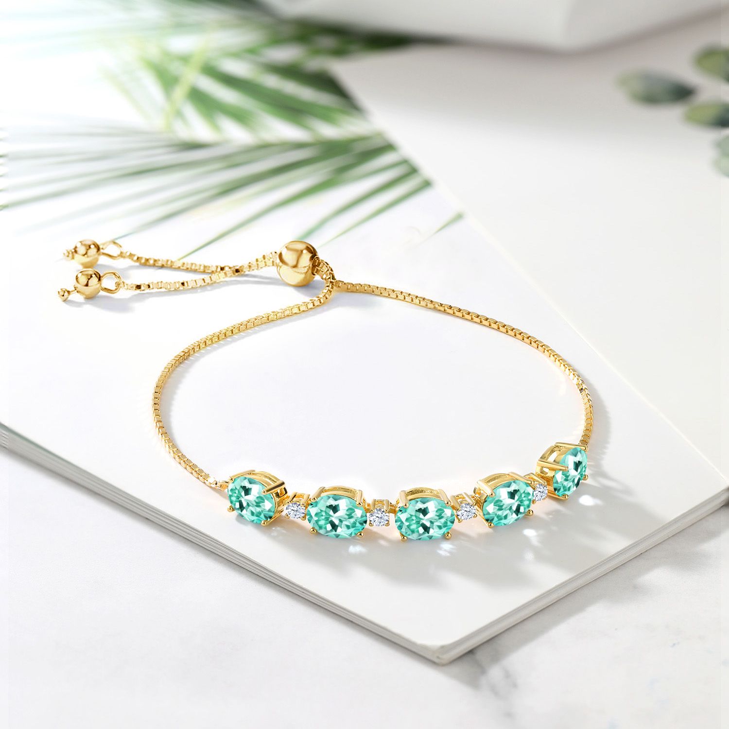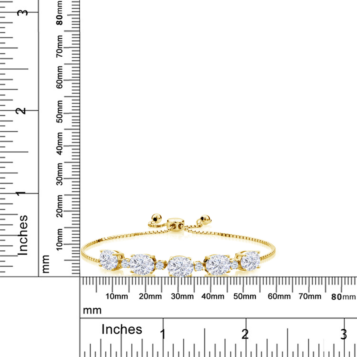 5-8 Cttw Gemstone Birthstone and White Created Sapphire Tennis Bracelet for Women | 18K Yellow Gold Plated Silver | Oval 8X6MM with Round 2.5MM Accents | Adjustable Bolo Chain