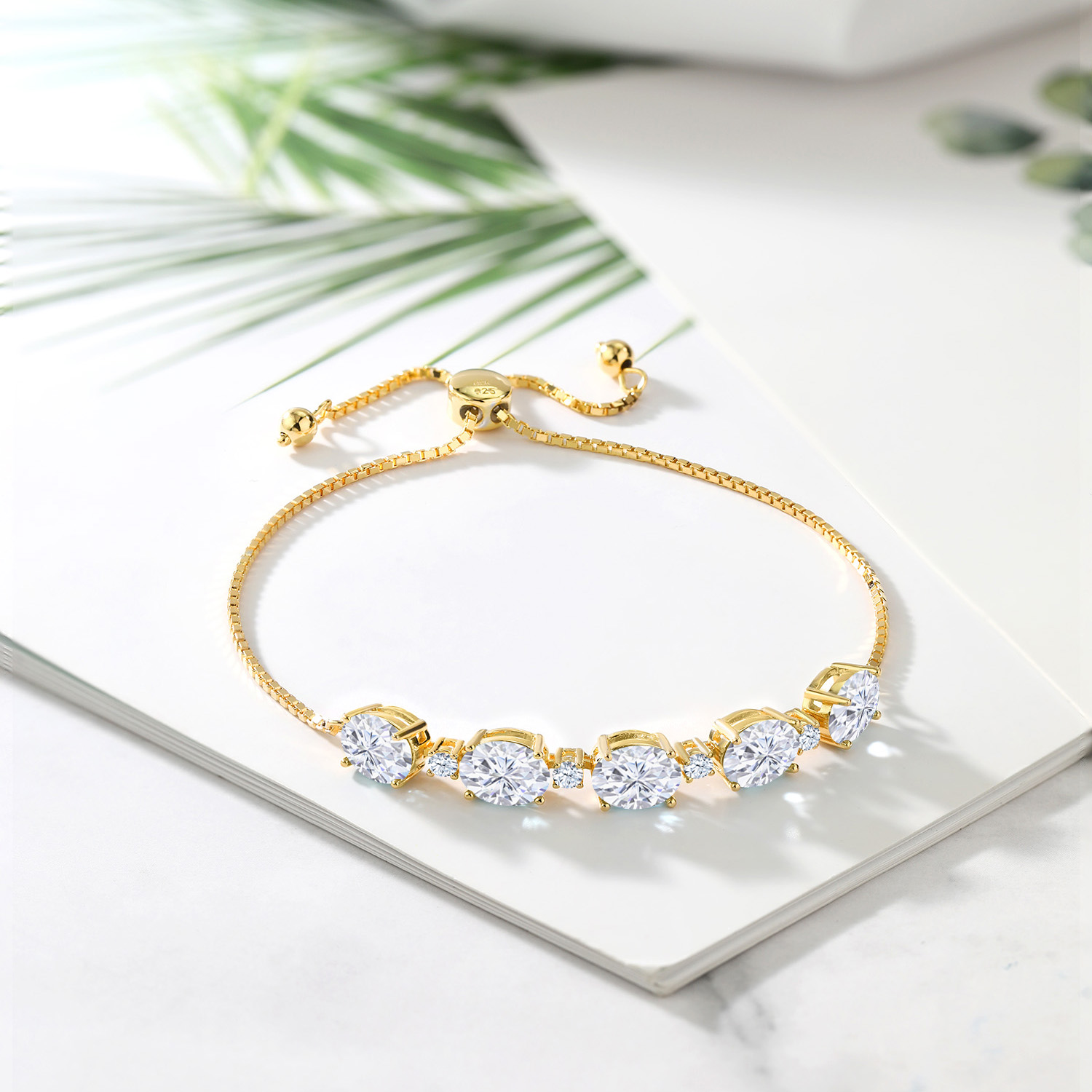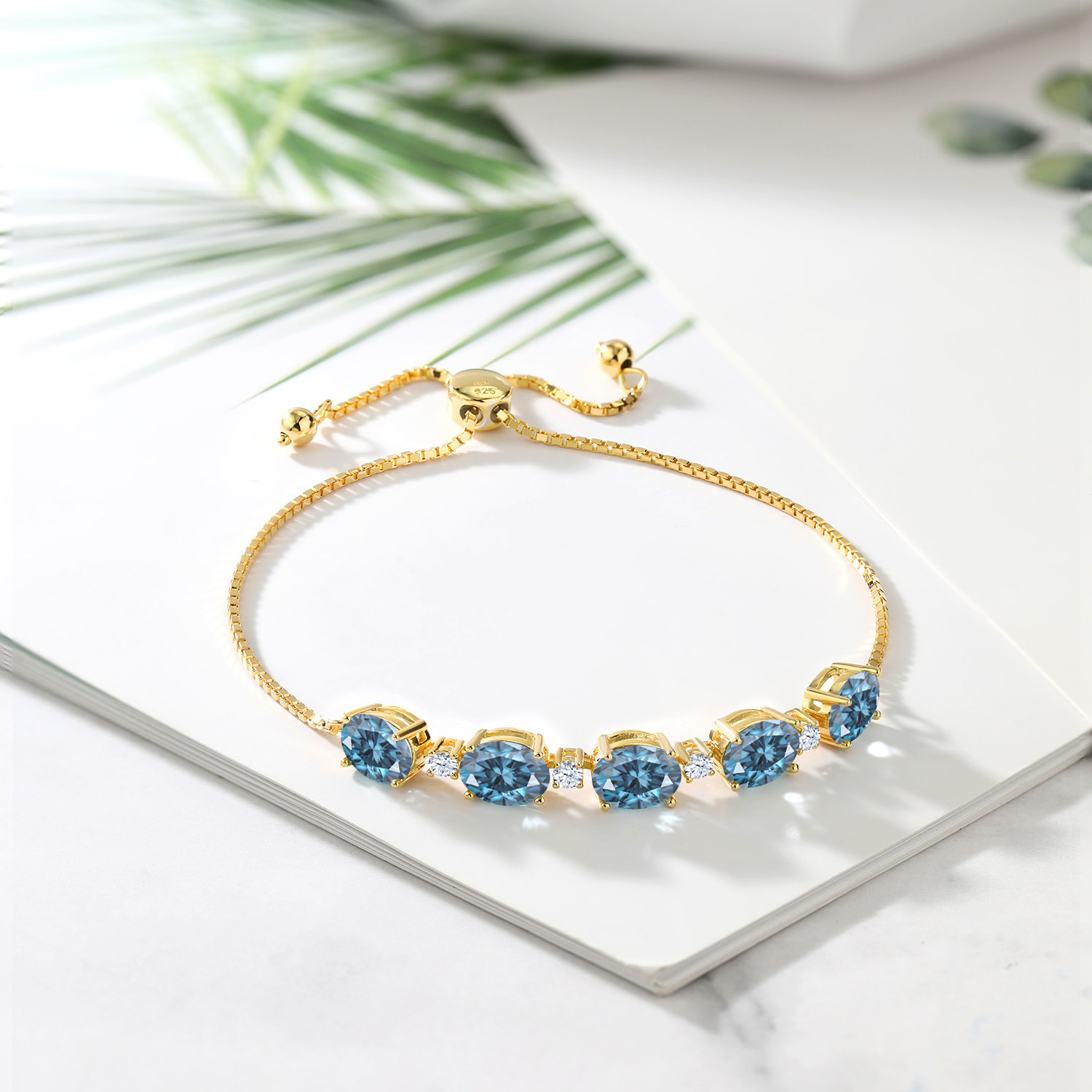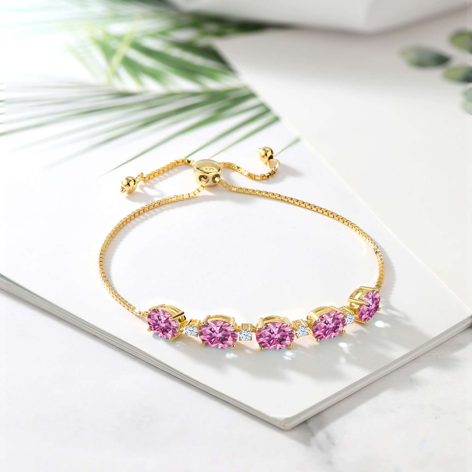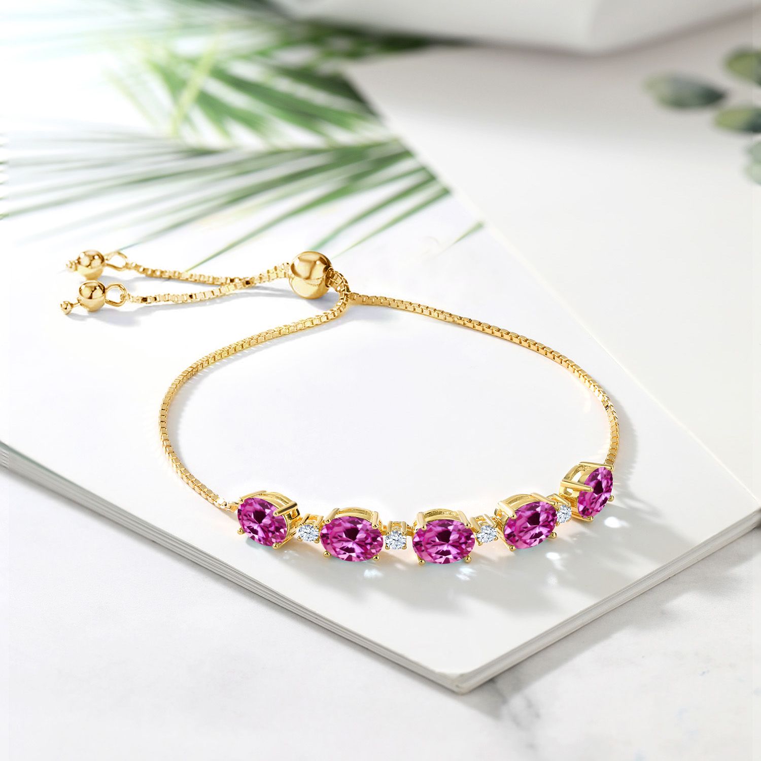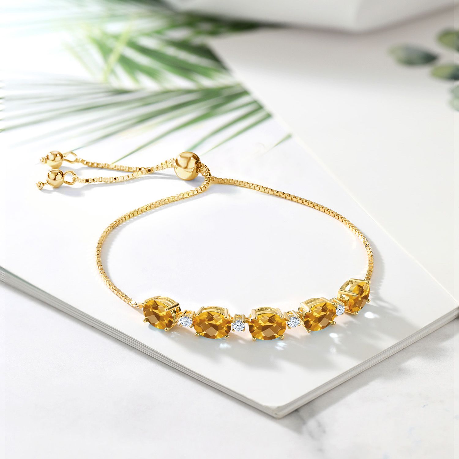 5-8 Cttw Gemstone Birthstone and White Created Sapphire Tennis Bracelet for Women | 18K Yellow Gold Plated Silver | Oval 8X6MM with Round 2.5MM Accents | Adjustable Bolo Chain
