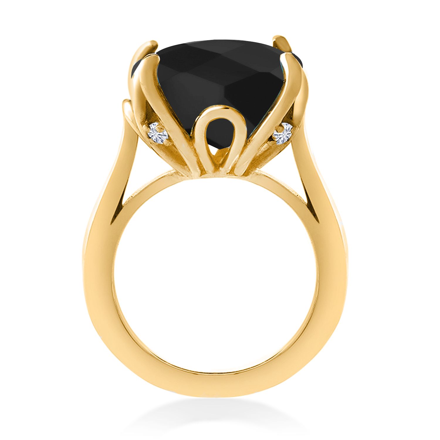 18K Yellow Gold Plated Silver Black Onyx and White Moissanite Engagement Ring For Women (8.25 Cttw, 14MM Cushion Checkerboard, Available in Size 5,6,7,8,9)