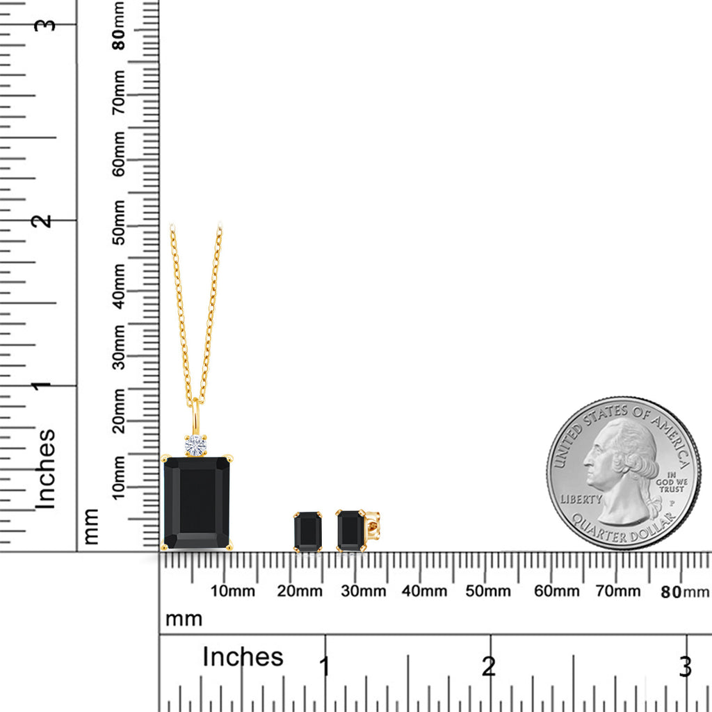 18K Yellow Gold Plated Silver Black Onyx and White Moissanite Pendant Necklace Earrings Set For Women (7.82 Cttw, Gemstone December Birthstone, Emerald Cut 14X10MM and 6X4MM, with 18 Inch Chain)