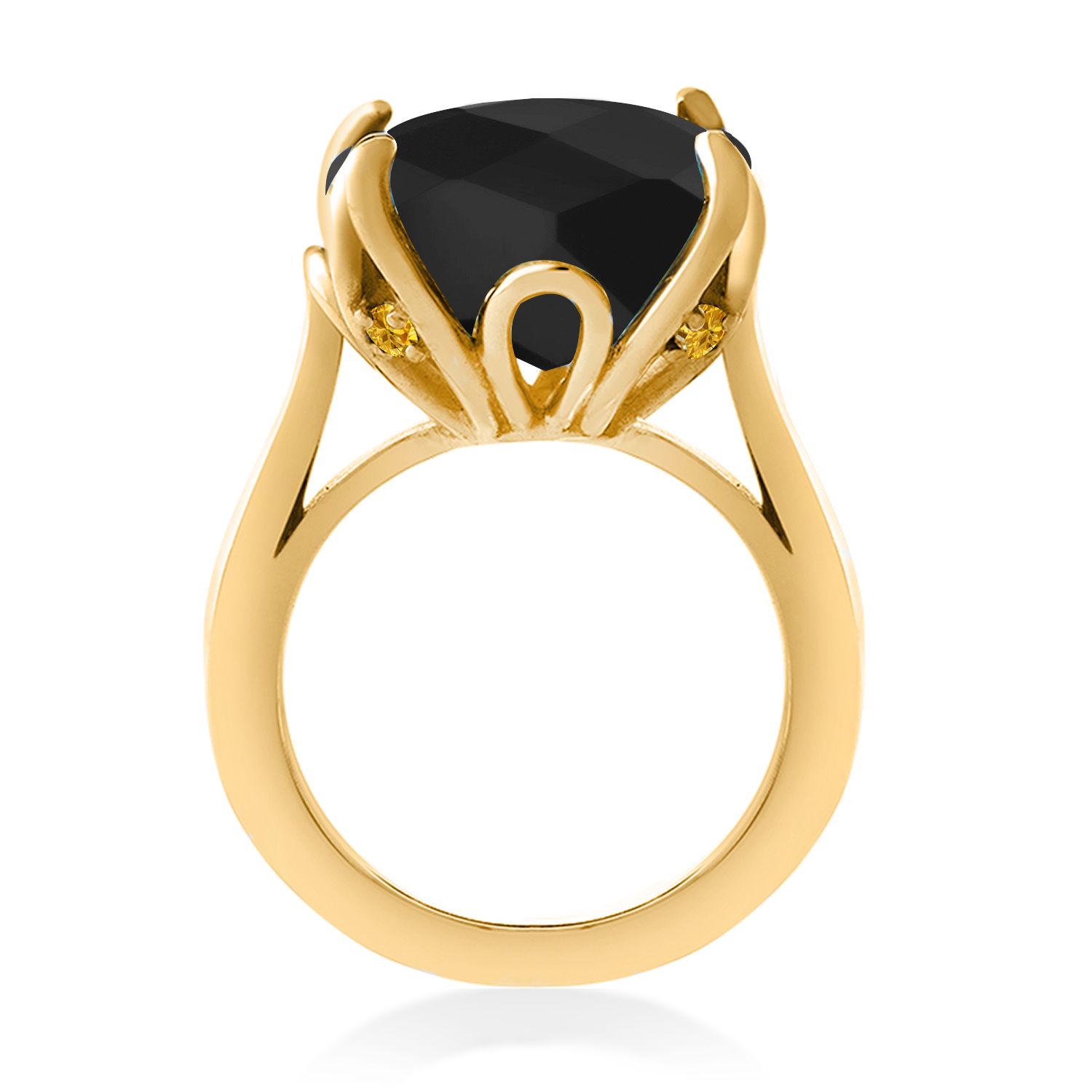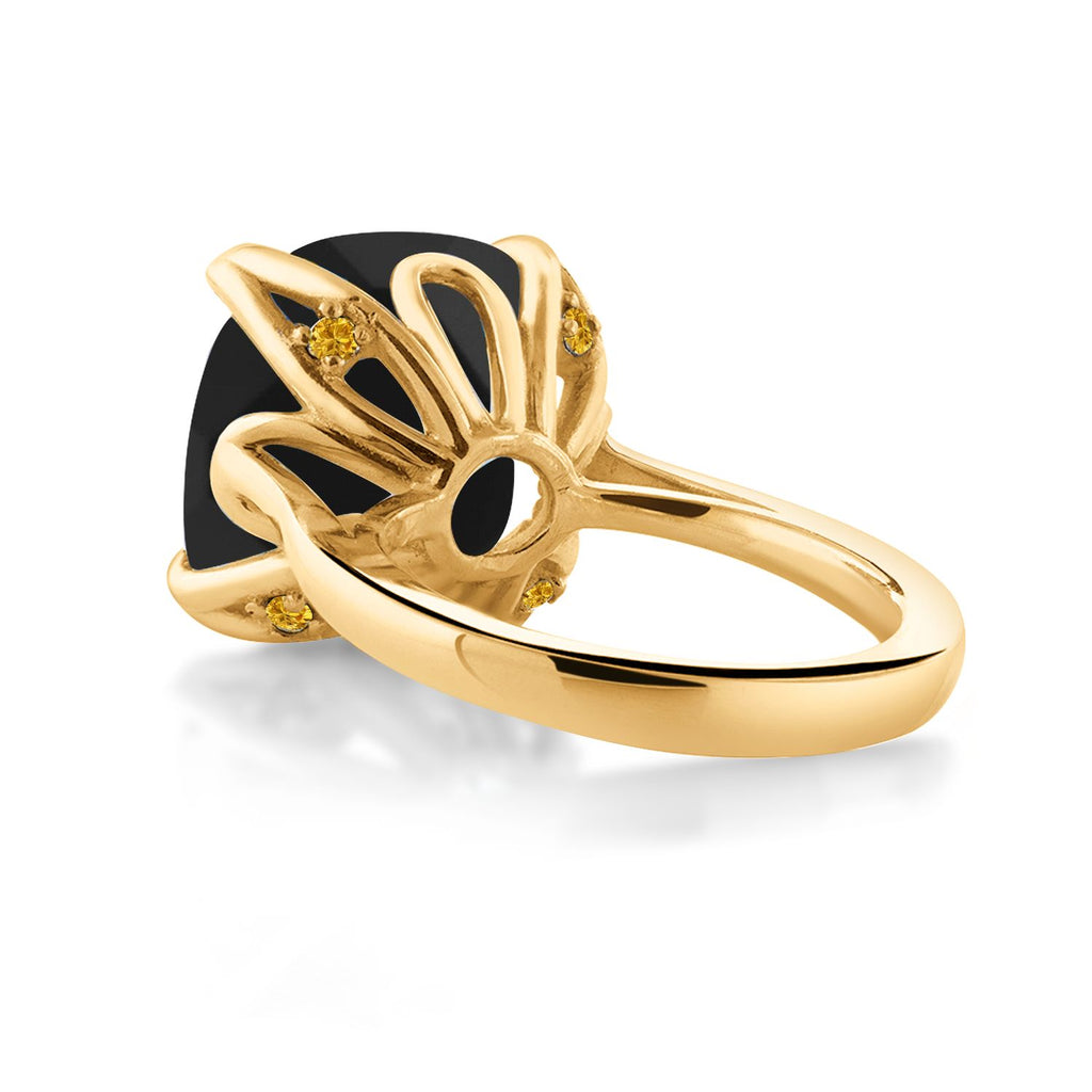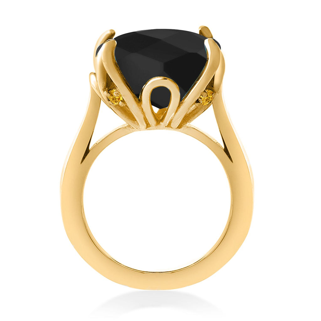 18K Yellow Gold Plated Silver Black Onyx and Yellow Created Sapphire Engagement Ring For Women (8.22 Cttw, 14MM Cushion Checkerboard, Available in Size 5,6,7,8,9)