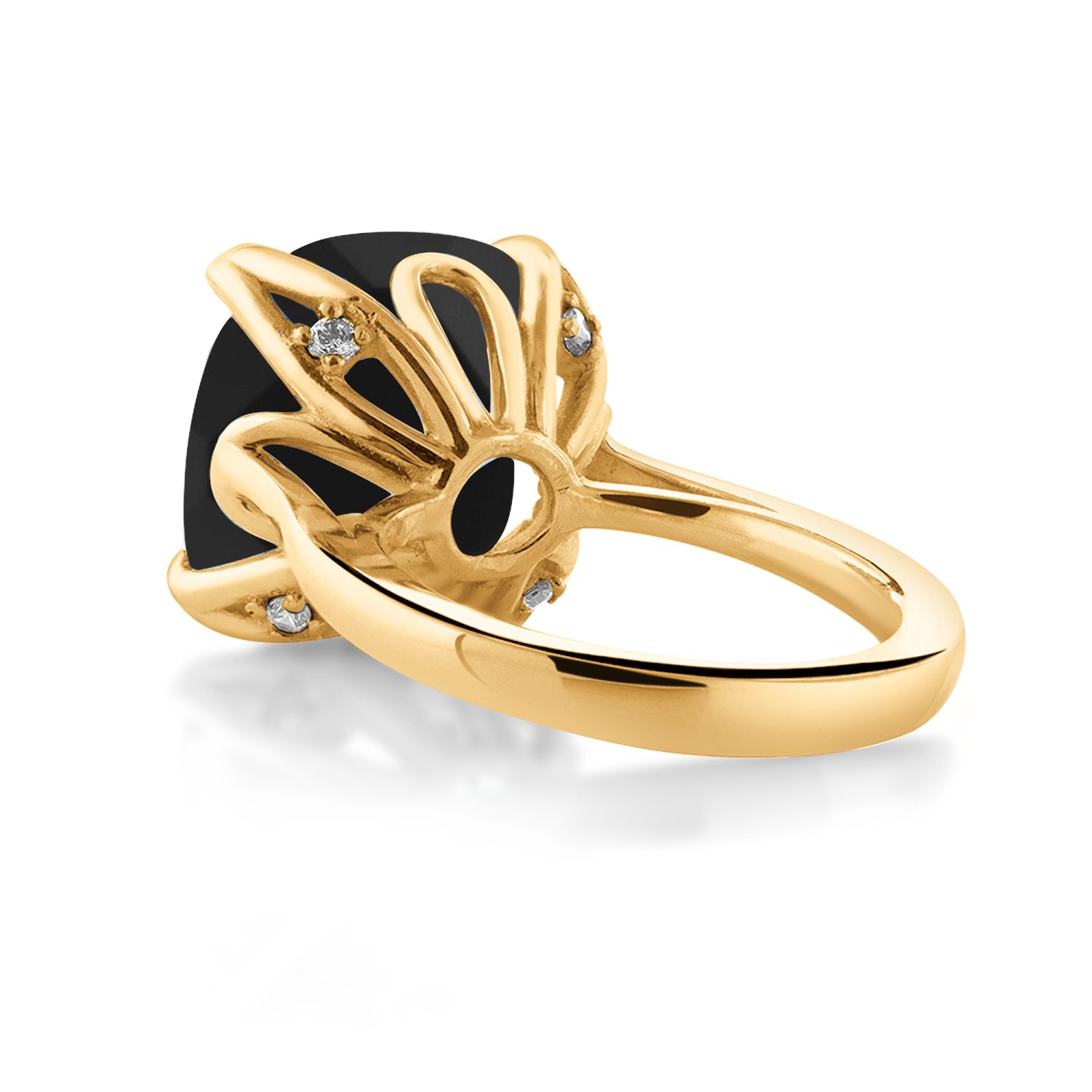 18K Yellow Gold Plated Silver Black Onyx Engagement Ring For Women (8.33 Cttw, 14MM Cushion Checkerboard, Available in Size 5,6,7,8,9)