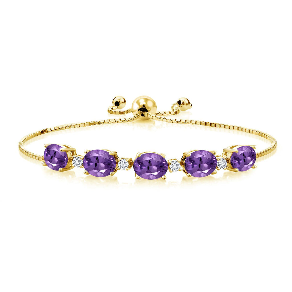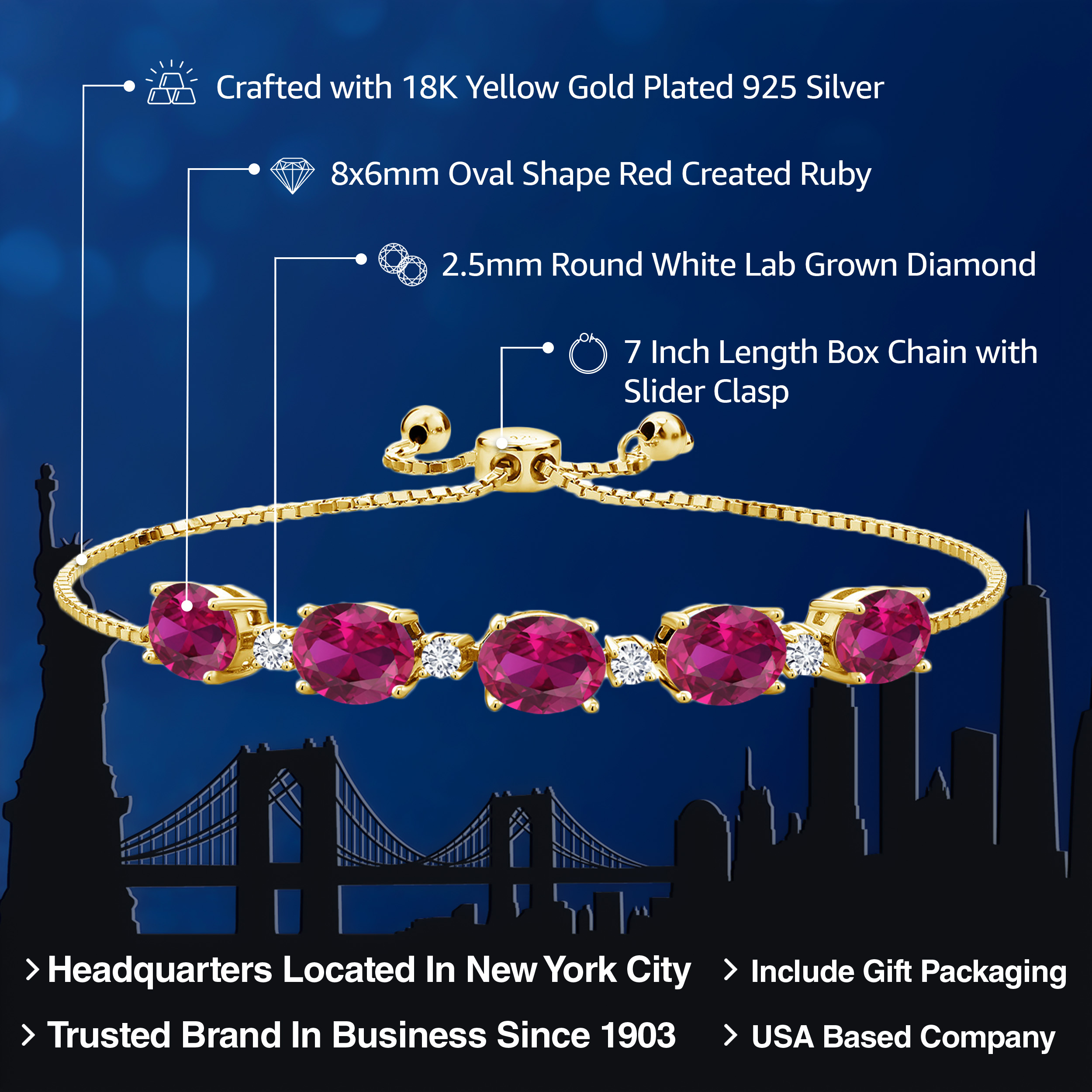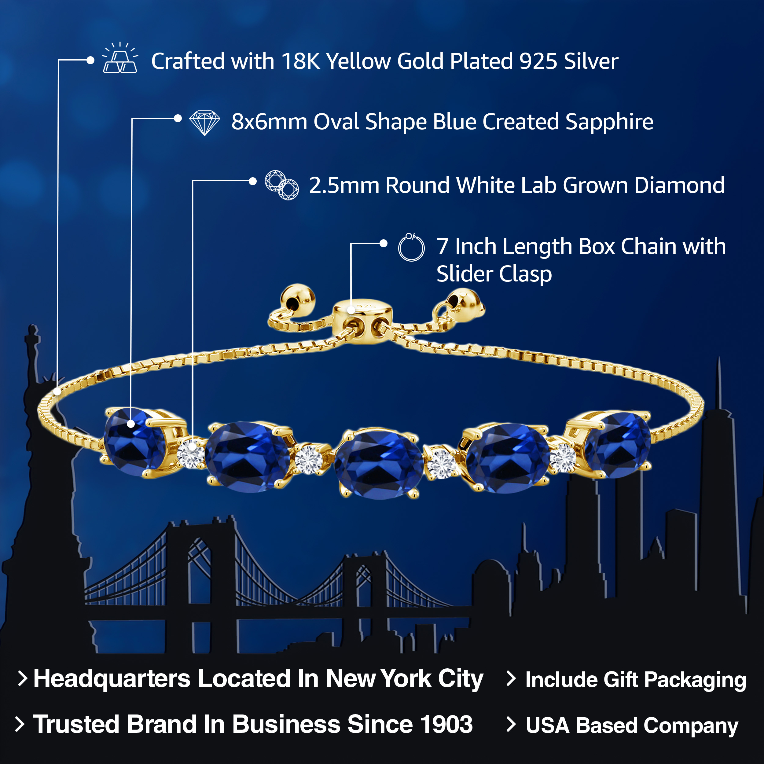 18K Yellow Gold Plated Silver Gemstone Birthstone and White Lab Grown Diamond Tennis Bracelet for Women | Oval 8X6MM with Round 2.5MM Accents | Adjustable Bolo Chain | Fine Jewelry for Her Mom Wife
