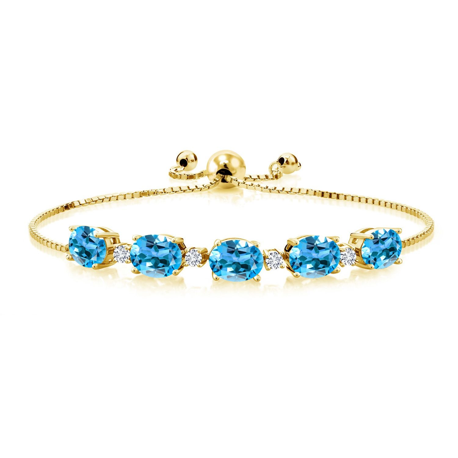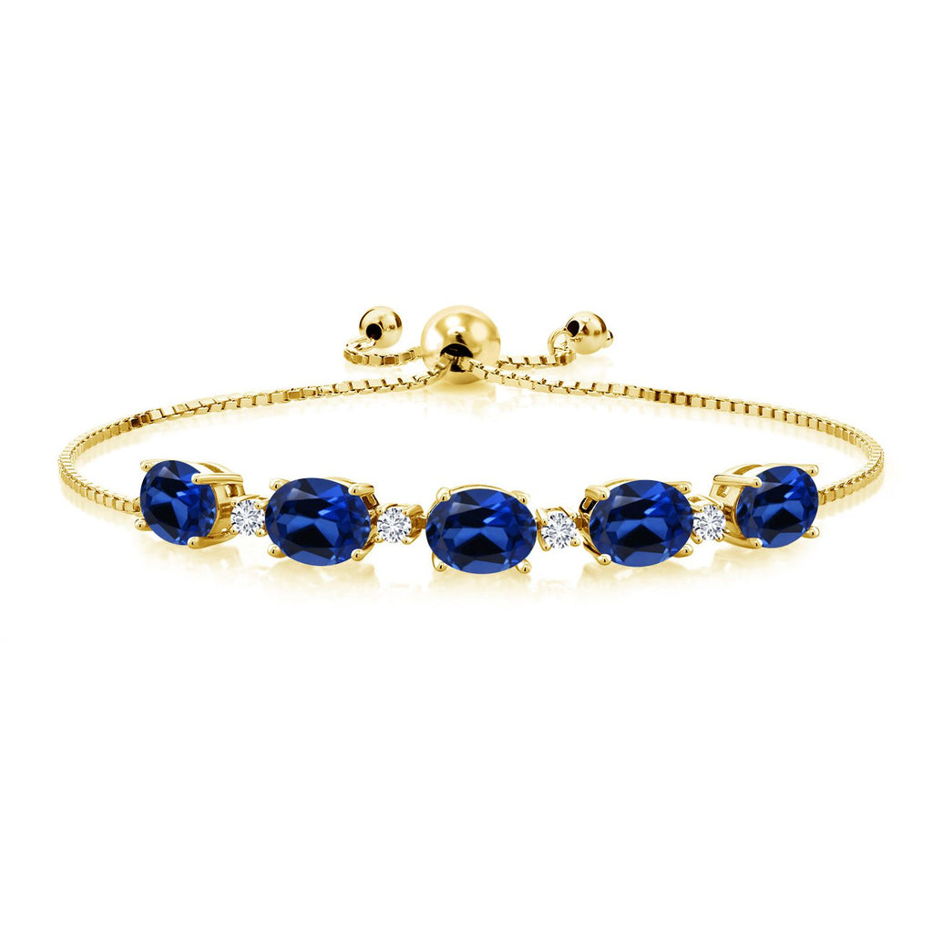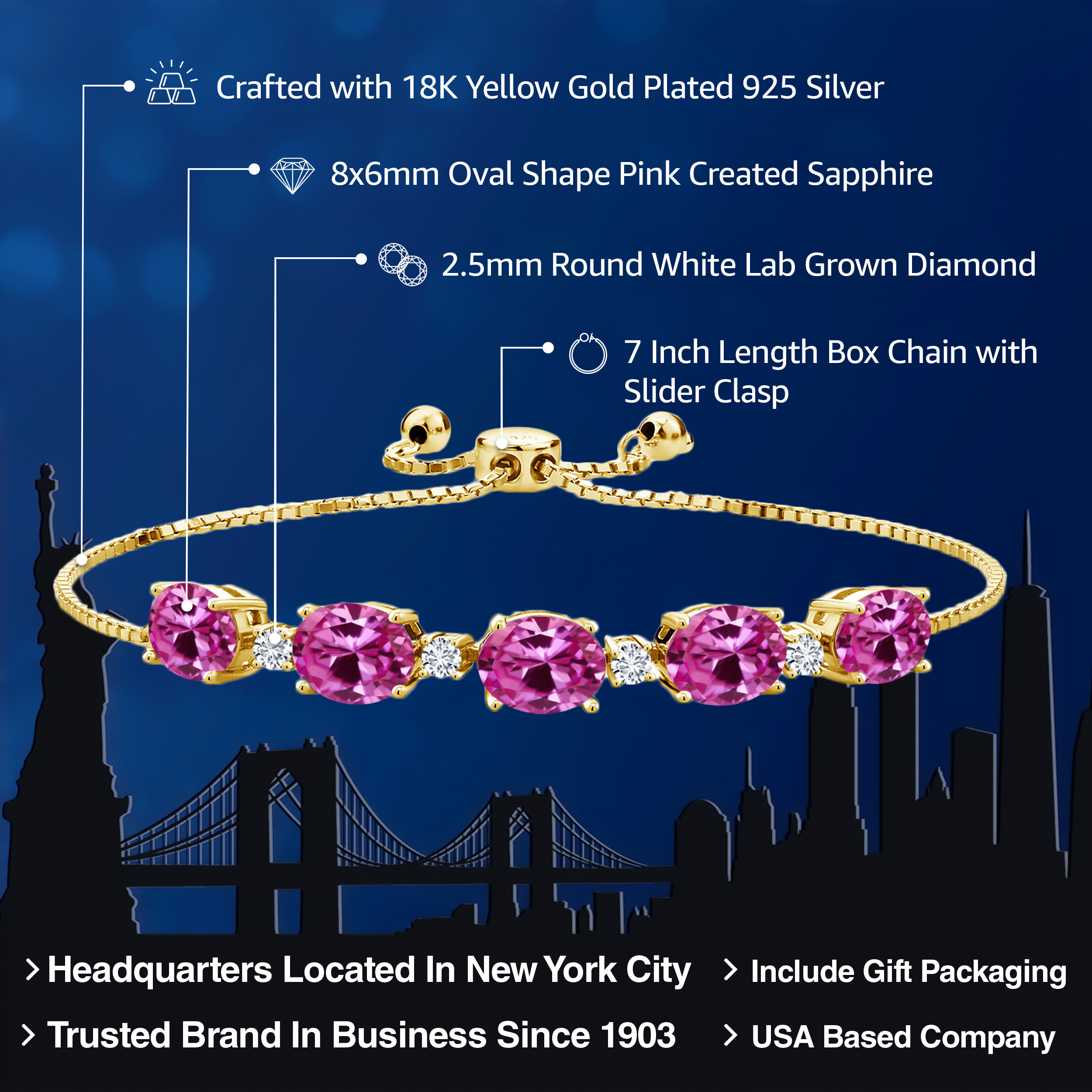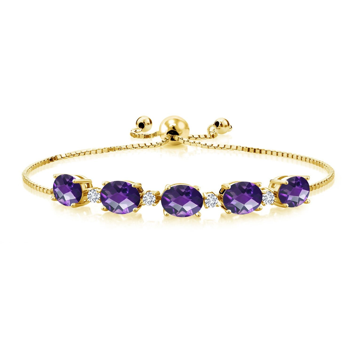 18K Yellow Gold Plated Silver Gemstone Birthstone and White Lab Grown Diamond Tennis Bracelet for Women | Oval 8X6MM with Round 2.5MM Accents | Adjustable Bolo Chain | Fine Jewelry for Her Mom Wife