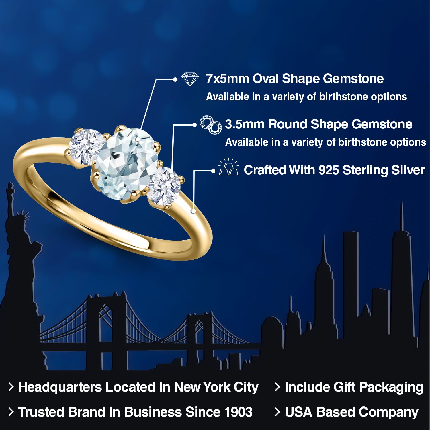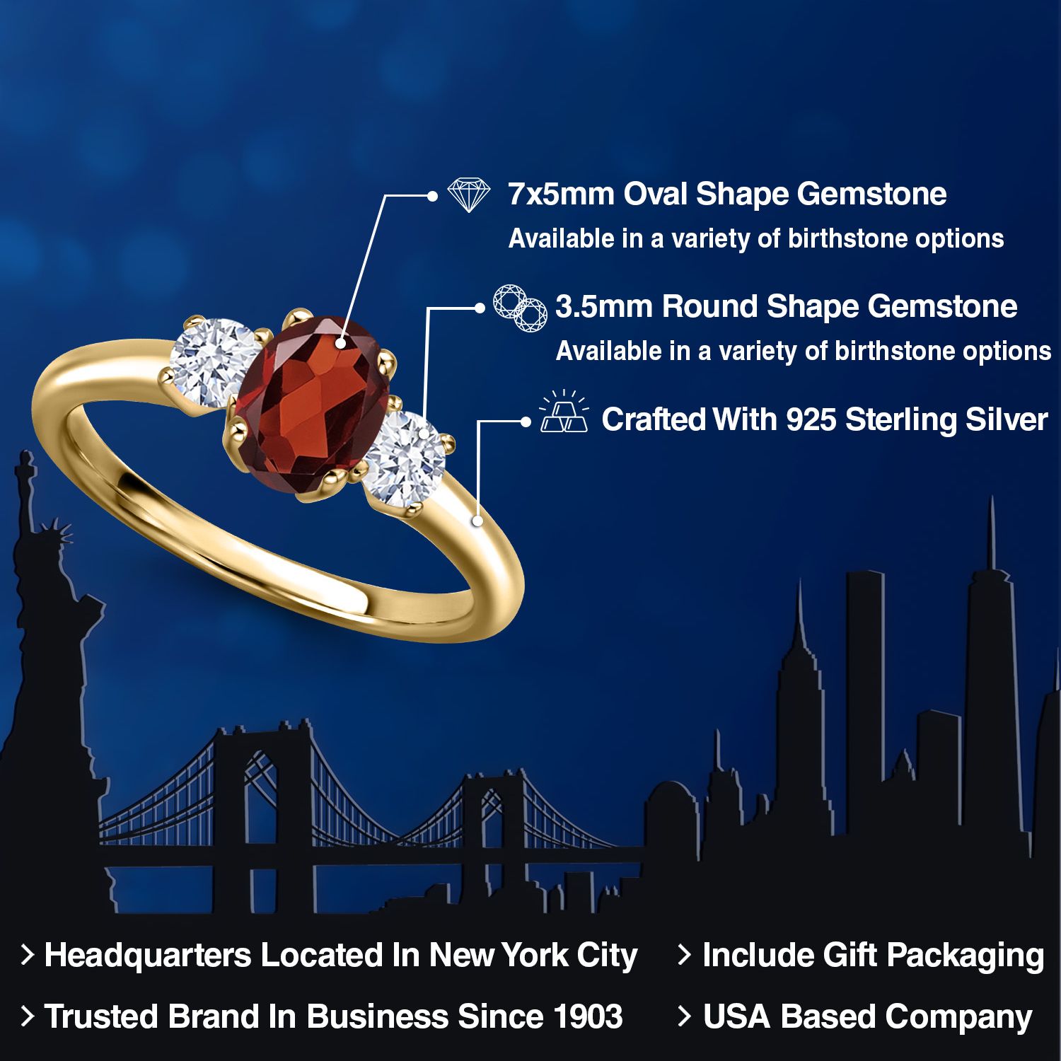 OVAL AND ROUND GEMSTONE BRILLIANCE: This exquisite 3-stone engagement ring features a captivating 7x5MM oval gemstone complemented by two sparkling 3MM round zirconias, available in a variety of birthstone options. The unique combination of shapes and sizes creates a harmonious balance, enhancing the ring's allure and visual depth. Each gemstone is carefully selected for its clarity and brilliance, ensuring a radiant display of color and light that captures the heart.