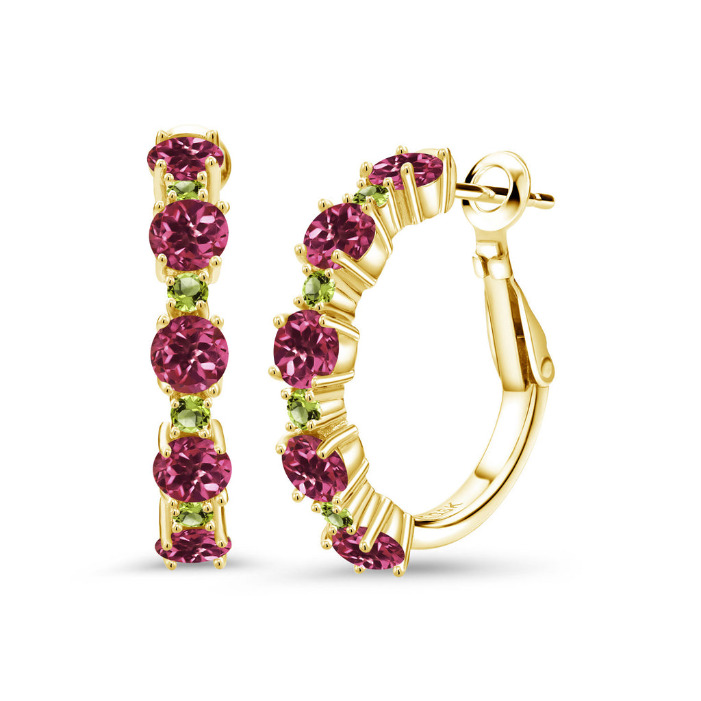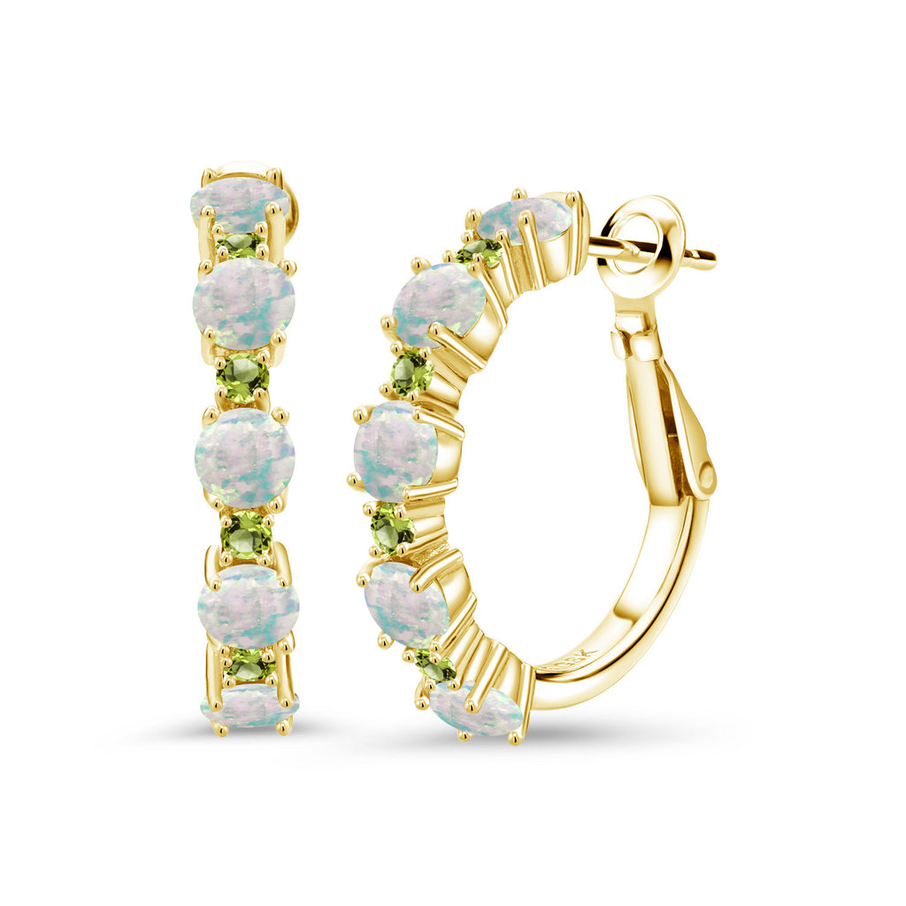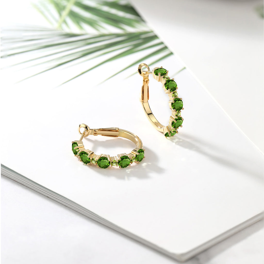 18K Yellow Gold Plated Silver Gemstone Birthstone and Peridot Hoop Earrings for Women | Round Cut 4MM and 1.9MM Stones | 1 Inch Diameter Hoops | Fine Jewelry for Her Mom Wife Women