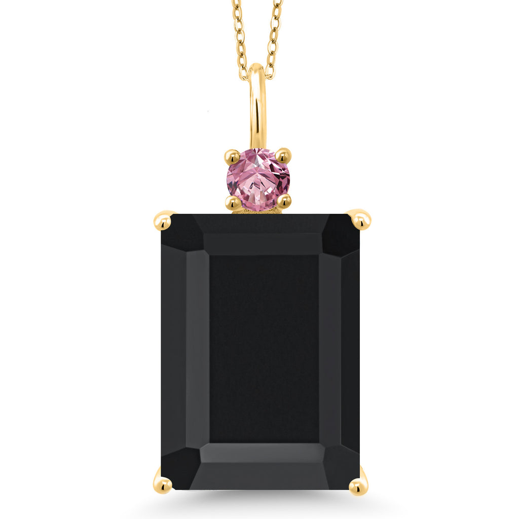 18K Yellow Gold Plated Silver Gemstone Birthstone and Pink Lab Grown Diamond Pendant Necklace for Women | Emerald Cut 18X13MM and Round 4MM | With 18 Inch Chain | Fine Jewelry for Her Mom Wife