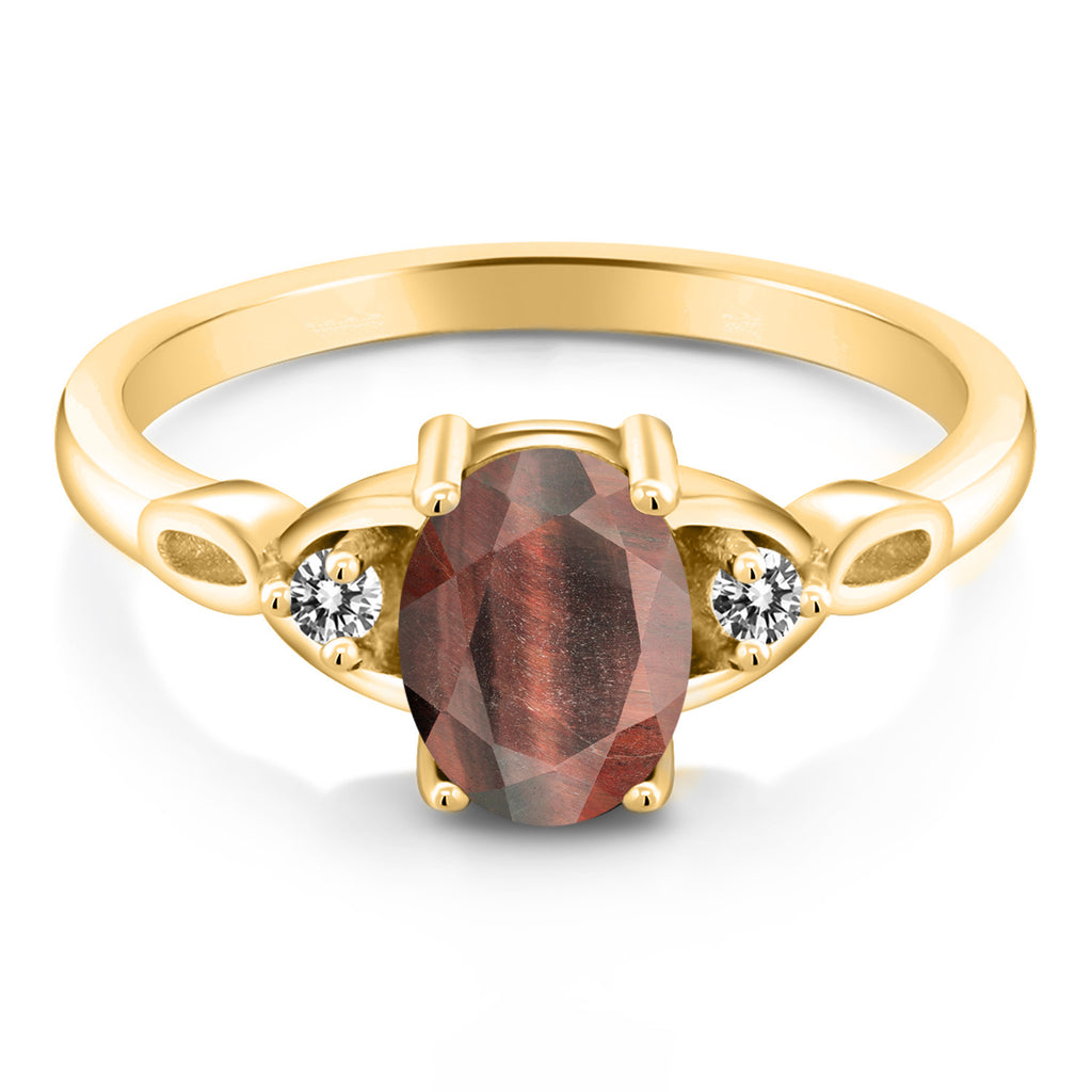 18K Yellow Gold Plated Silver Gemstone Birthstone and White Created Sapphire 3-Stone Ring for Women | Oval 8X6MM with 2MM Round | Three Stone Wedding Anniversary Engagement Promise Ring | Sizes 5-9