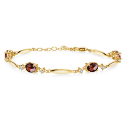 18K Yellow Gold Plated Silver Gemstone Birthstone and White Created Sapphire Tennis Bracelet For Women | Oval 7X5MM and 2MM | 6 Inch + 1 Inch Extender | Fine Jewelry for Her Mom Wife