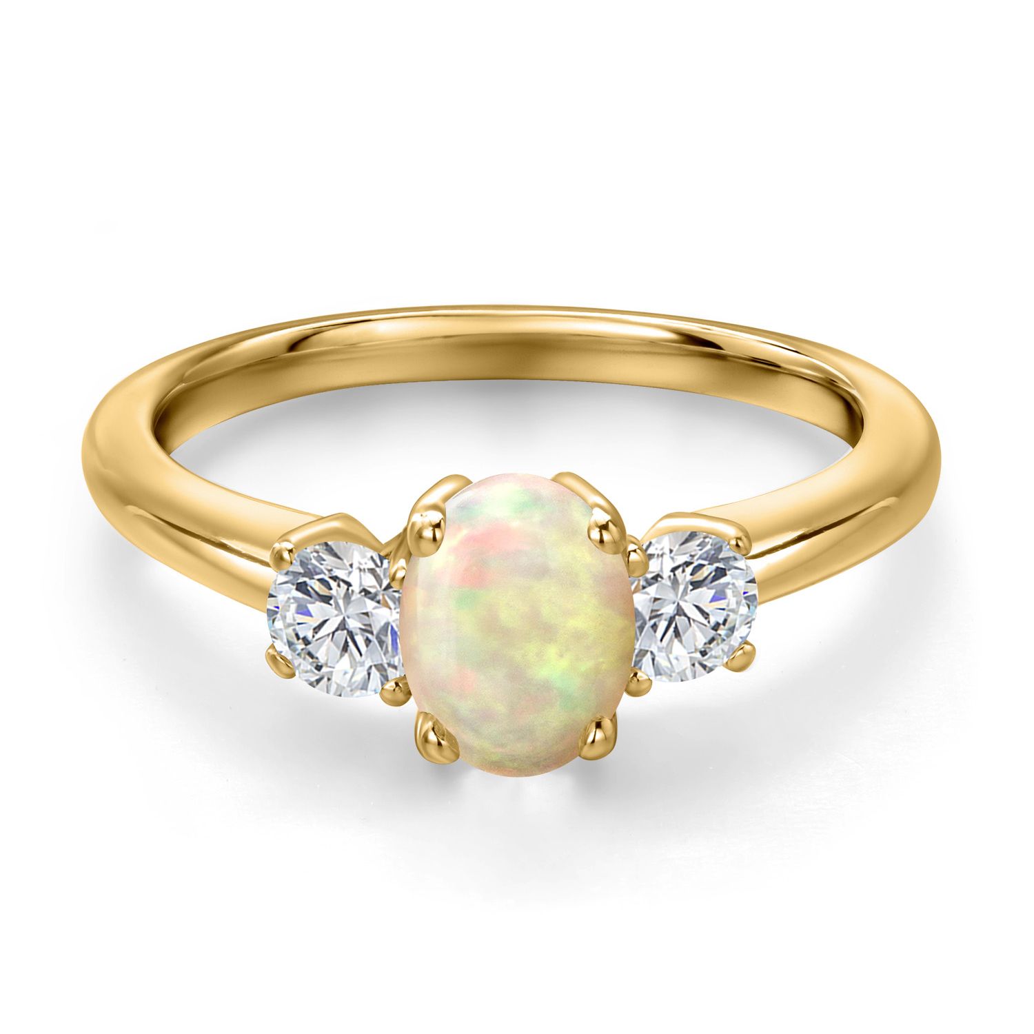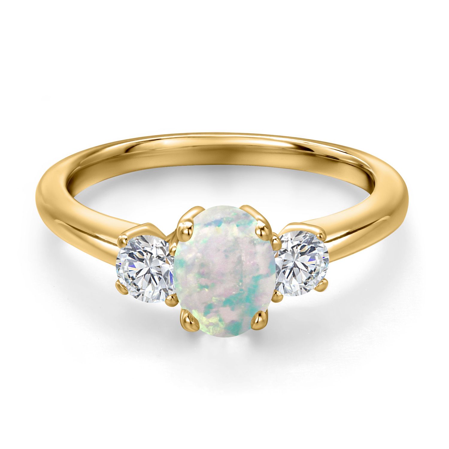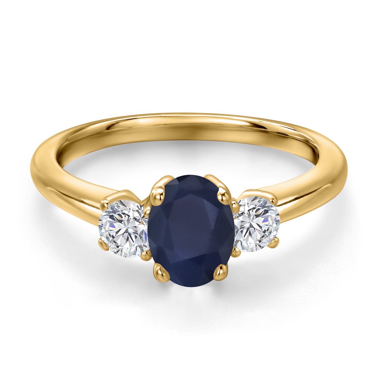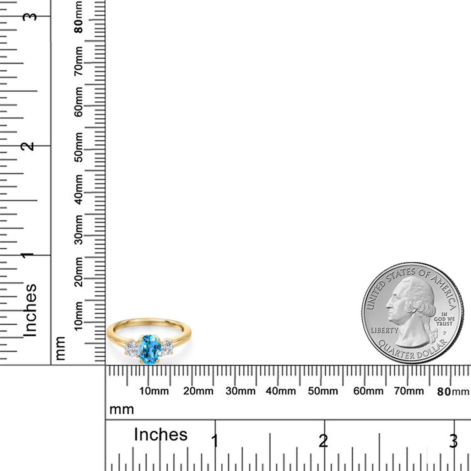 18K Yellow Gold Plated Silver Gemstone Birthstone and White Lab Grown Diamond 3-Stone Engagement Ring for Women | Oval 7X5MM and Round 3MM | Wedding Anniversary Promise Ring | Sizes 5, 6, 7, 8, 9