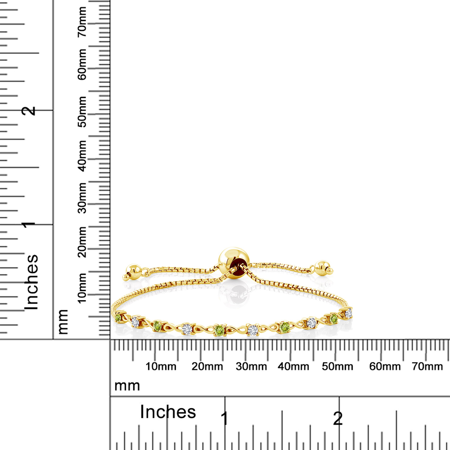 18K Yellow Gold Plated Silver Gemstone Birthstone and White Lab Grown Diamond Infinity Tennis Bracelet For Women | Round 2.5MM | Adjustable Bolo Bracelet Up to 9 Inch | Easy-On Easy-Off