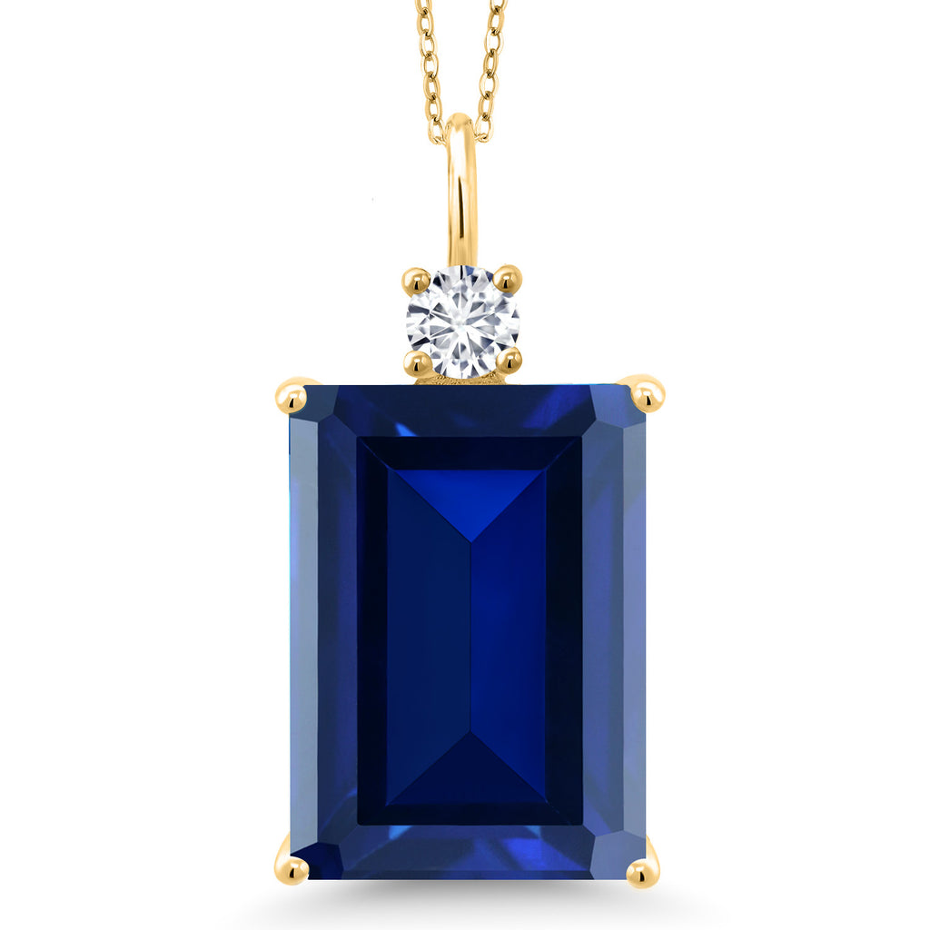 18K Yellow Gold Plated Silver Gemstone Birthstone and White Lab Grown Diamond Pendant Necklace for Women | Emerald Cut 18X13MM and Round 4MM | With 18 Inch Chain | Fine Jewelry for Her Mom Wife