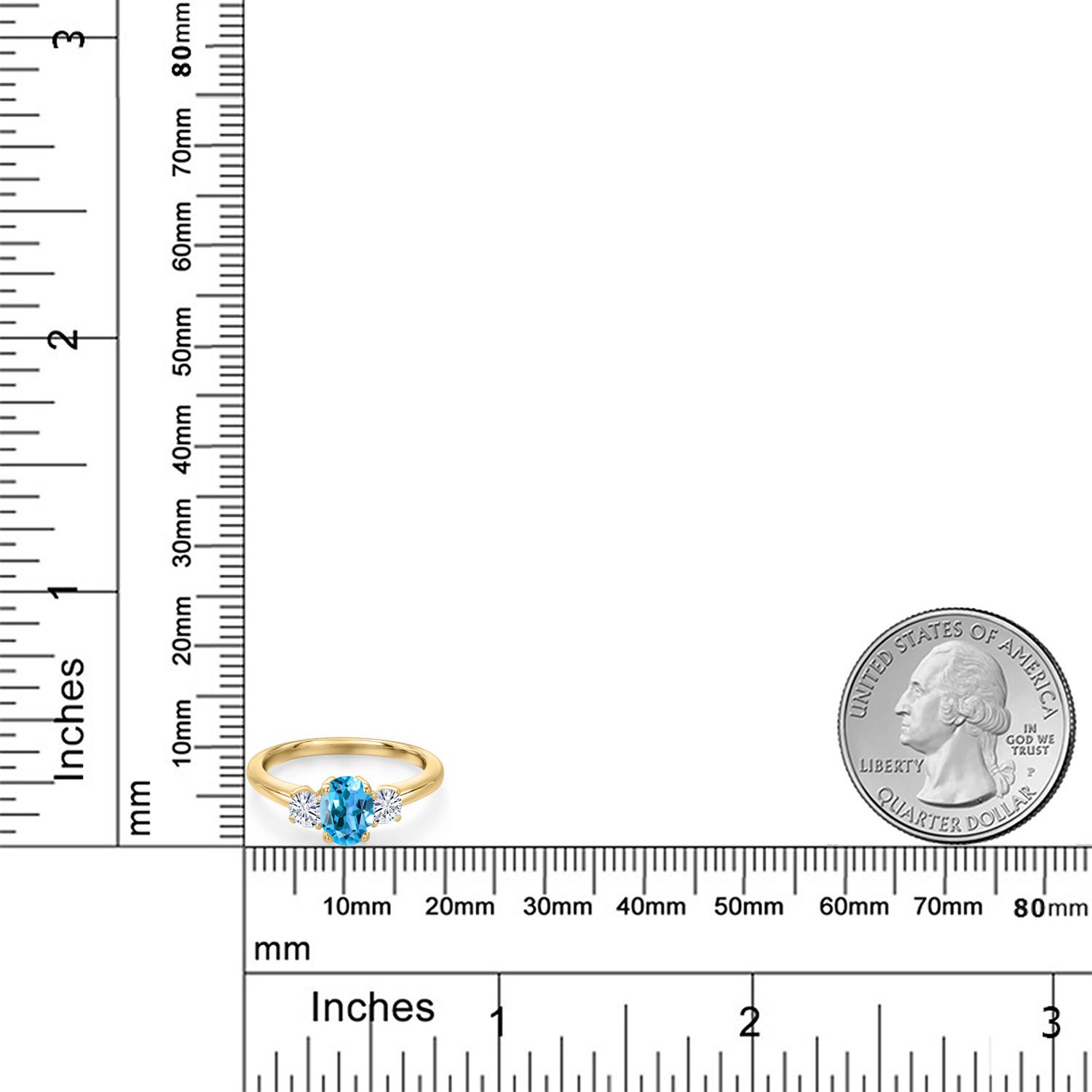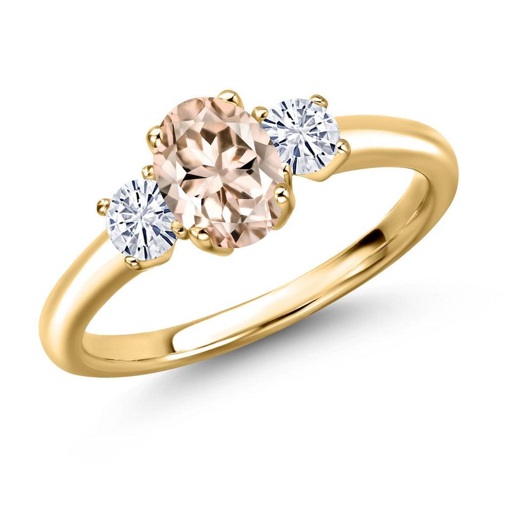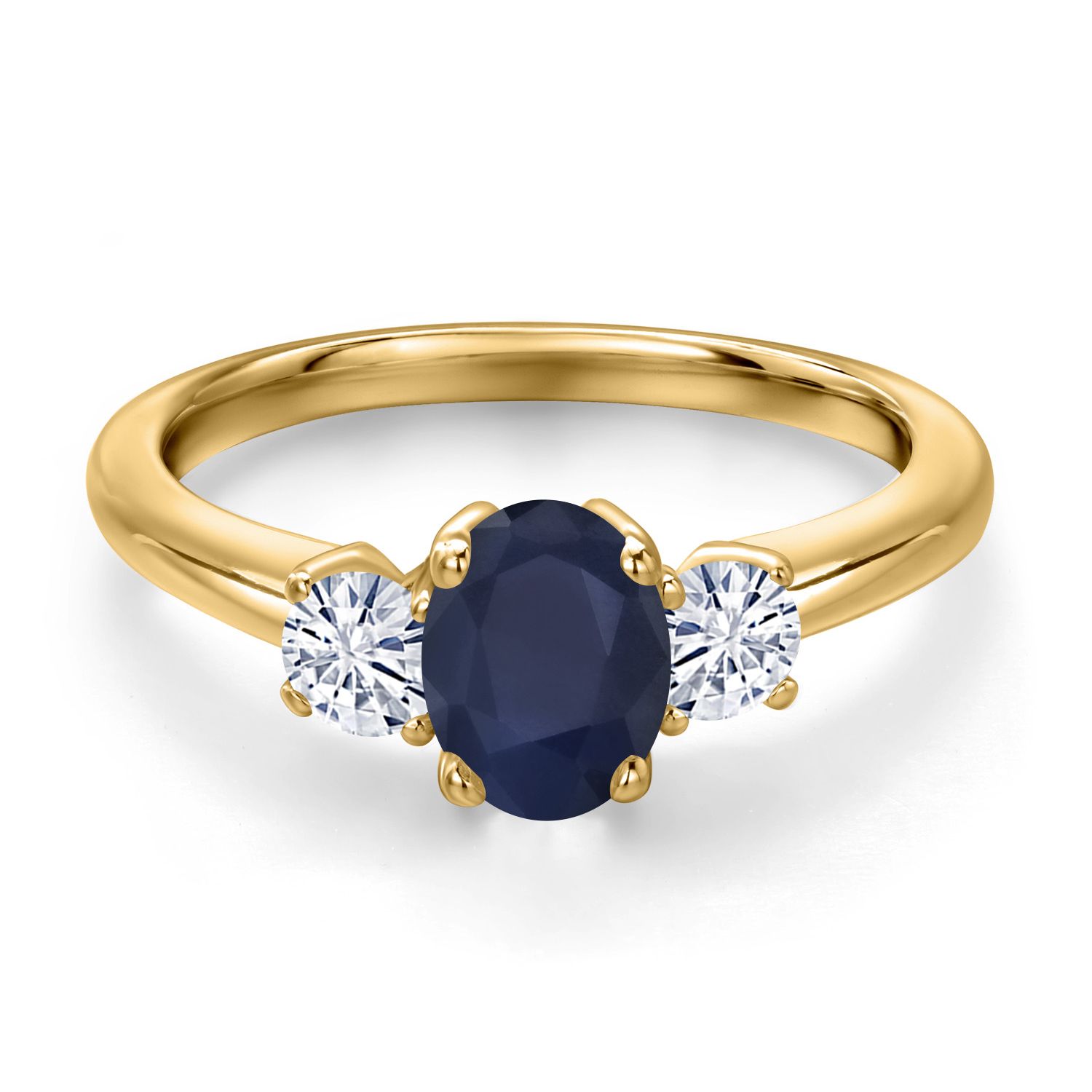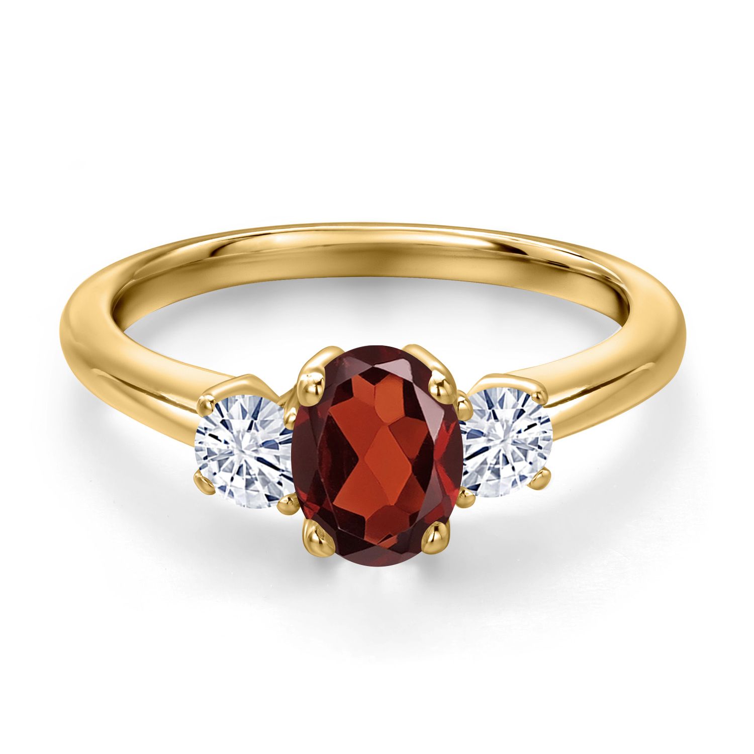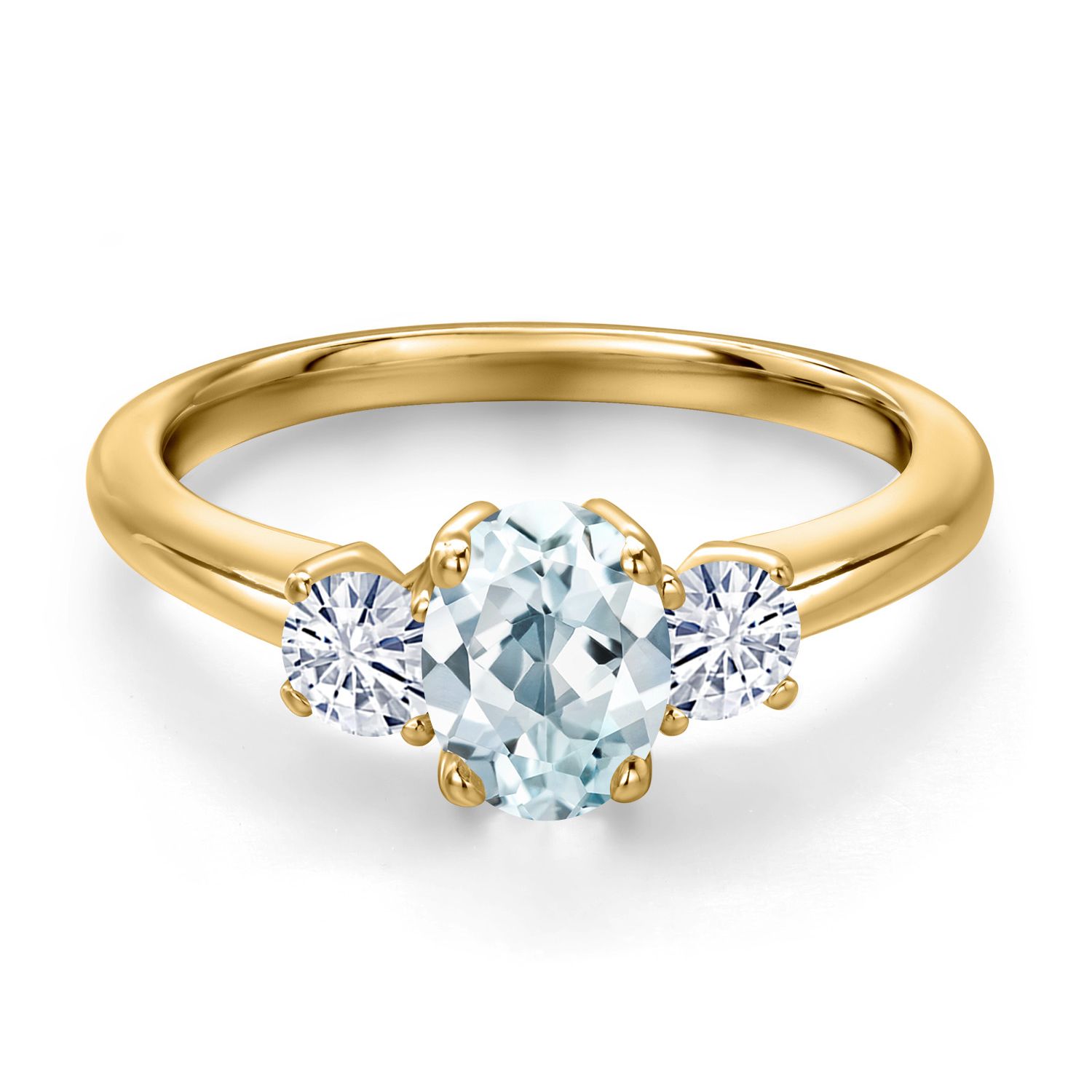 18K Yellow Gold Plated Silver Gemstone Birthstone and White Moissanite 3-Stone Engagement Ring for Women | Oval 7X5MM and Round 3MM | Wedding Anniversary Promise Ring | Sizes 5, 6, 7, 8, 9