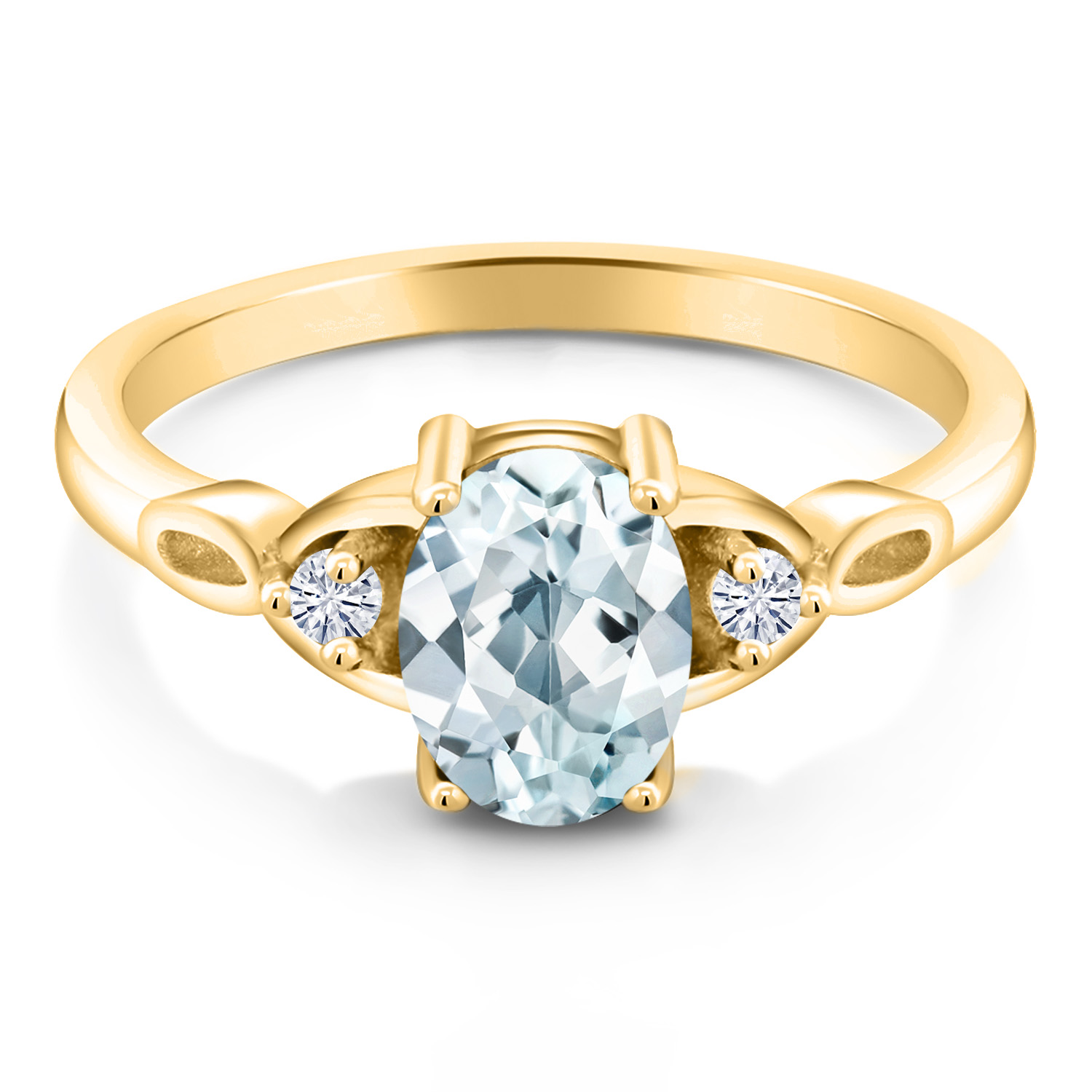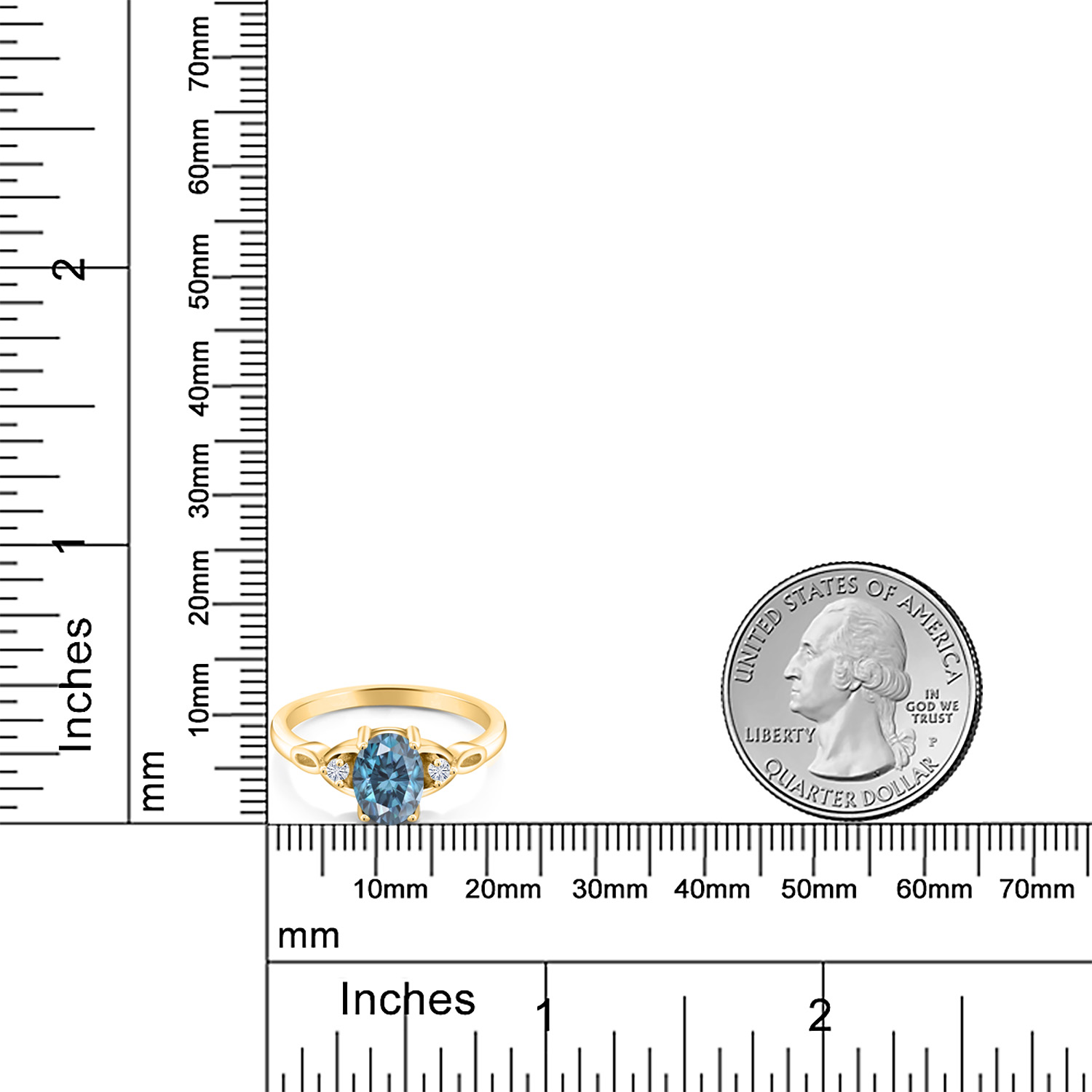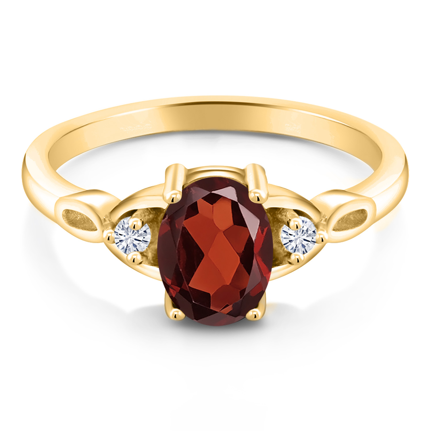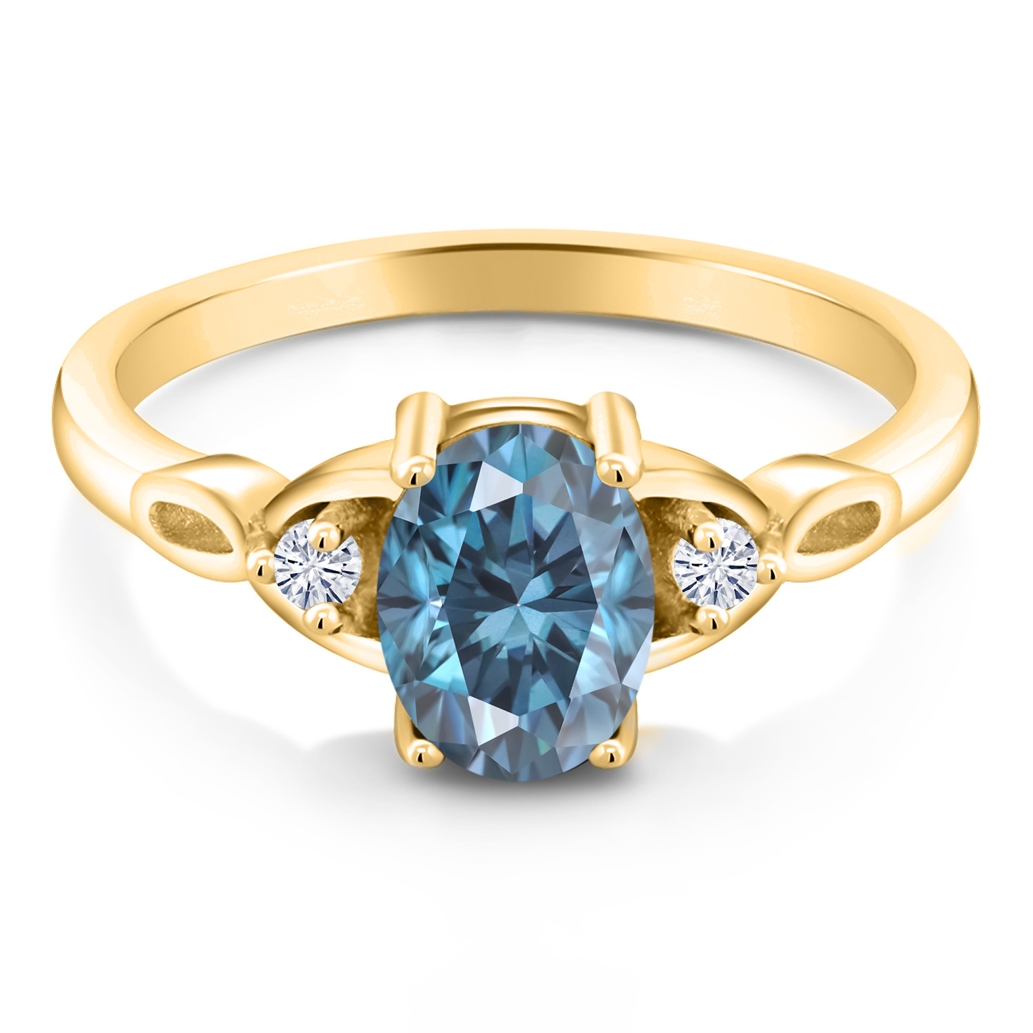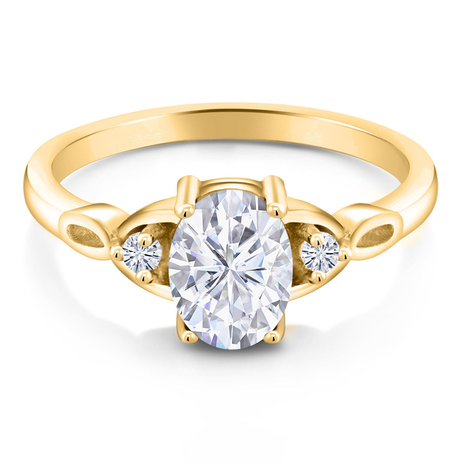 18K Yellow Gold Plated Silver Gemstone Birthstone and White Moissanite 3-Stone Ring for Women | Oval 8X6MM with 2MM Round Accents | Three Stone Wedding Anniversary Engagement Promise Ring | Sizes 5-9