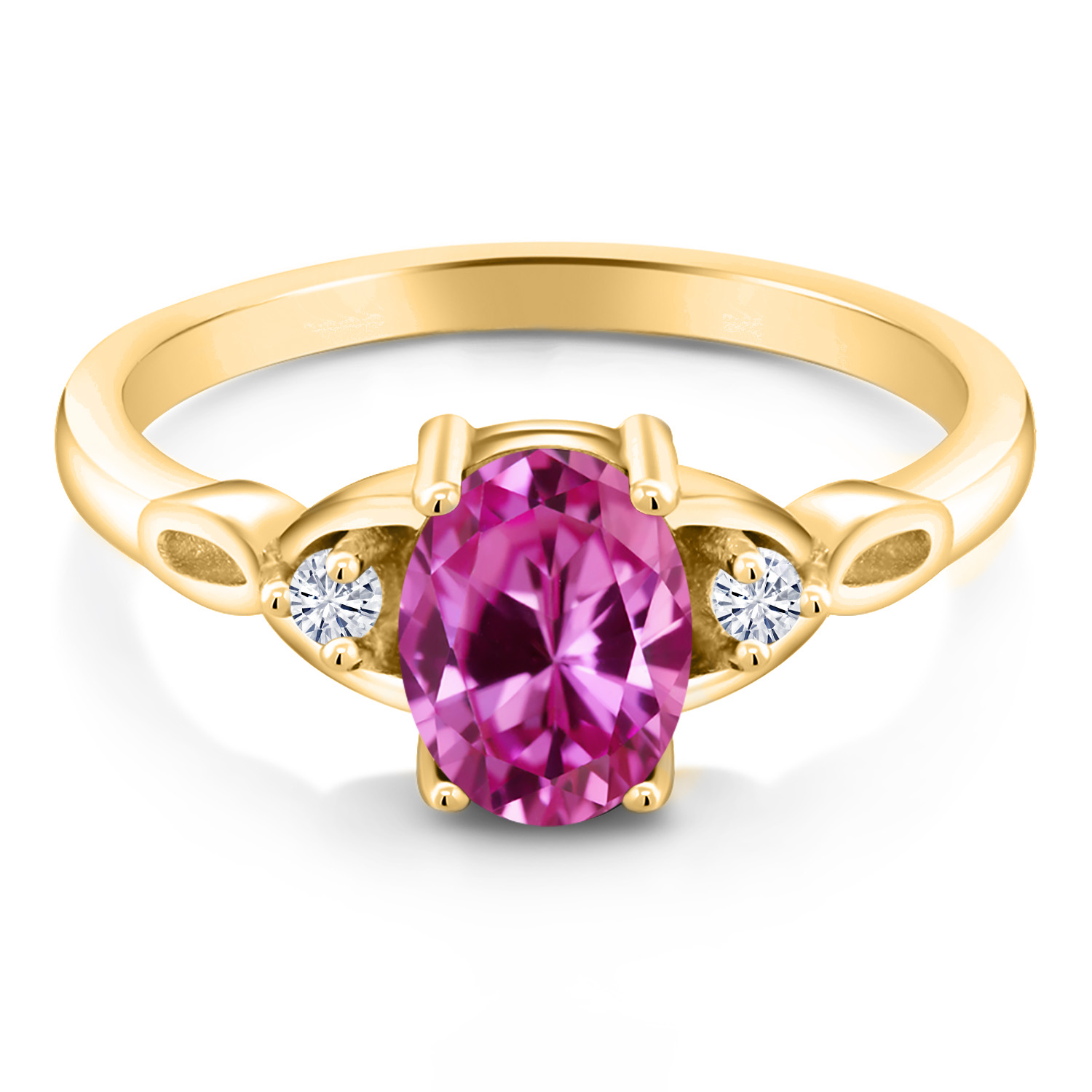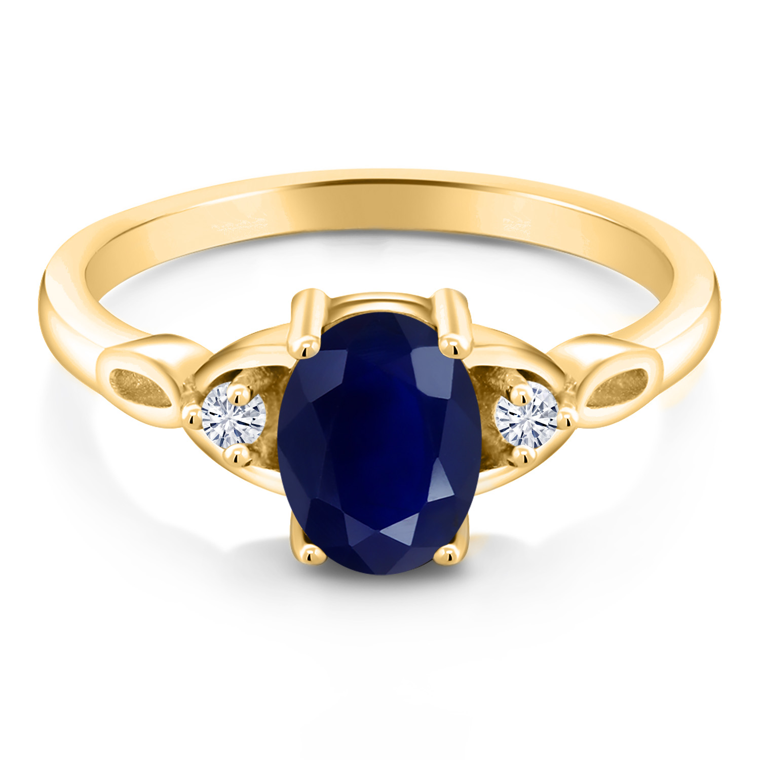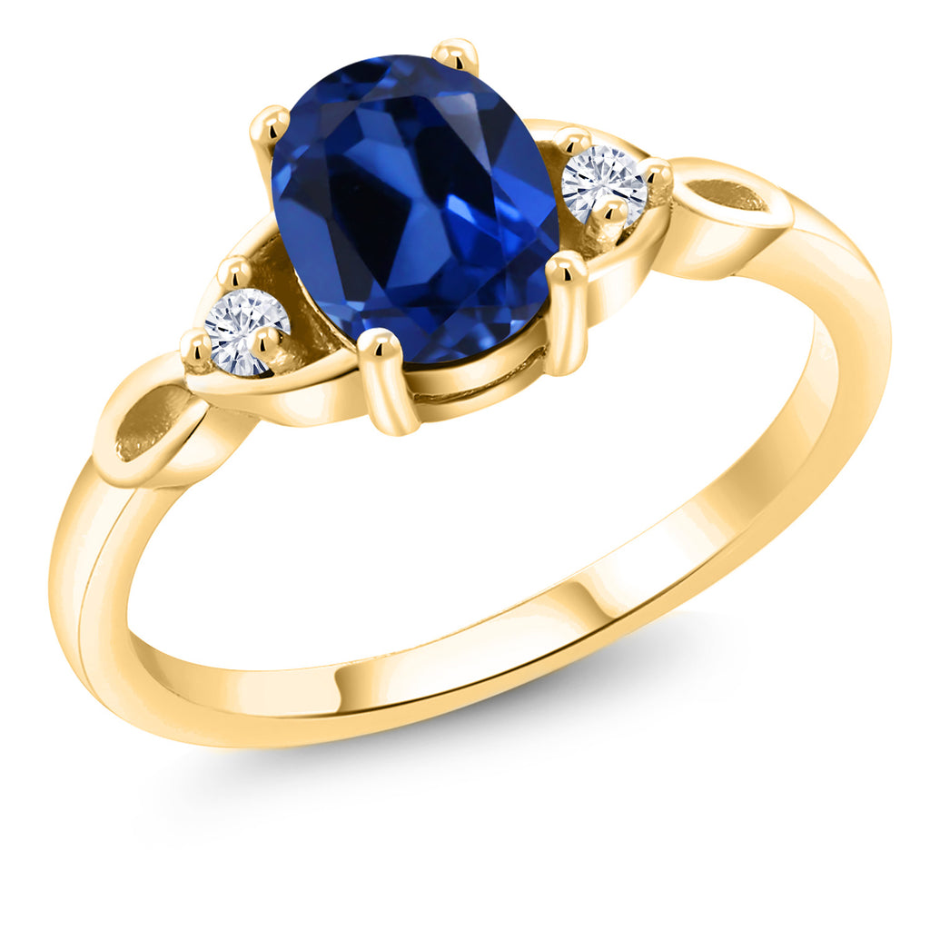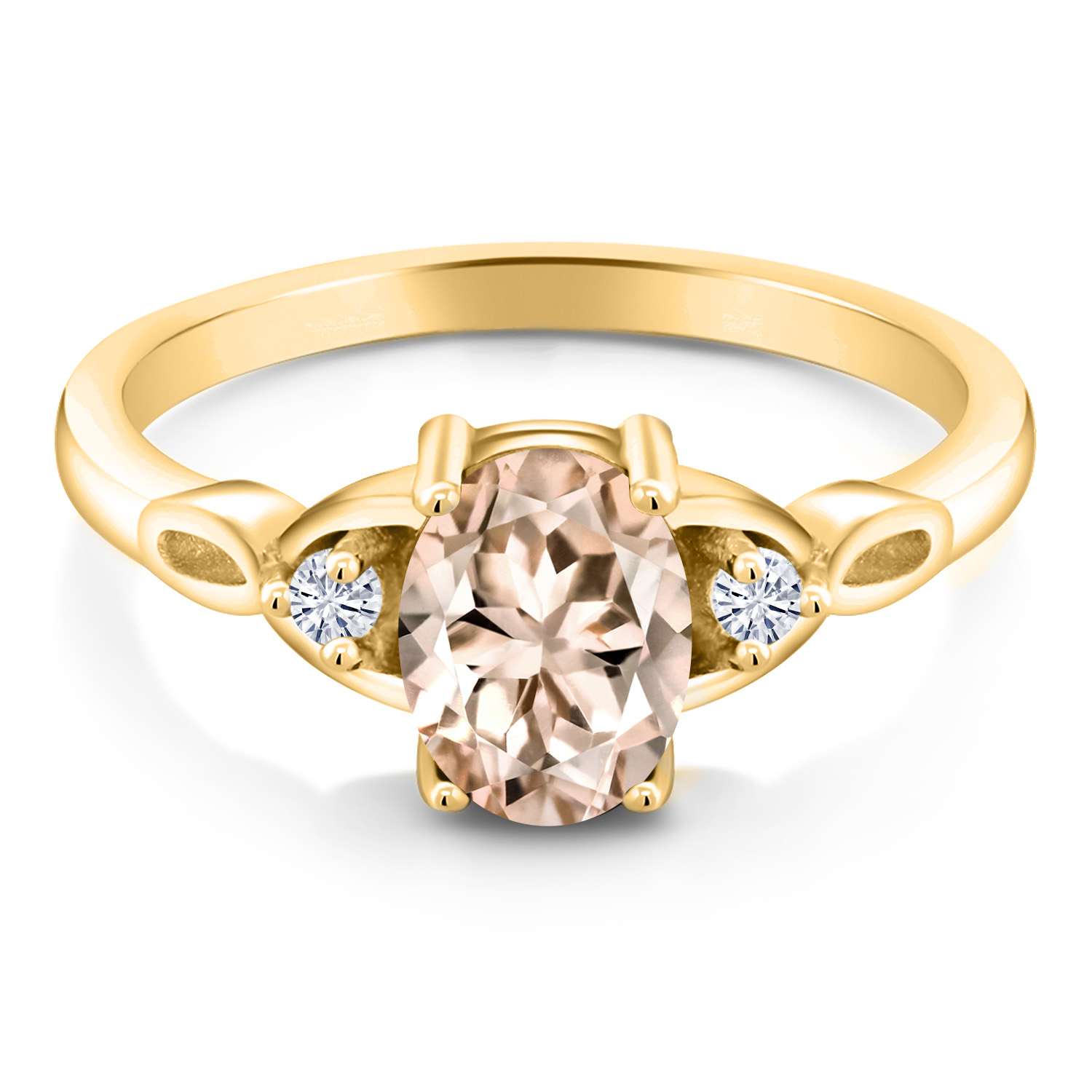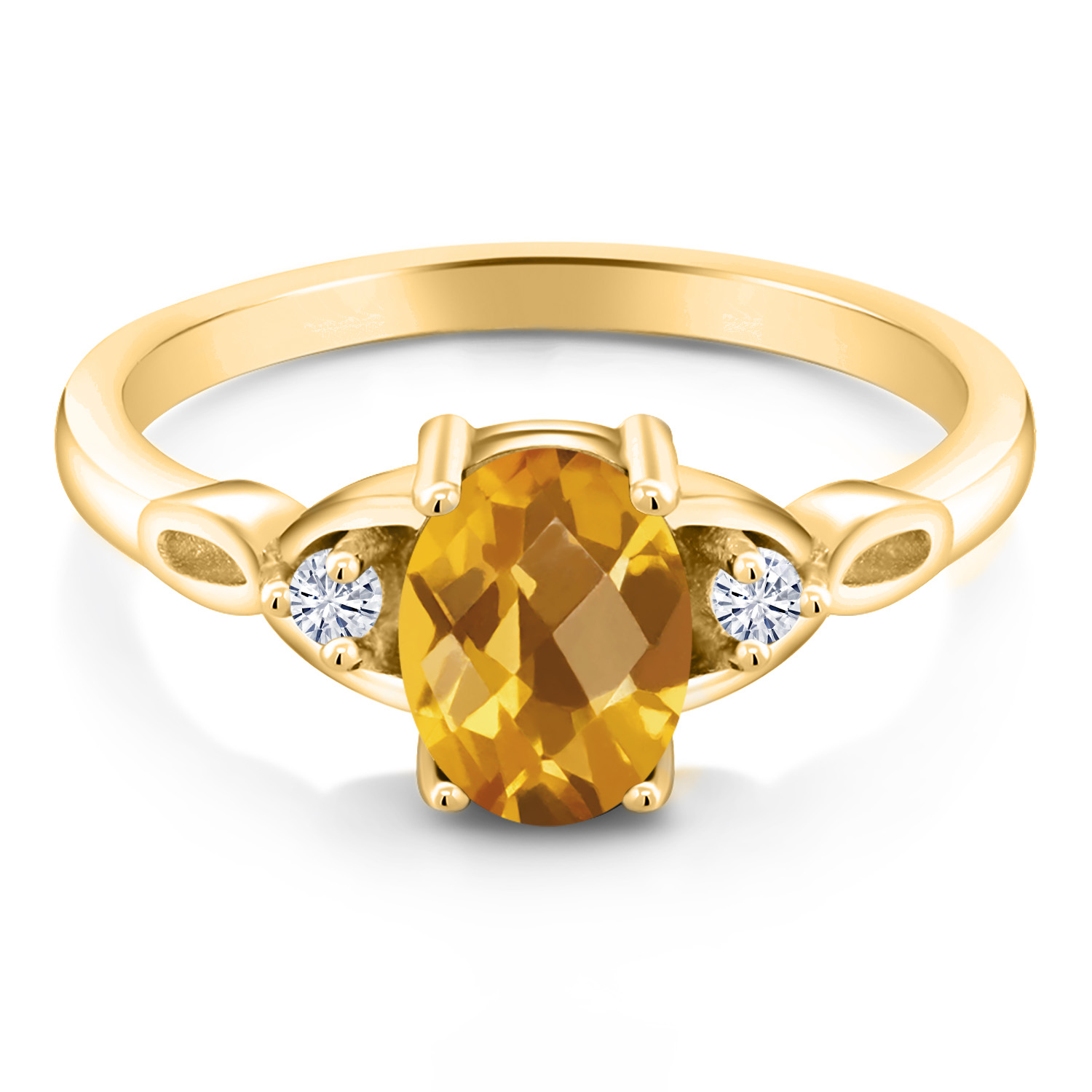 18K Yellow Gold Plated Silver Gemstone Birthstone and White Moissanite 3-Stone Ring for Women | Oval 8X6MM with 2MM Round Accents | Three Stone Wedding Anniversary Engagement Promise Ring | Sizes 5-9
