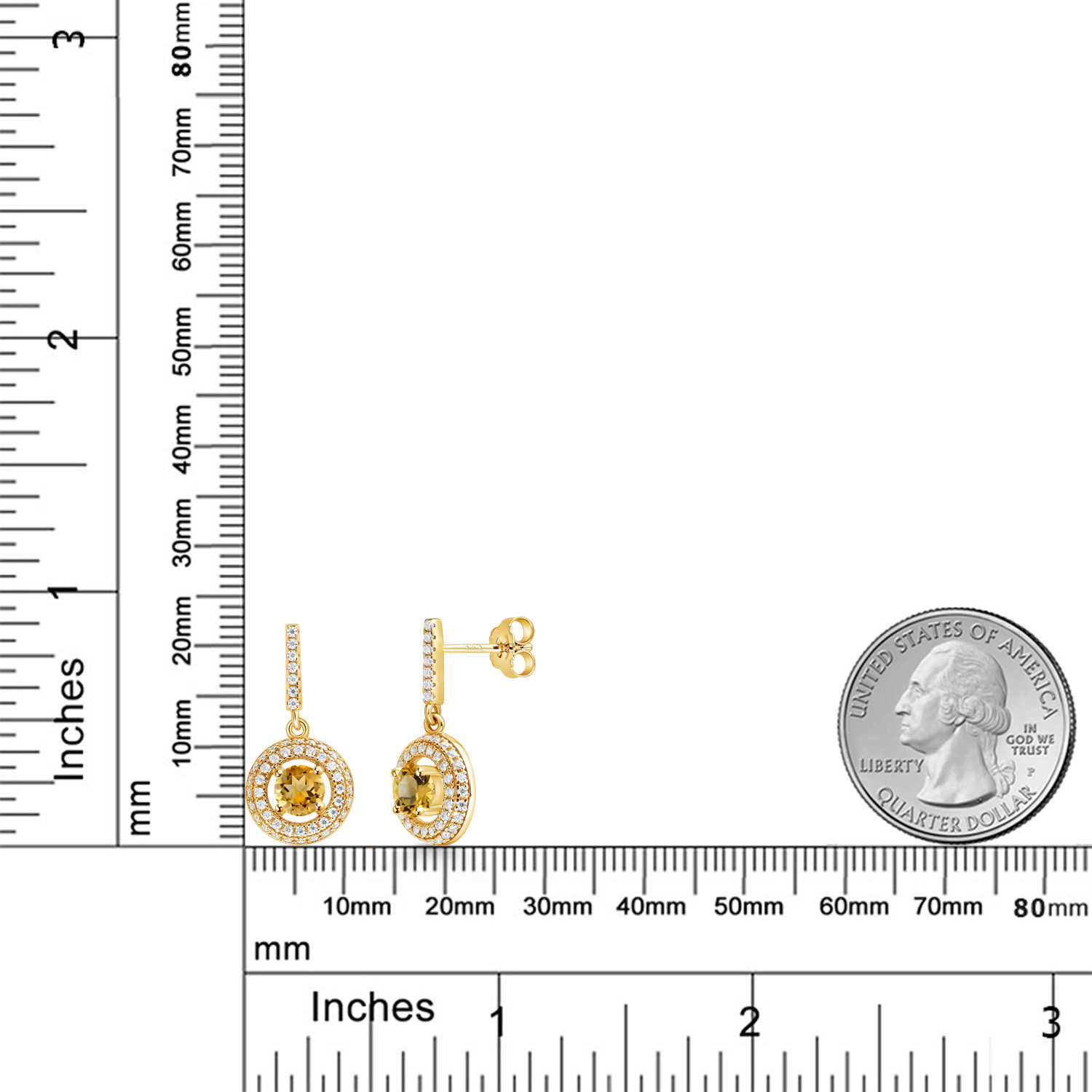 18K Yellow Gold Plated Silver Gemstone Birthstone and White Moissanite Halo Drop Dangle Earrings For Women | Round 5MM | Fine Jewelry for Her Mom Women Wife