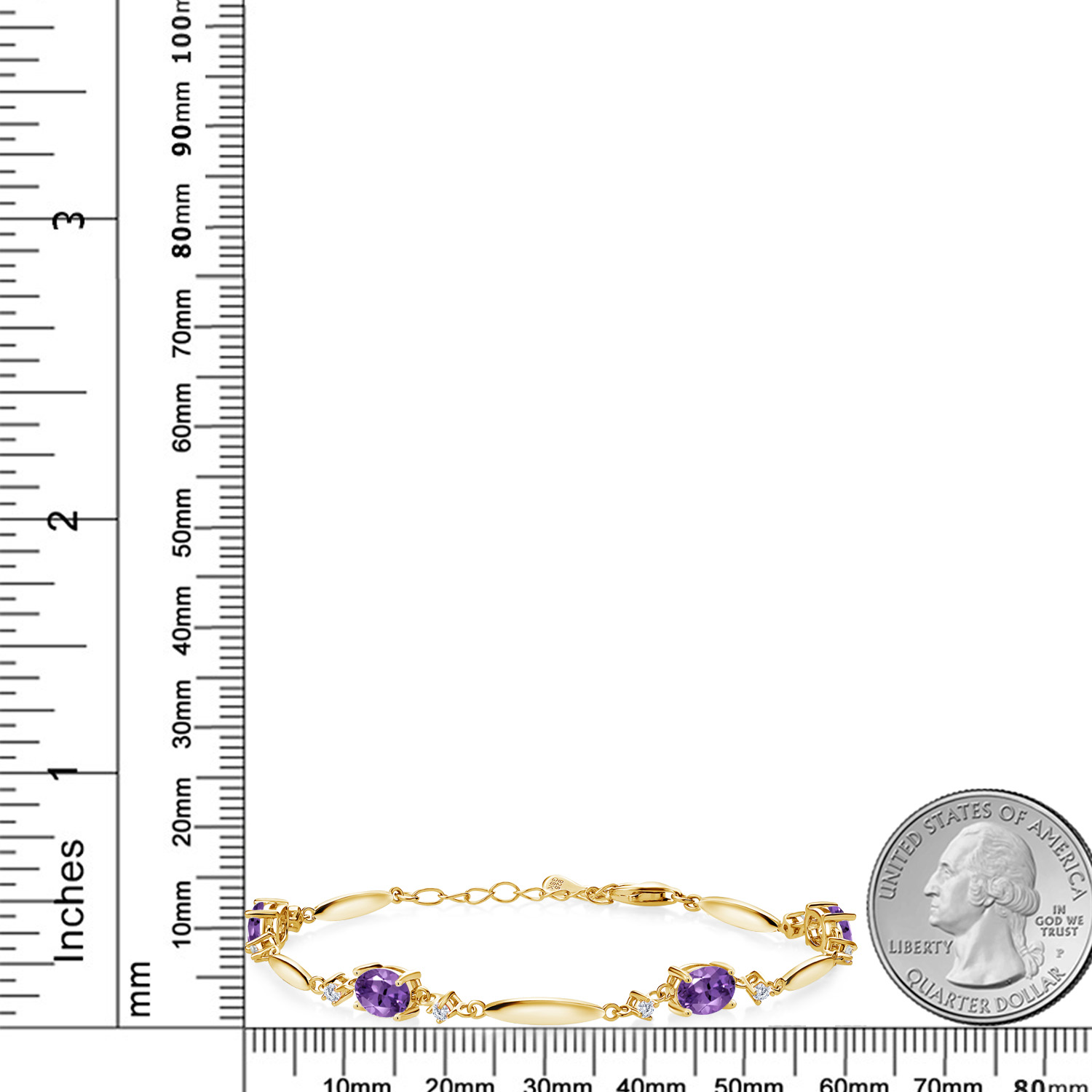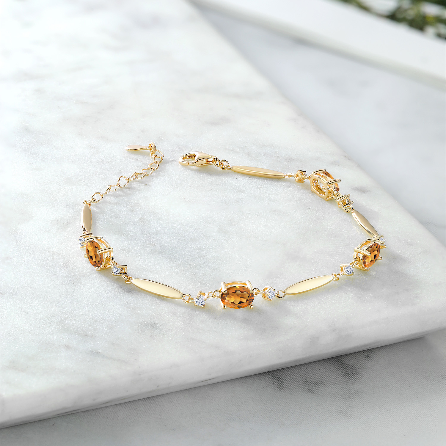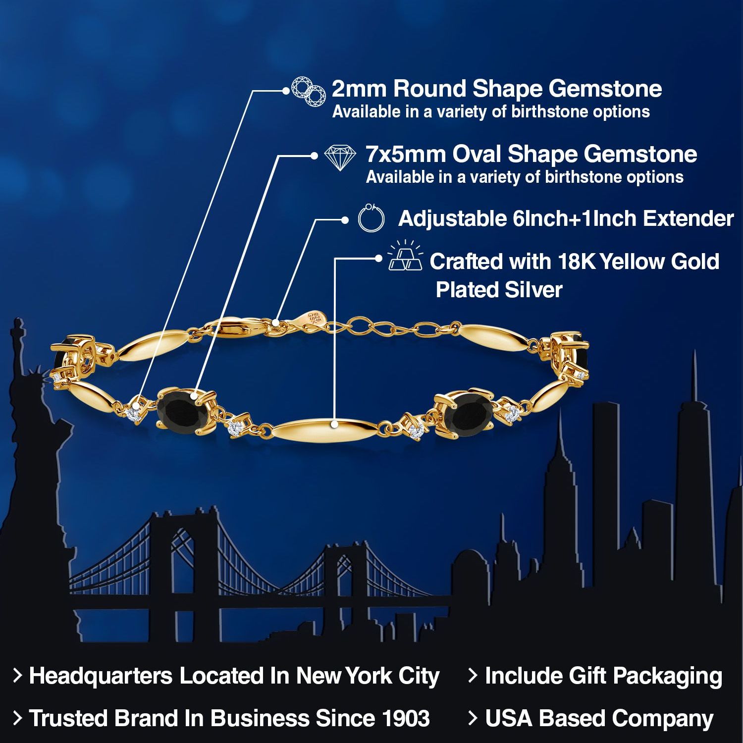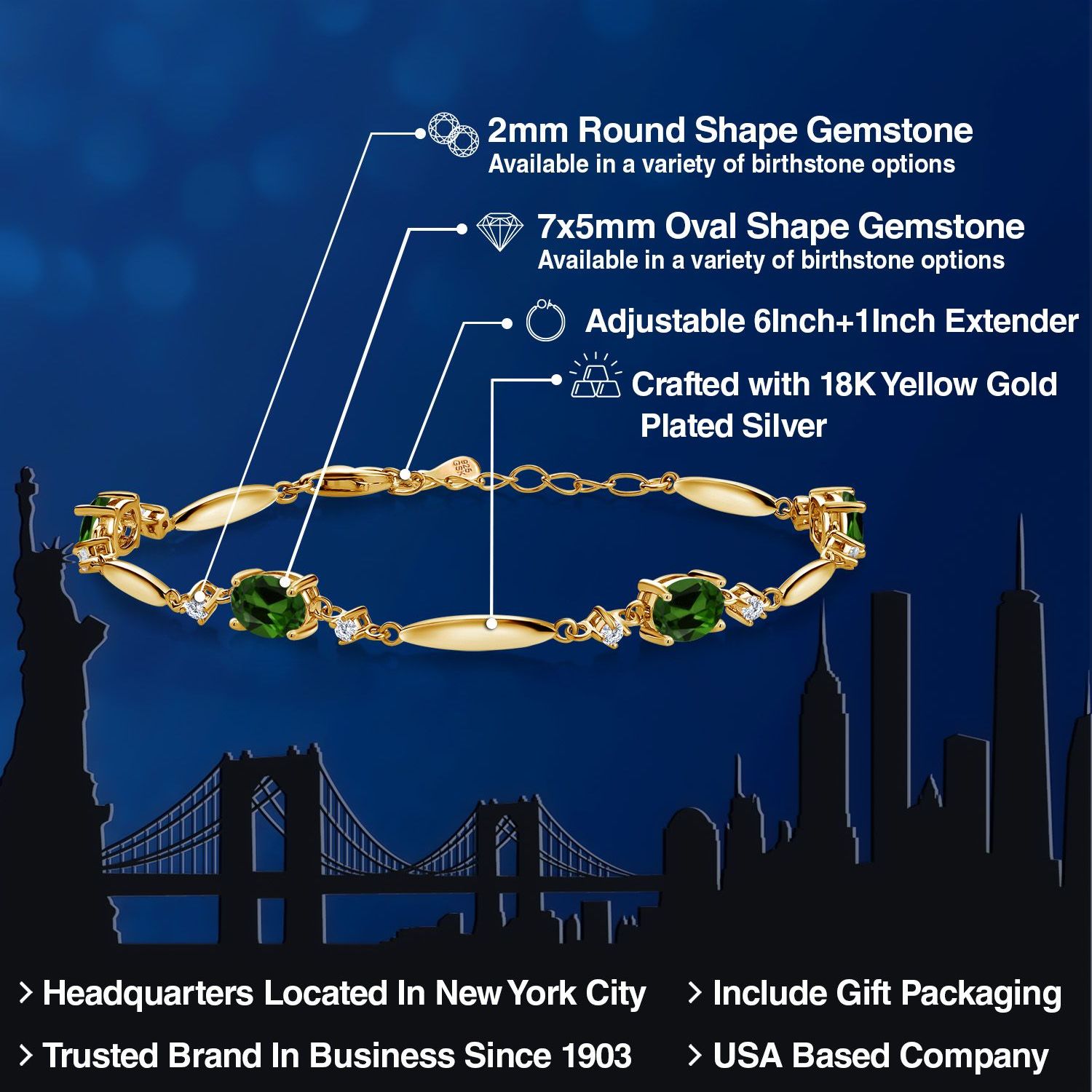 18K Yellow Gold Plated Silver Gemstone Birthstone and White Moissanite Tennis Bracelet For Women | Oval 7X5MM and 2MM | 6 Inch + 1 Inch Extender | Fine Jewelry for Her Mom Wife