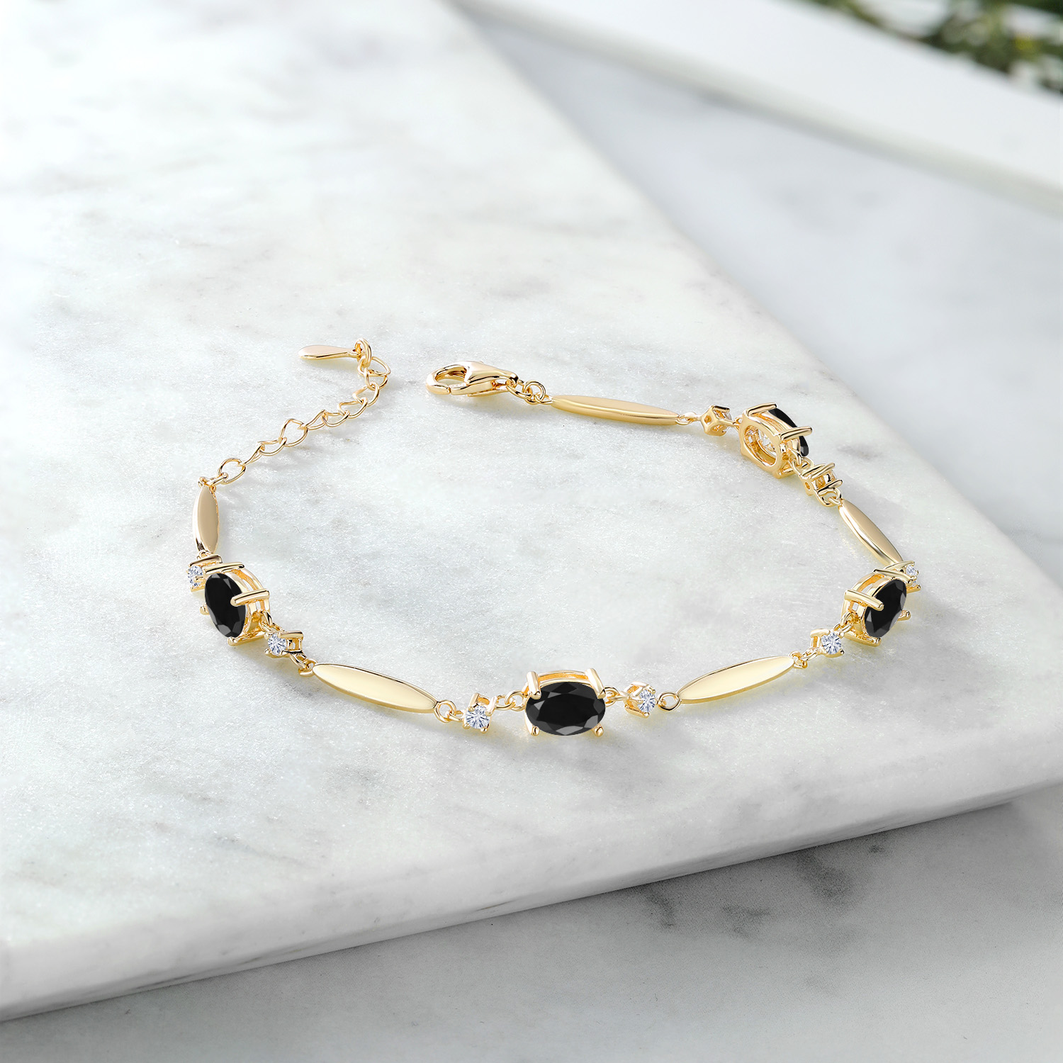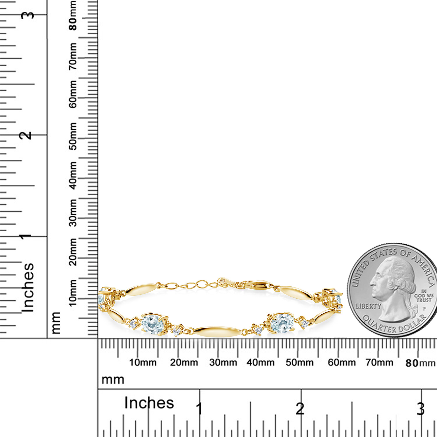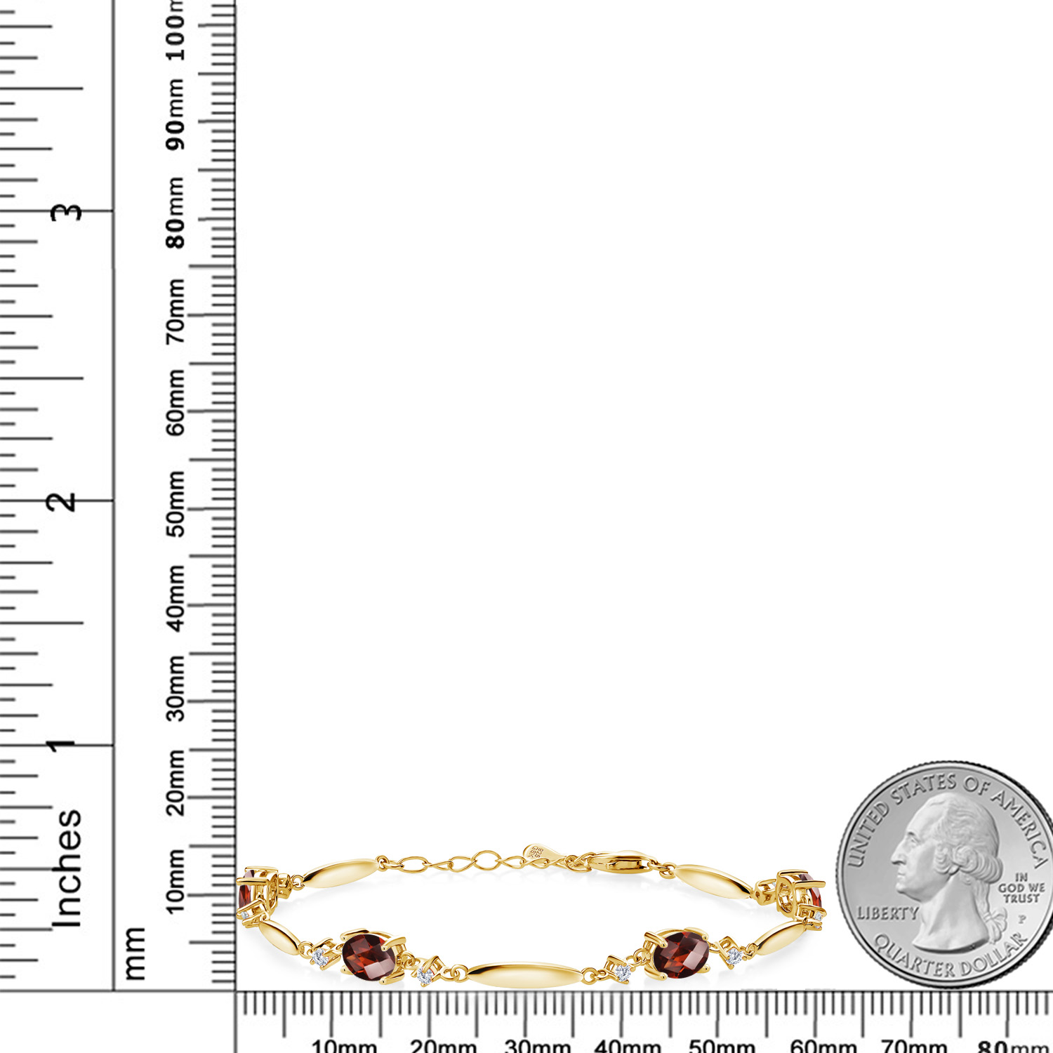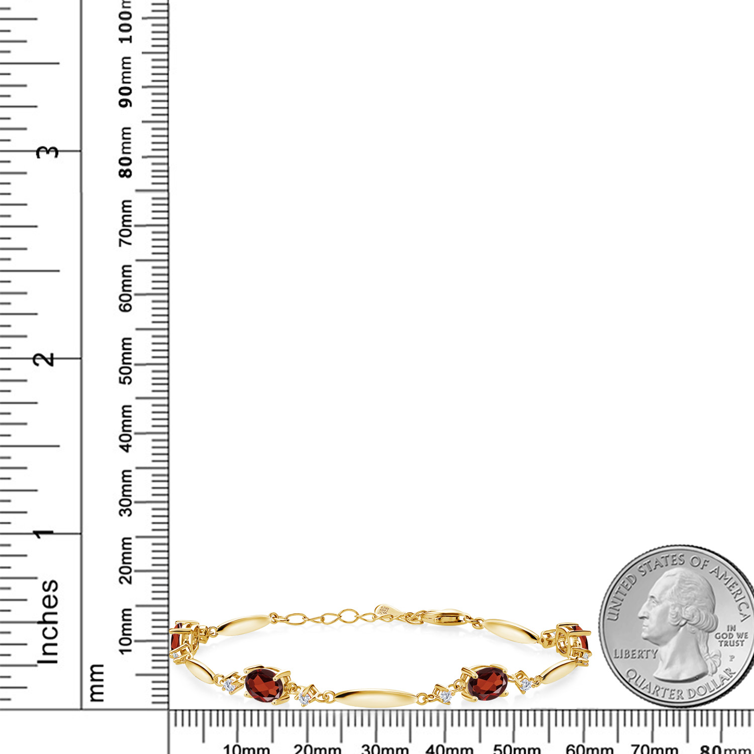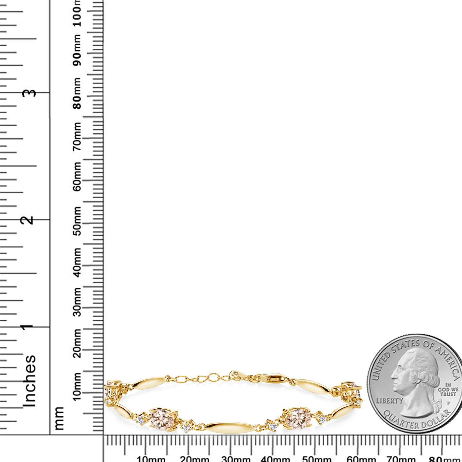 18K Yellow Gold Plated Silver Gemstone Birthstone and White Moissanite Tennis Bracelet For Women | Oval 7X5MM and 2MM | 6 Inch + 1 Inch Extender | Fine Jewelry for Her Mom Wife