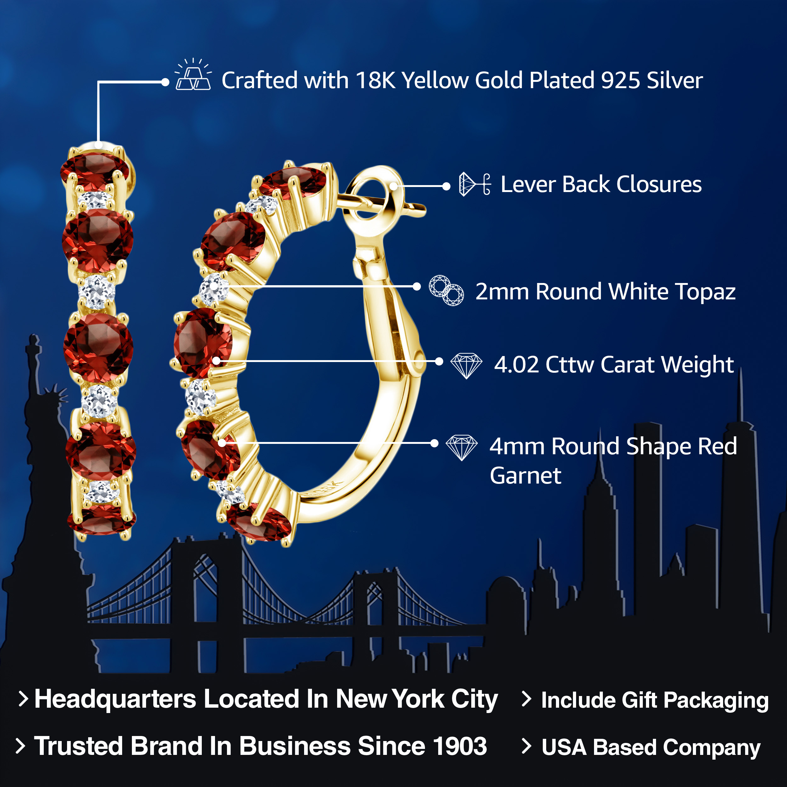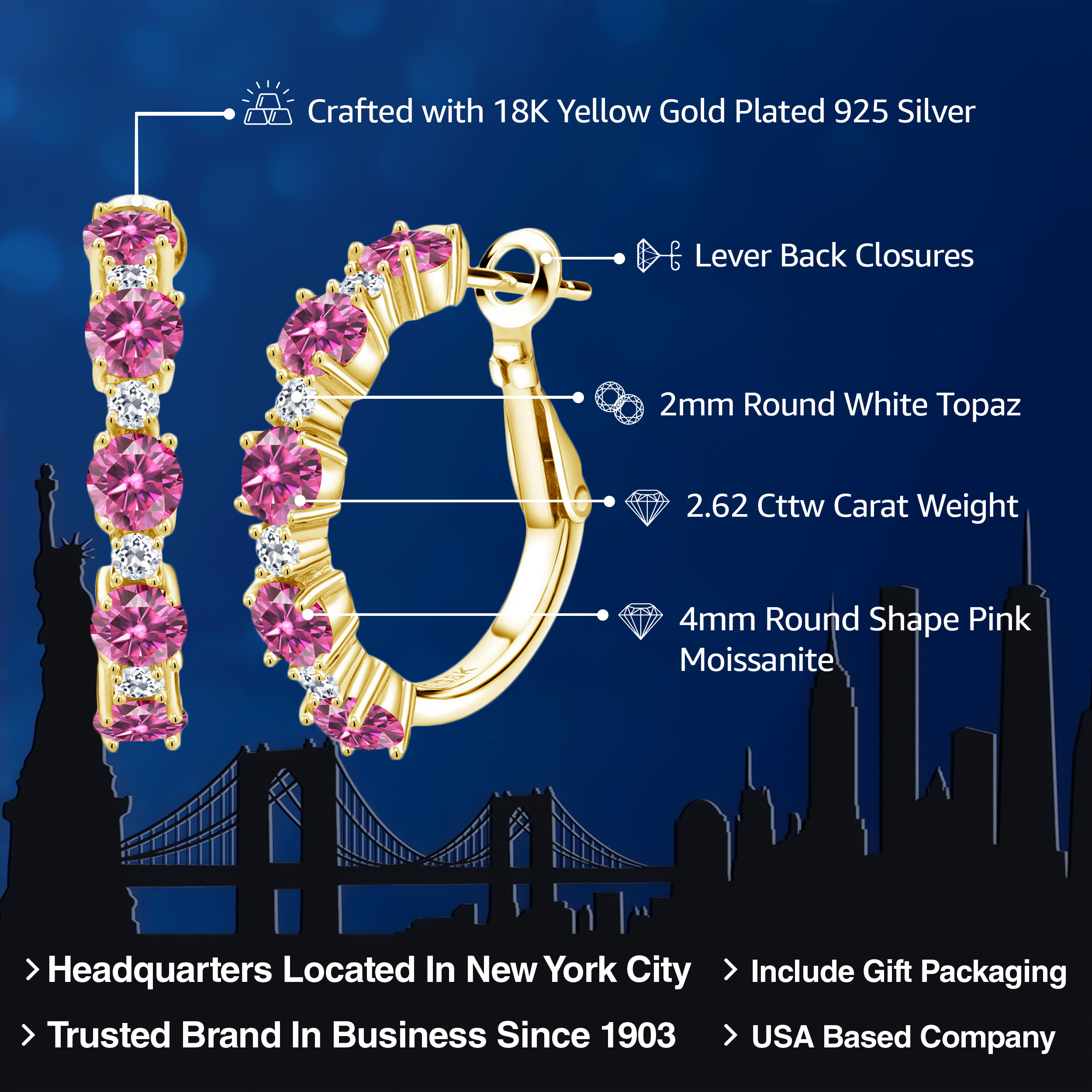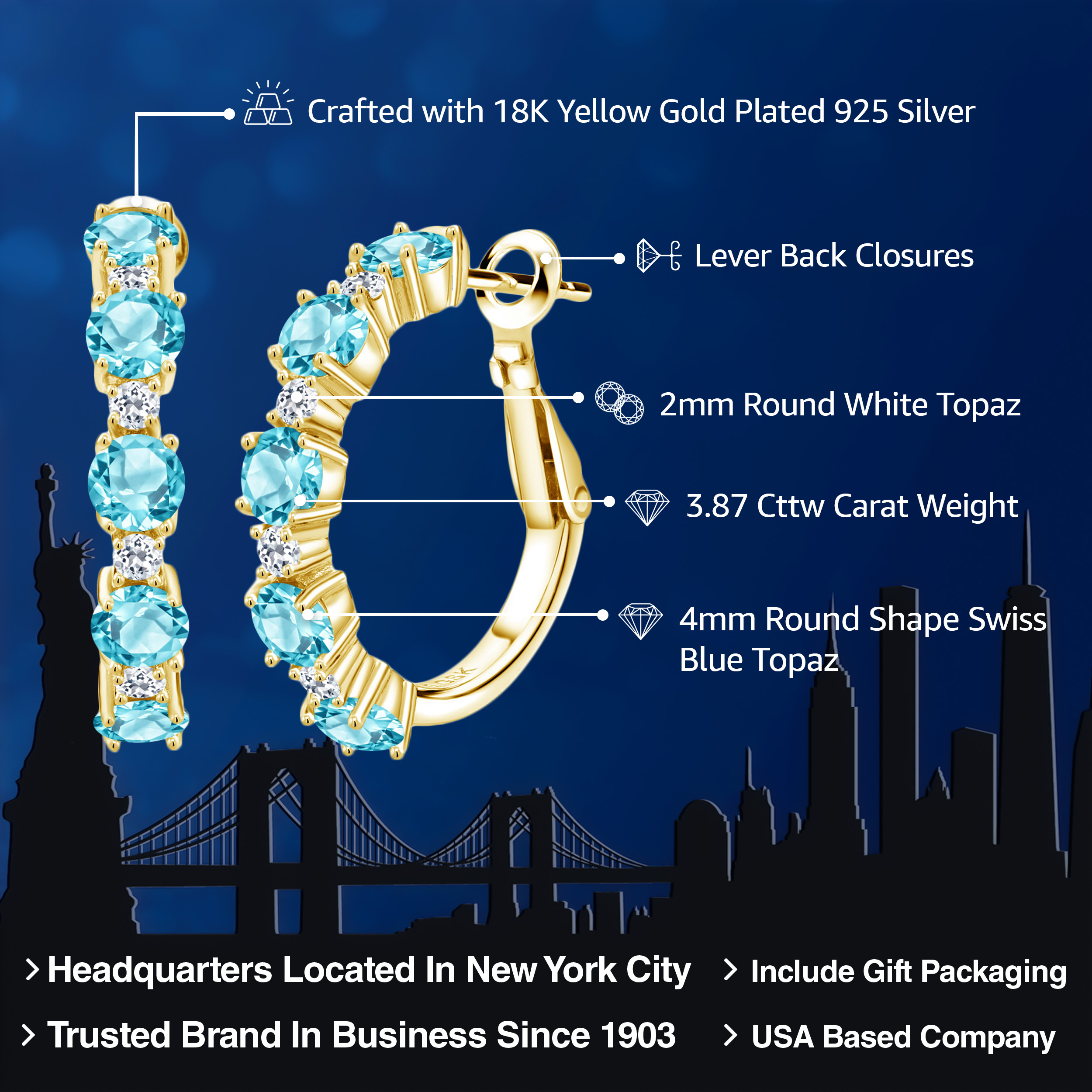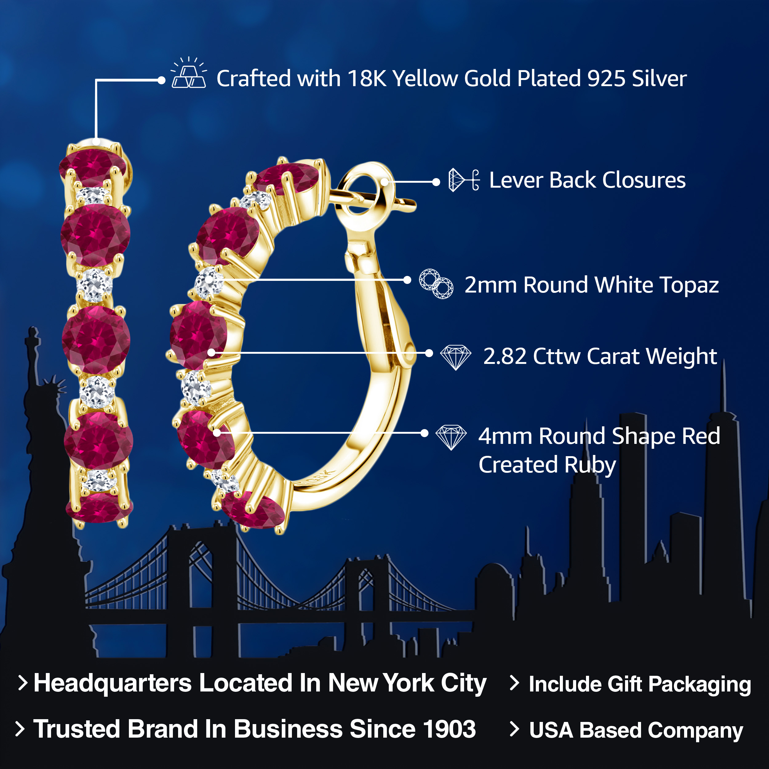 INTRICATE STYLE AND WHITE TOPAZ DETAILS: At the heart of these elegant 1-inch hoop earrings are 1.9MM white topaz stones that create a breath-taking accent to the main gemstones. Each stone is set in a secure, flawless channel setting that accents the boldness of the hoops. The skilled craftsmanship and attention to detail are evident, ensuring a perfect balance between sophisticated design and everyday functionality, making these earrings a standout piece in any jewelry collection.