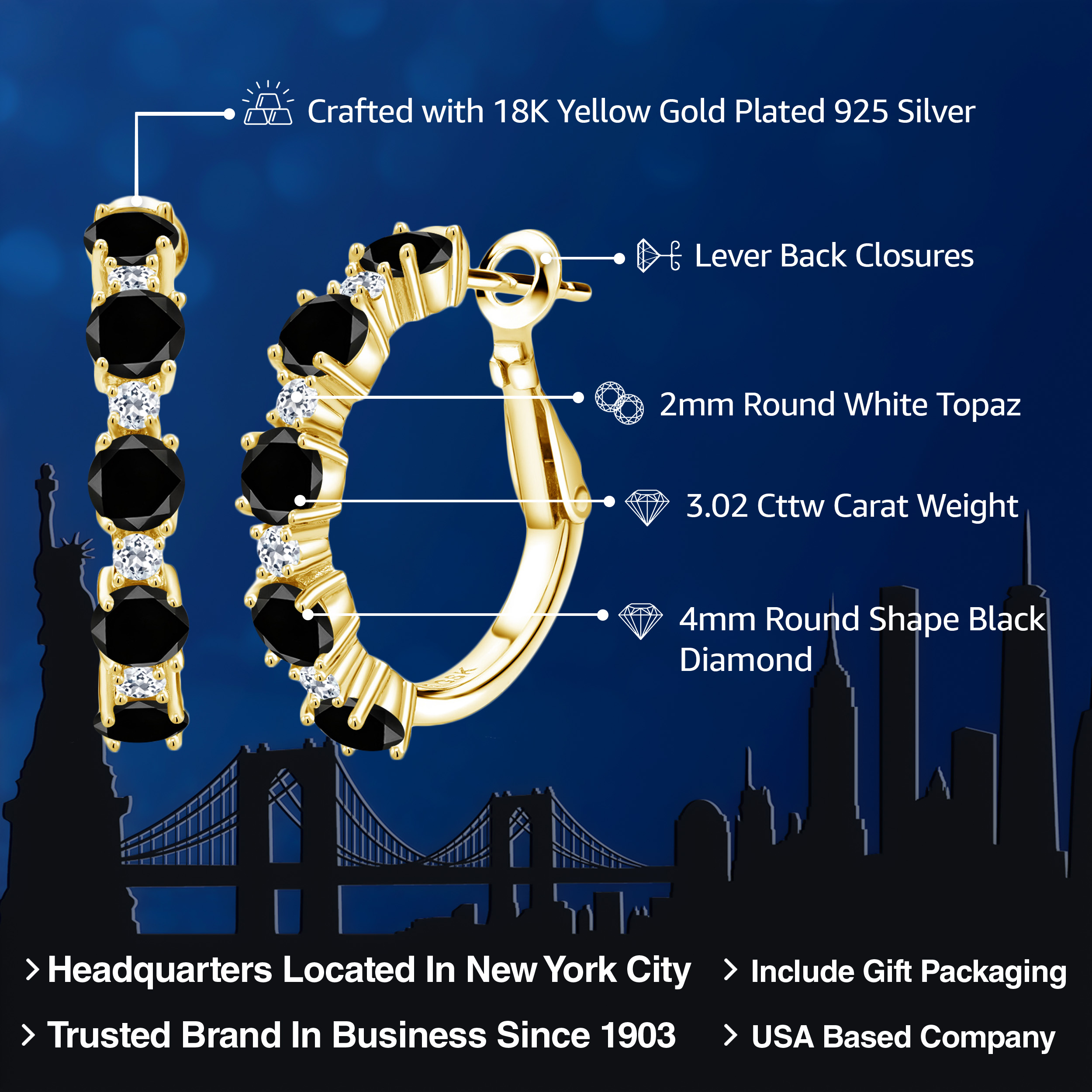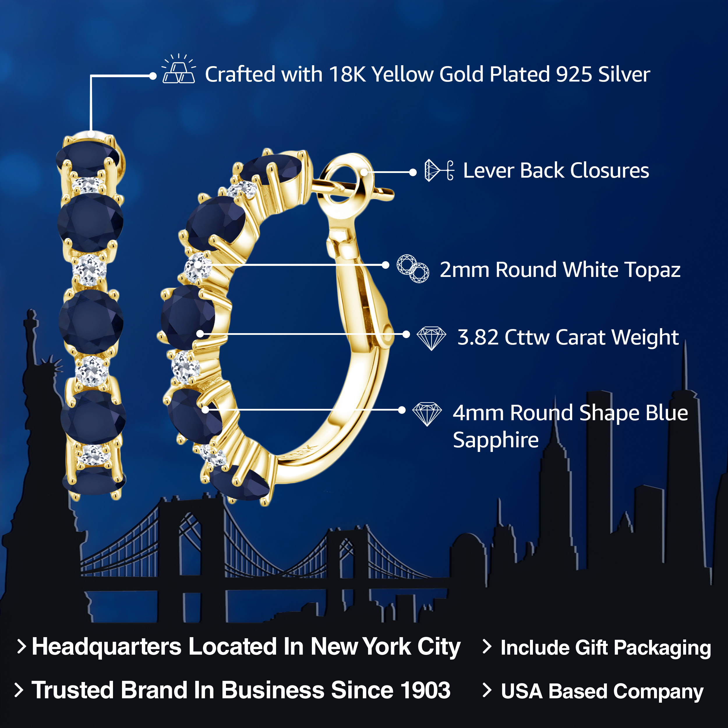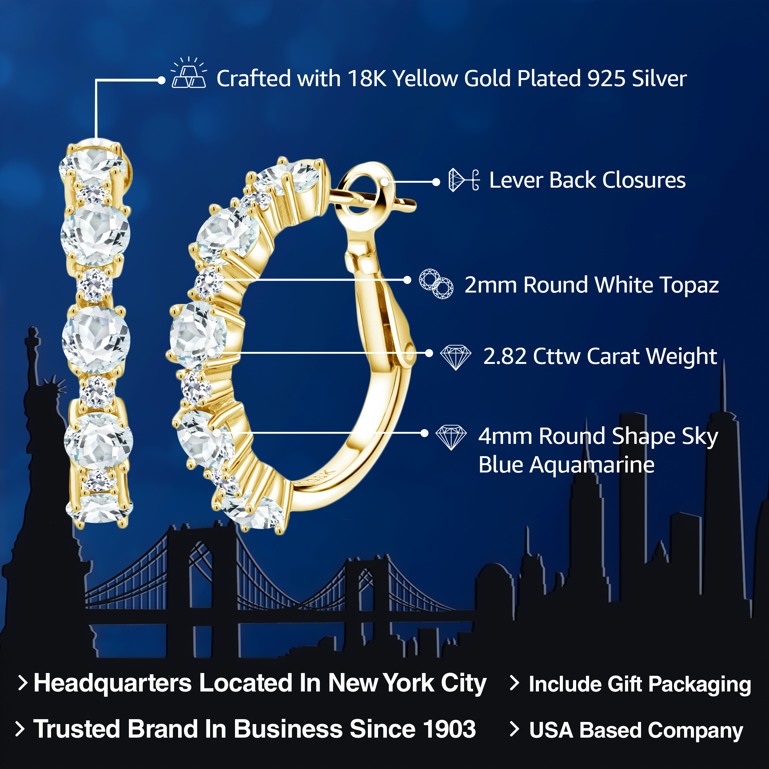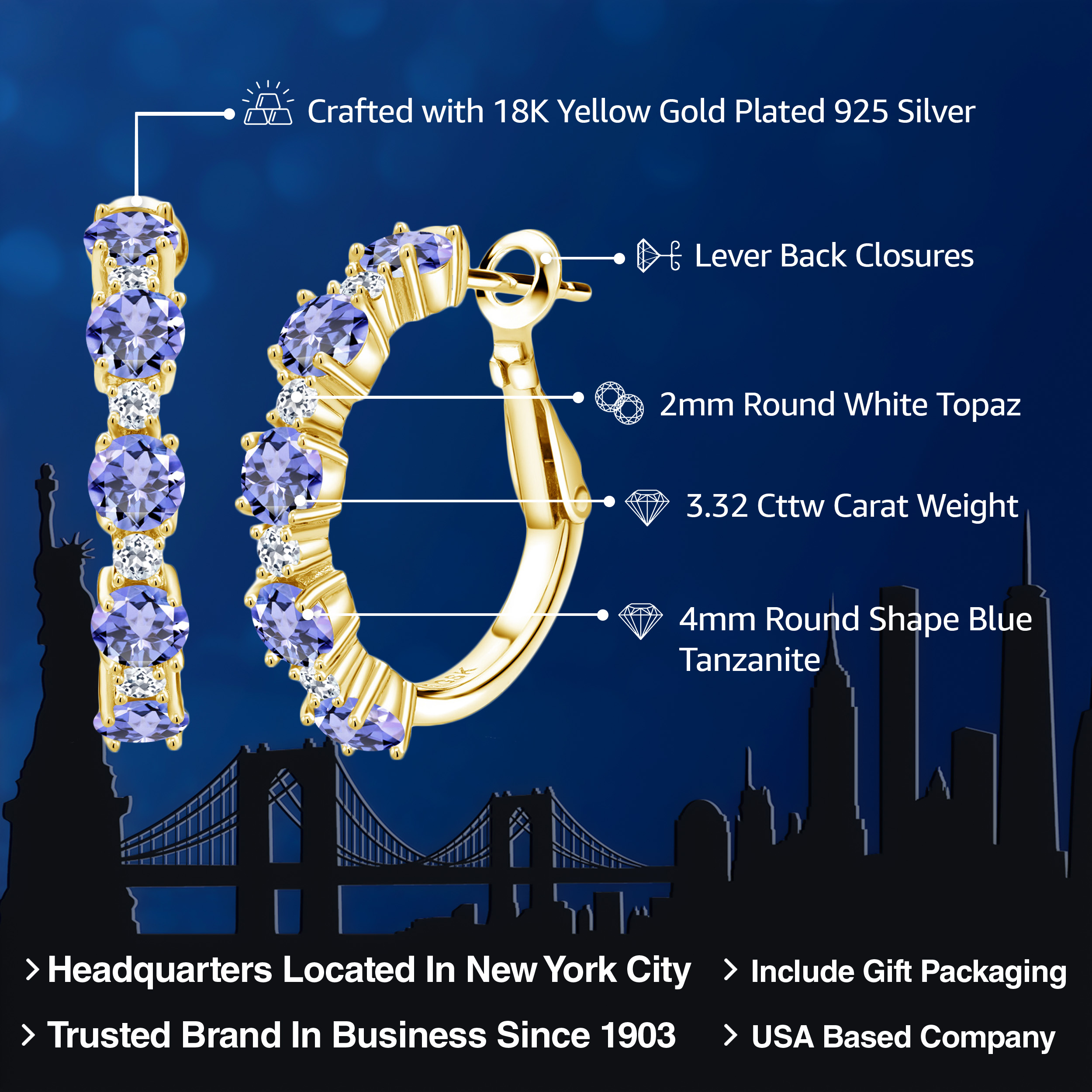 INTRICATE STYLE AND WHITE TOPAZ DETAILS: At the heart of these elegant 1-inch hoop earrings are 1.9MM white topaz stones that create a breath-taking accent to the main gemstones. Each stone is set in a secure, flawless channel setting that accents the boldness of the hoops. The skilled craftsmanship and attention to detail are evident, ensuring a perfect balance between sophisticated design and everyday functionality, making these earrings a standout piece in any jewelry collection.