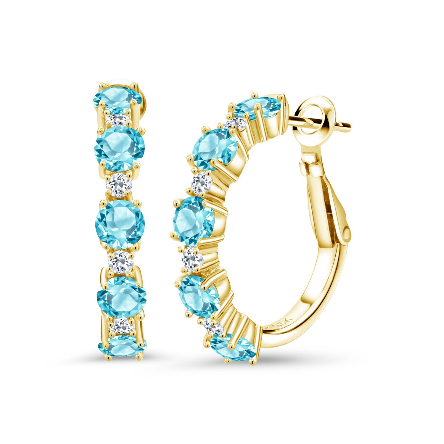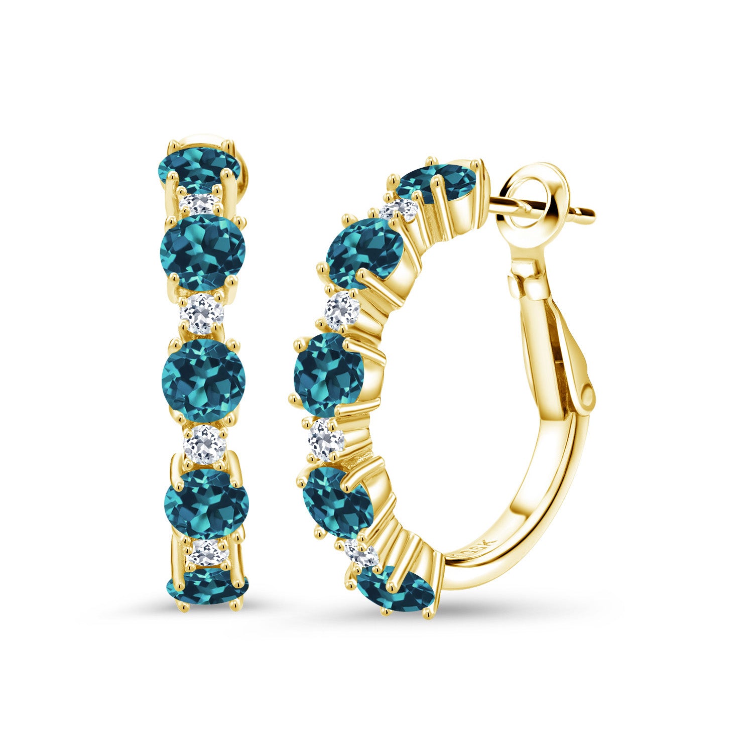 INTRICATE STYLE AND WHITE TOPAZ DETAILS: At the heart of these elegant 1-inch hoop earrings are 1.9MM white topaz stones that create a breath-taking accent to the main gemstones. Each stone is set in a secure, flawless channel setting that accents the boldness of the hoops. The skilled craftsmanship and attention to detail are evident, ensuring a perfect balance between sophisticated design and everyday functionality, making these earrings a standout piece in any jewelry collection.