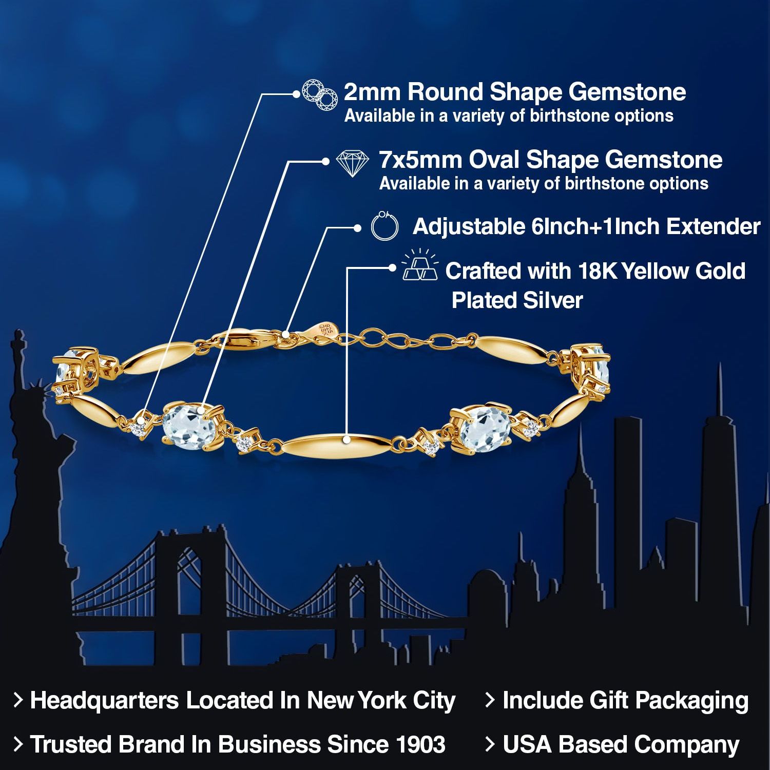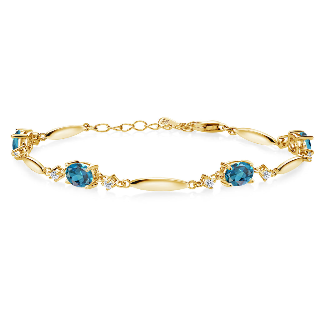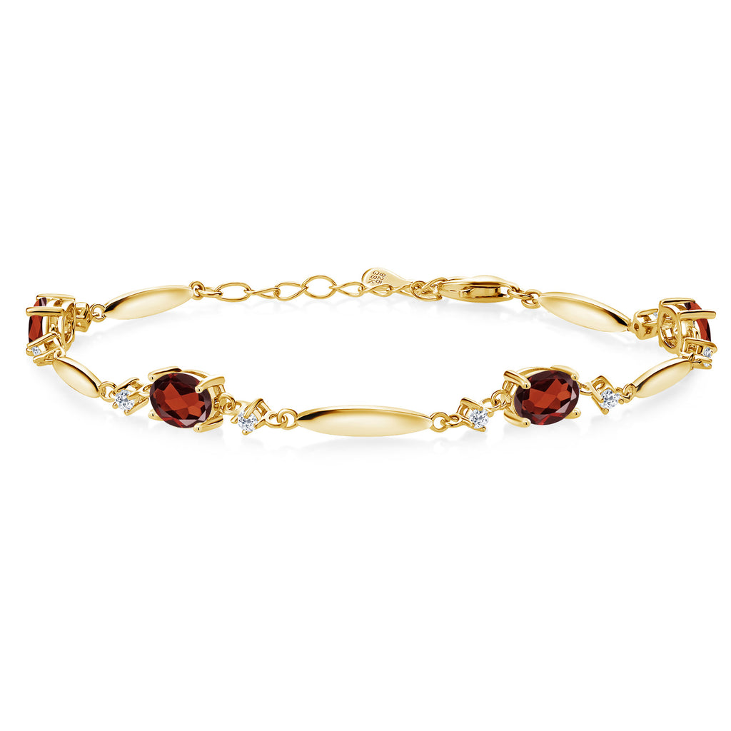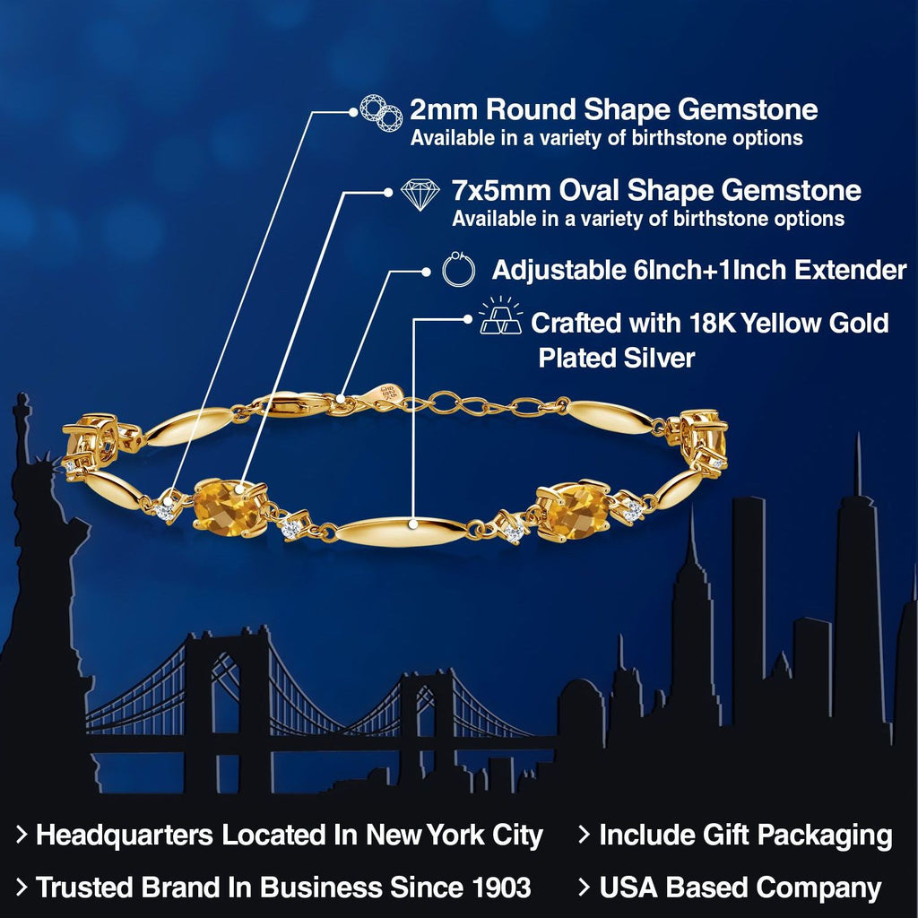 3-5 Cttw Gemstone Birthstone and White Topaz Tennis Bracelet For Women | 18K Yellow Gold Plated Silver | Oval 7X5MM and 2MM | 6 Inch + 1 Inch Extender | Fine Jewelry for Her Mom Wife