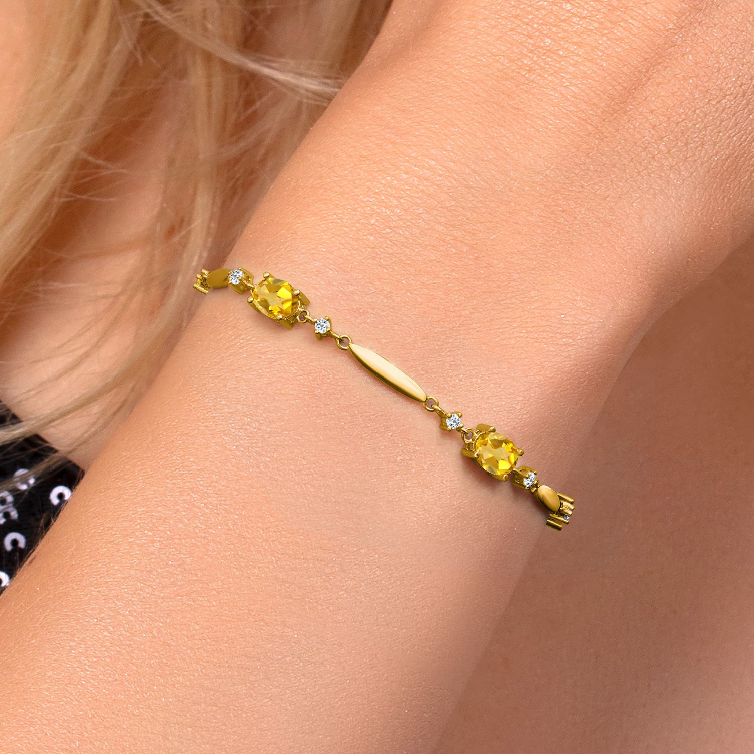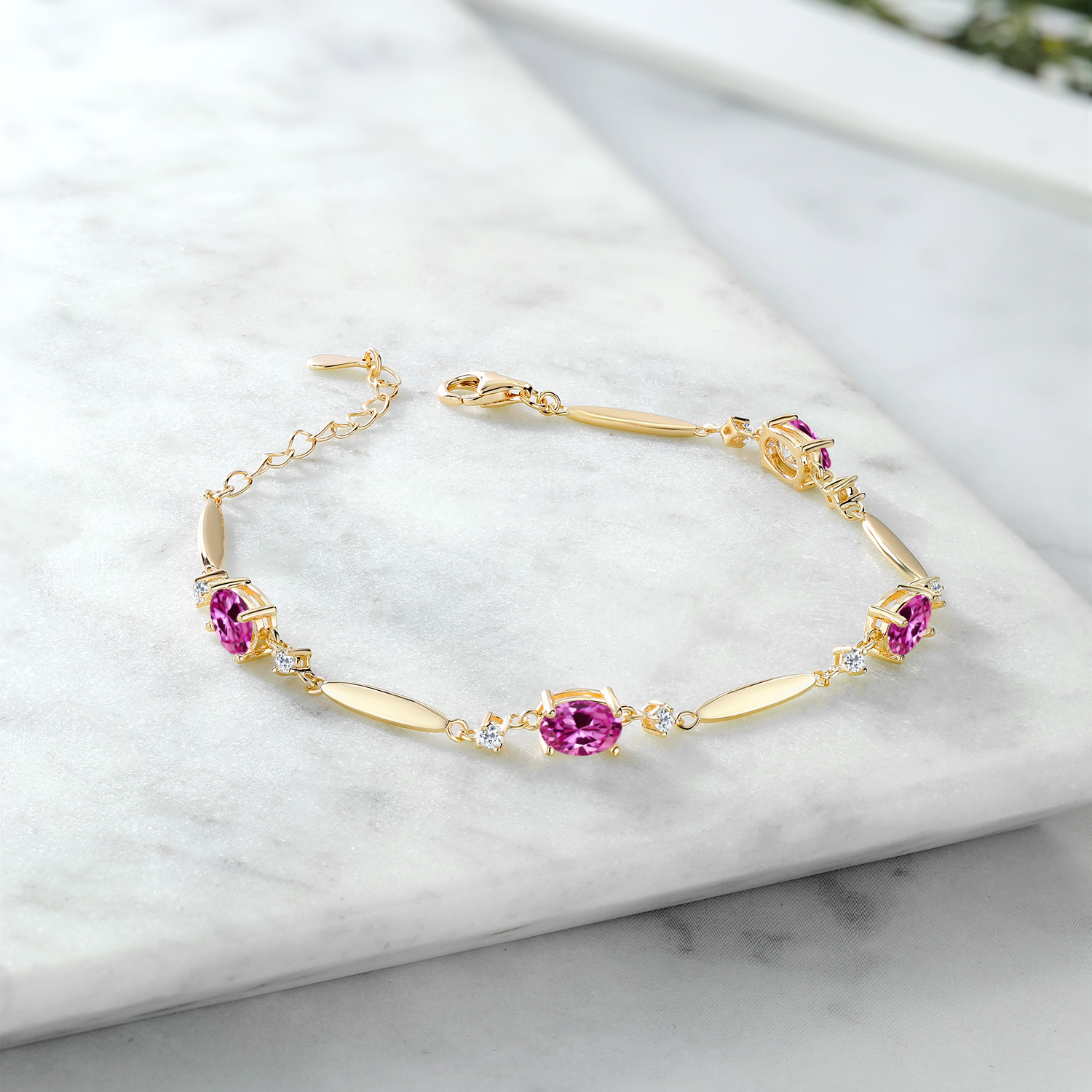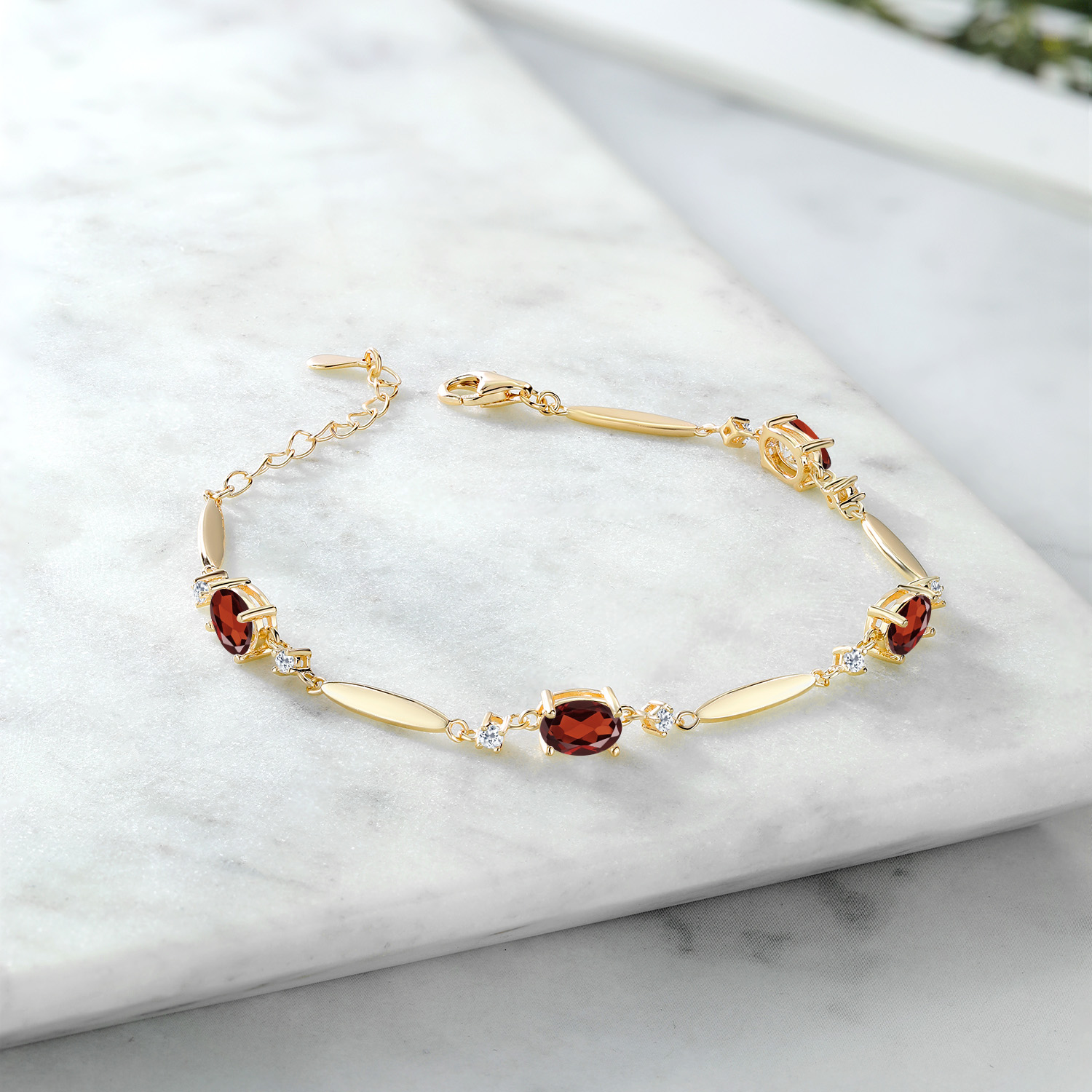 3-5 Cttw Gemstone Birthstone and White Topaz Tennis Bracelet For Women | 18K Yellow Gold Plated Silver | Oval 7X5MM and 2MM | 6 Inch + 1 Inch Extender | Fine Jewelry for Her Mom Wife