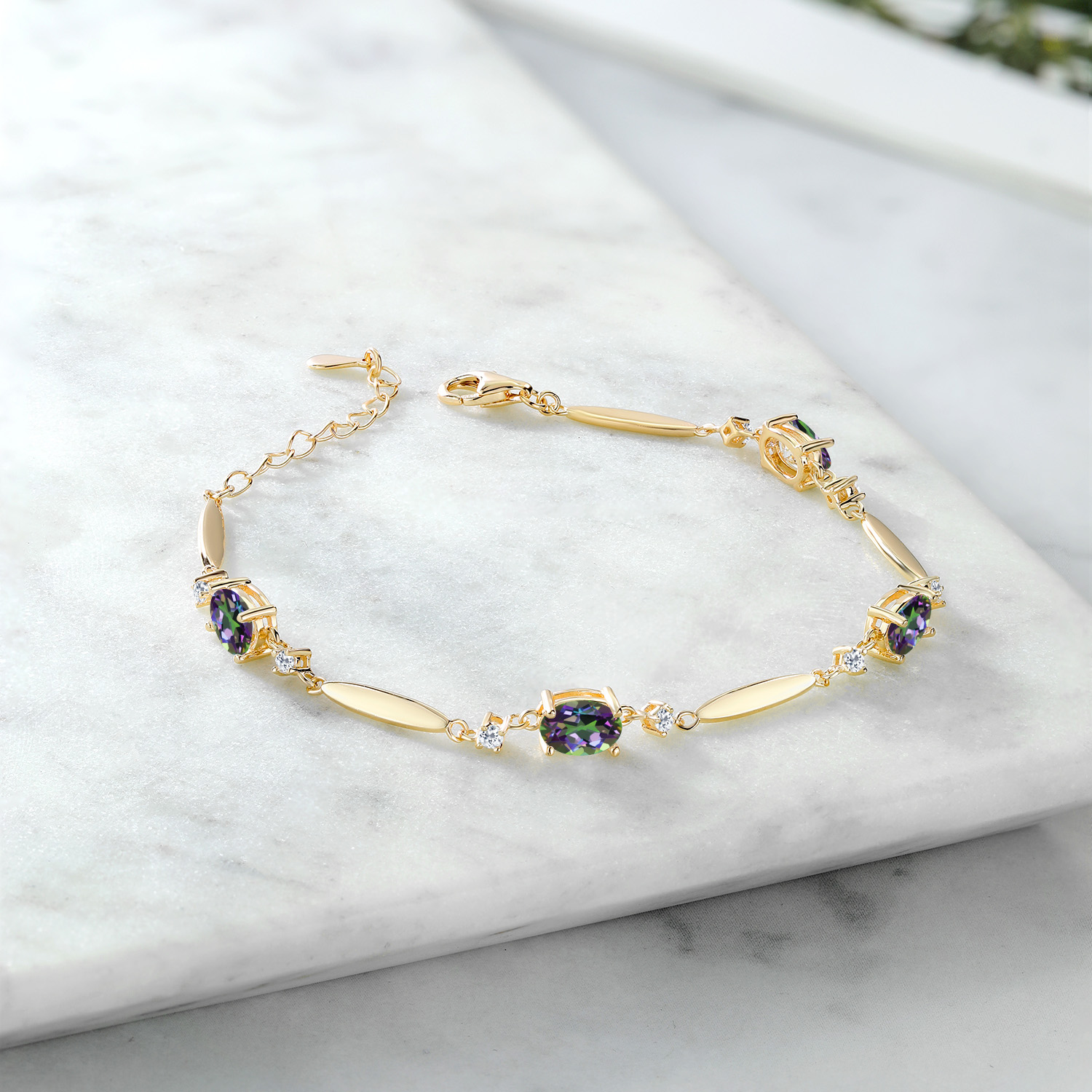 ELEGANT DESIGN WITH WHITE TOPAZ ACCENTS: The bracelet's sophisticated design is complemented by 2MM white topaz accents, adding a touch of sparkle and refinement. Each stone is meticulously set to highlight the main gemstones, creating a harmonious blend of color and brilliance. The craftsmanship reflects an attention to detail that ensures each piece is not only visually stunning but also a testament to skilled artistry and timeless style.