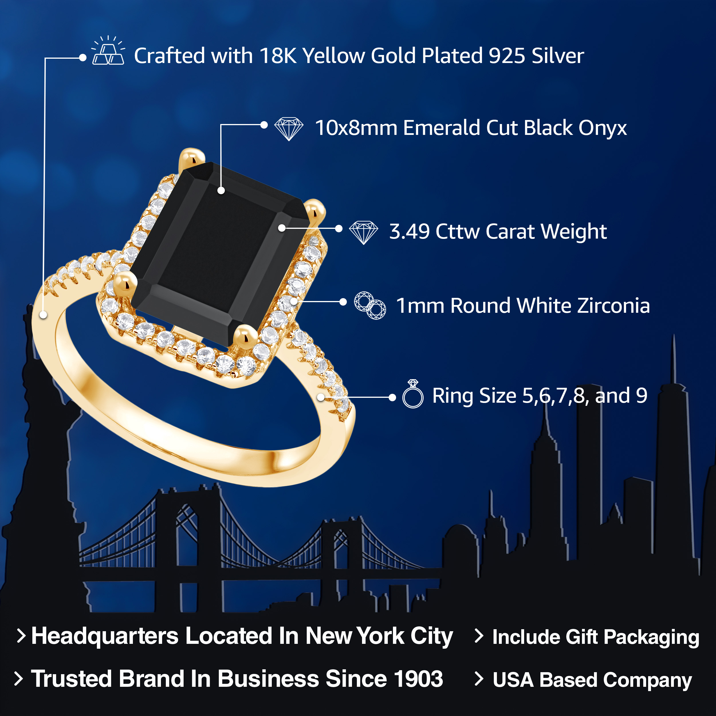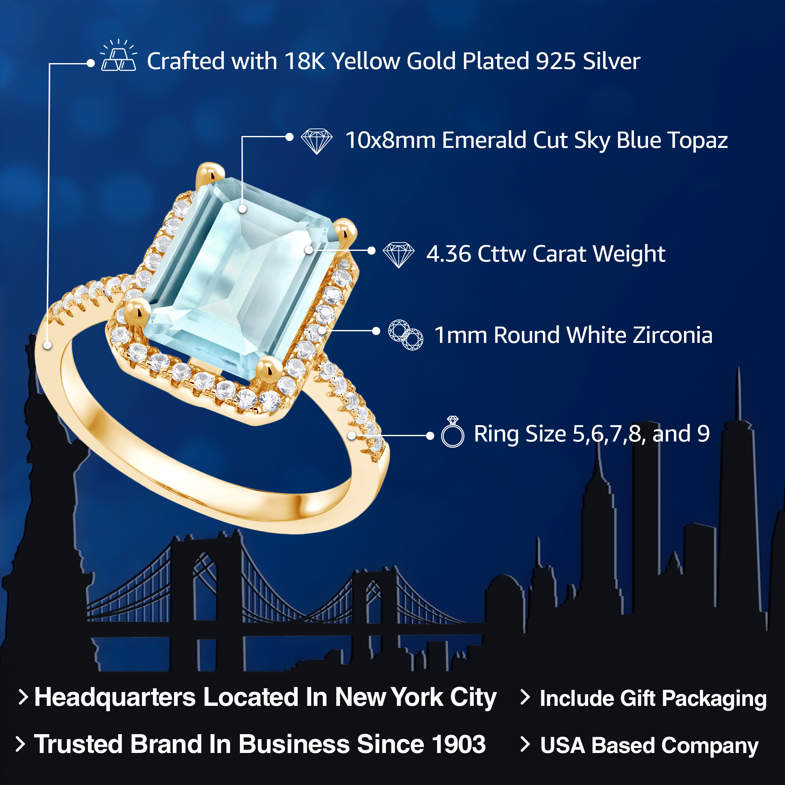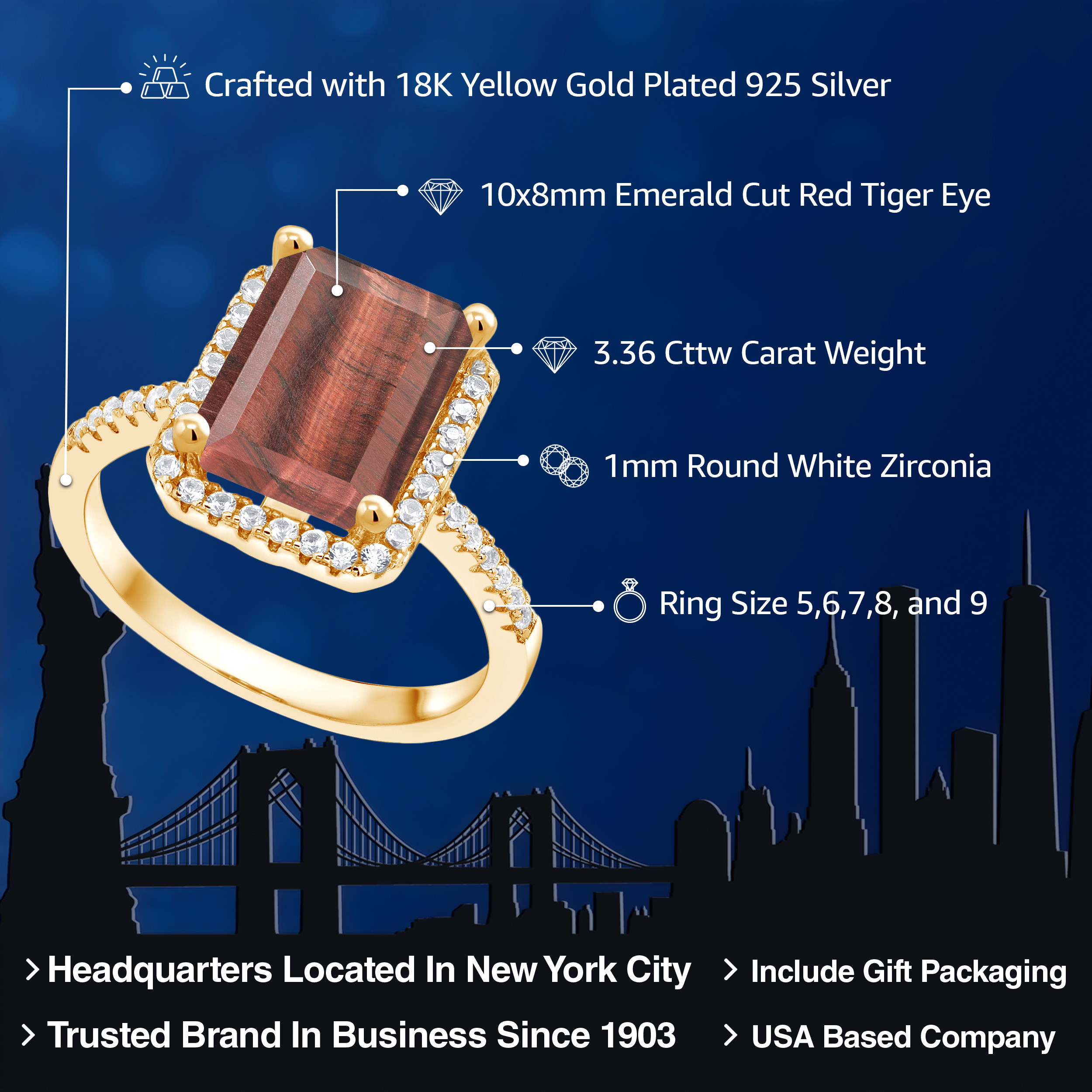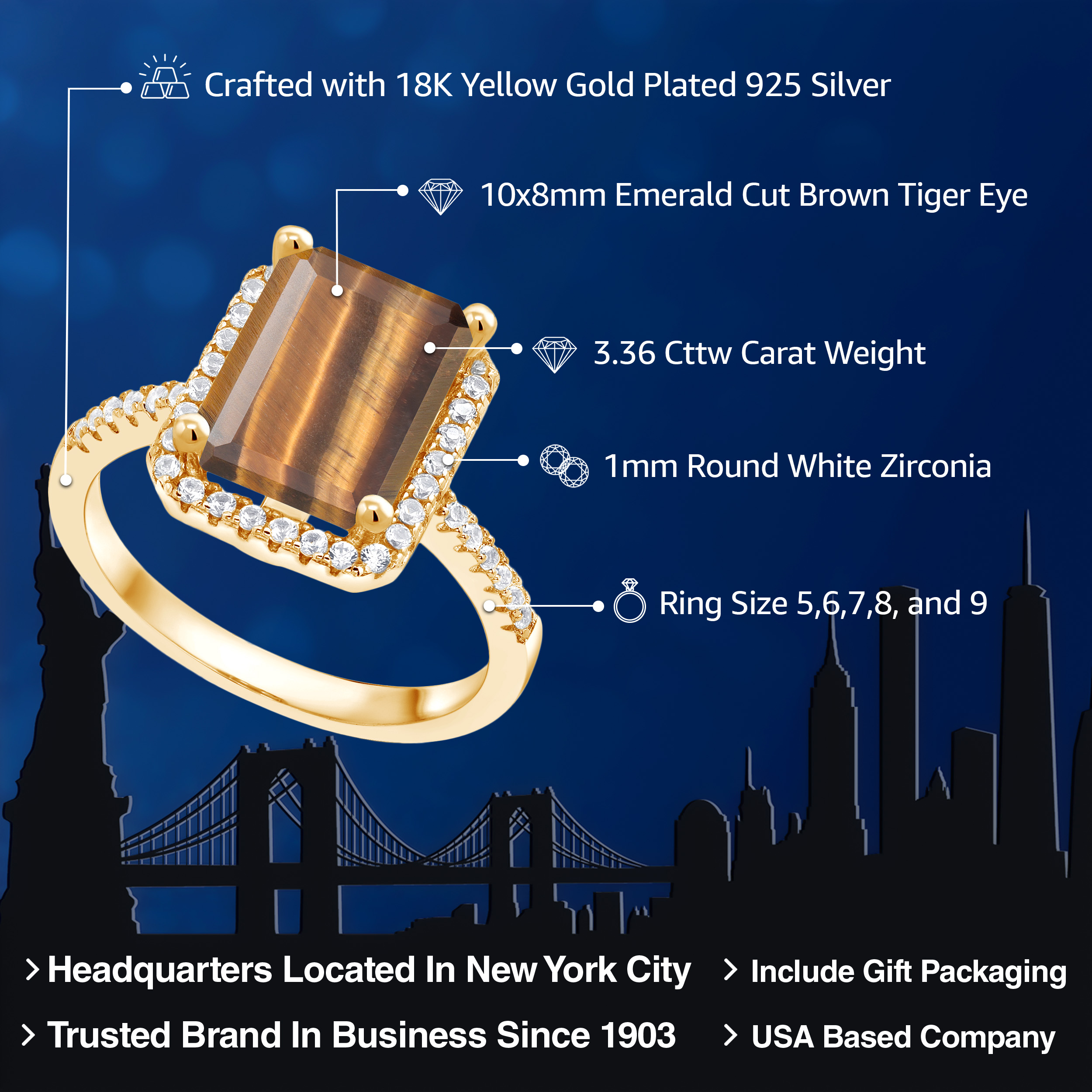 18K Yellow Gold Plated Silver Gemstone Birthstone Engagement Ring | Emerald Cut 10X8MM | Wedding Engagement Anniversary Promise Ring For Women | Available In Size 5, 6, 7, 8, 9