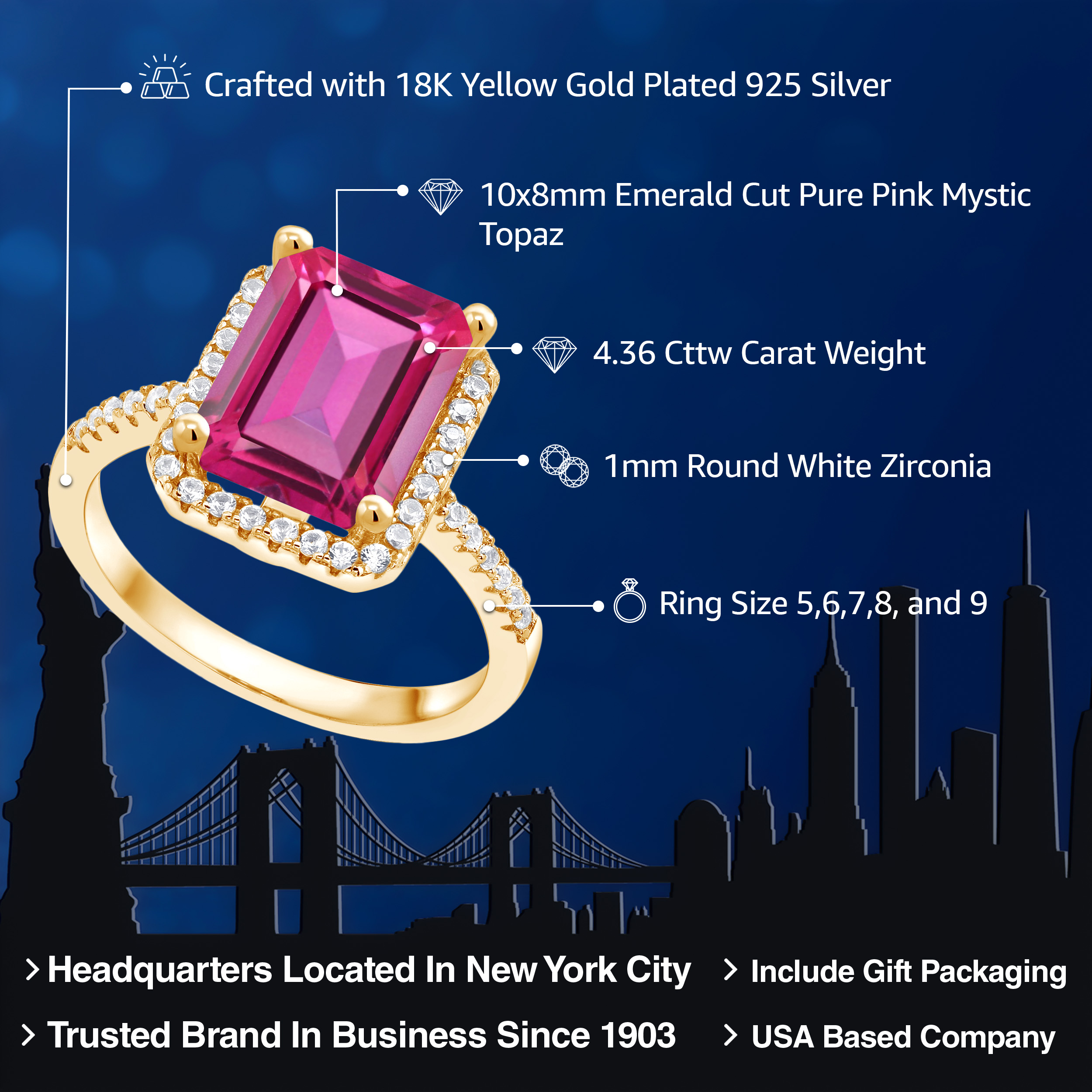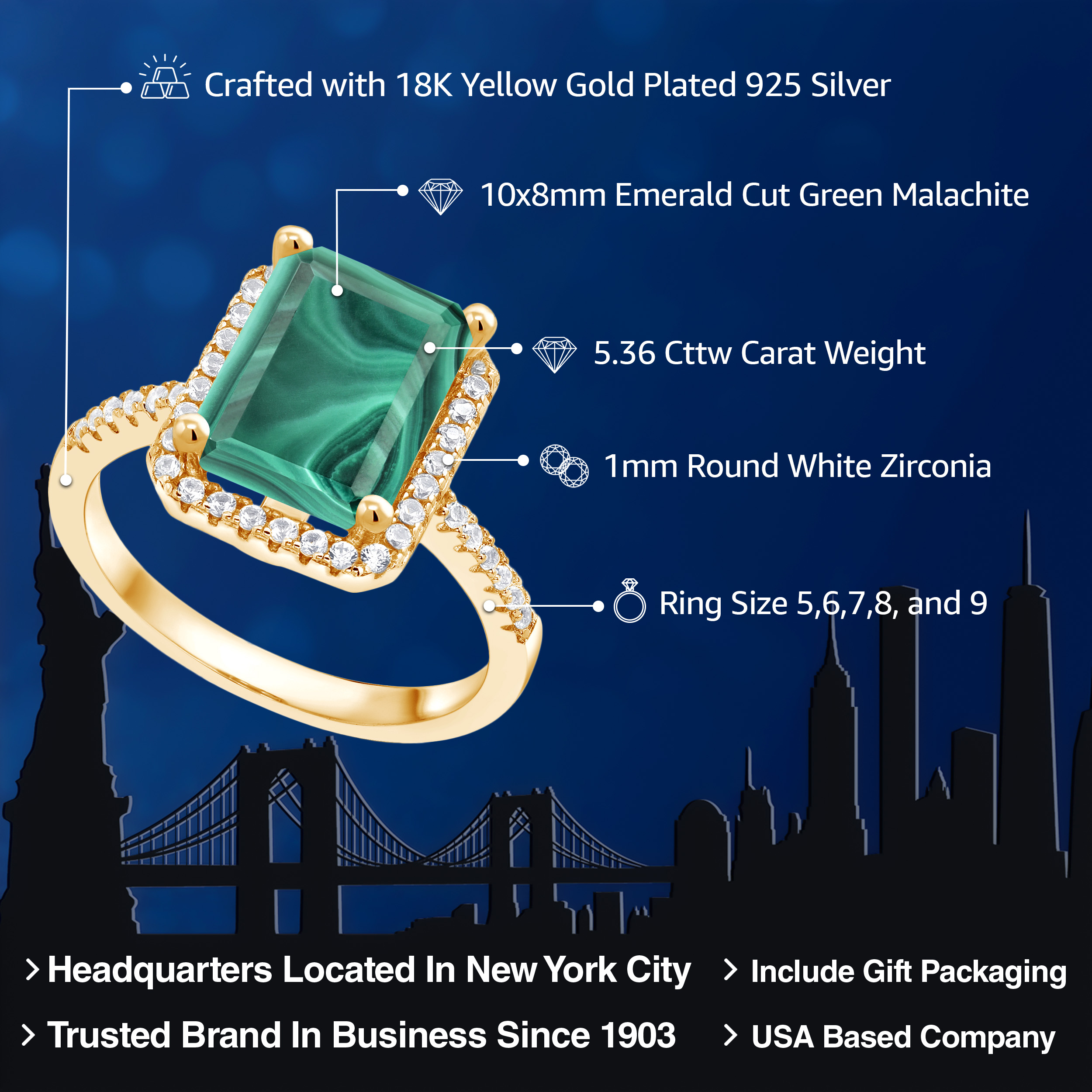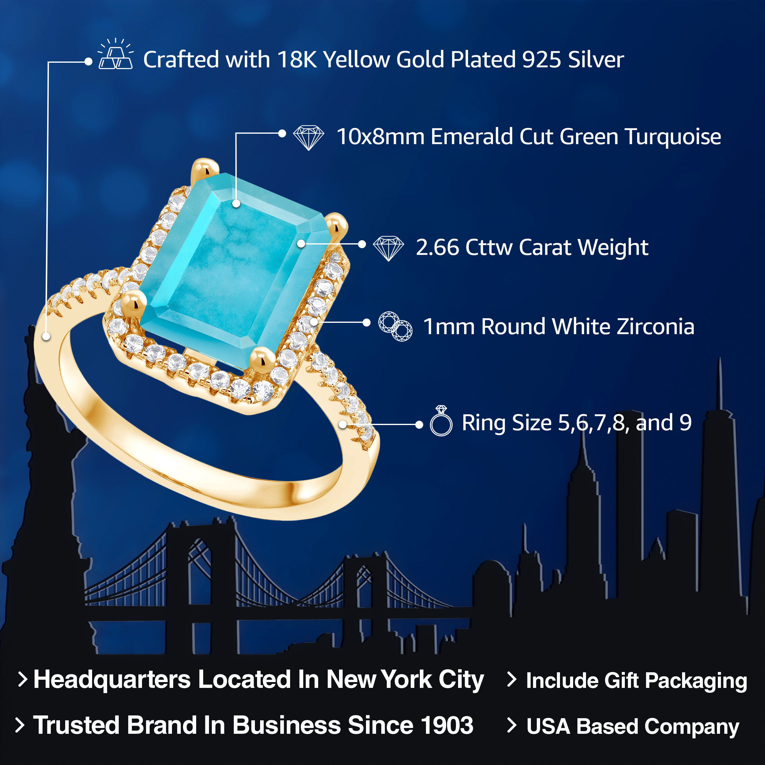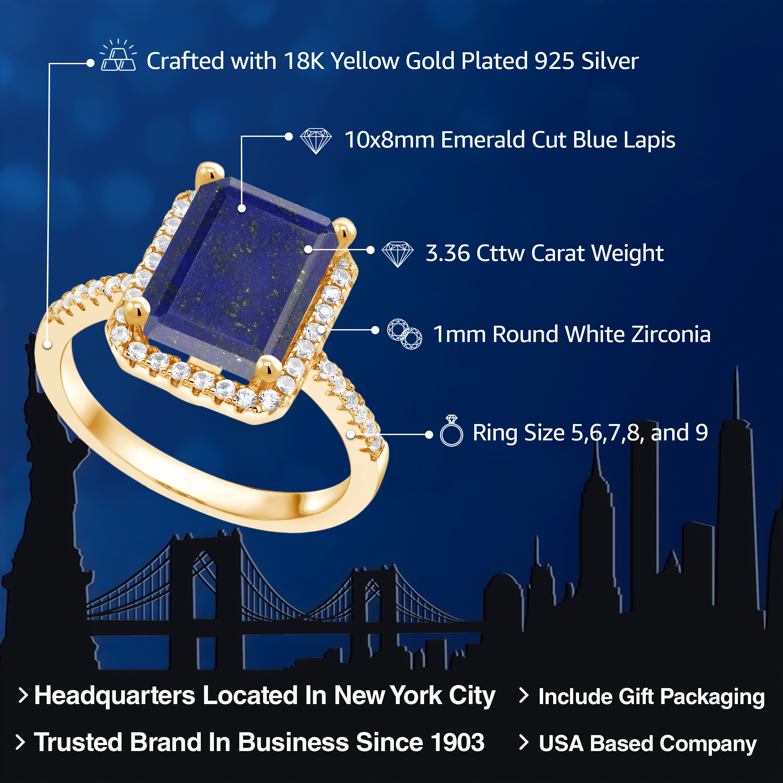 18K Yellow Gold Plated Silver Gemstone Birthstone Engagement Ring | Emerald Cut 10X8MM | Wedding Engagement Anniversary Promise Ring For Women | Available In Size 5, 6, 7, 8, 9