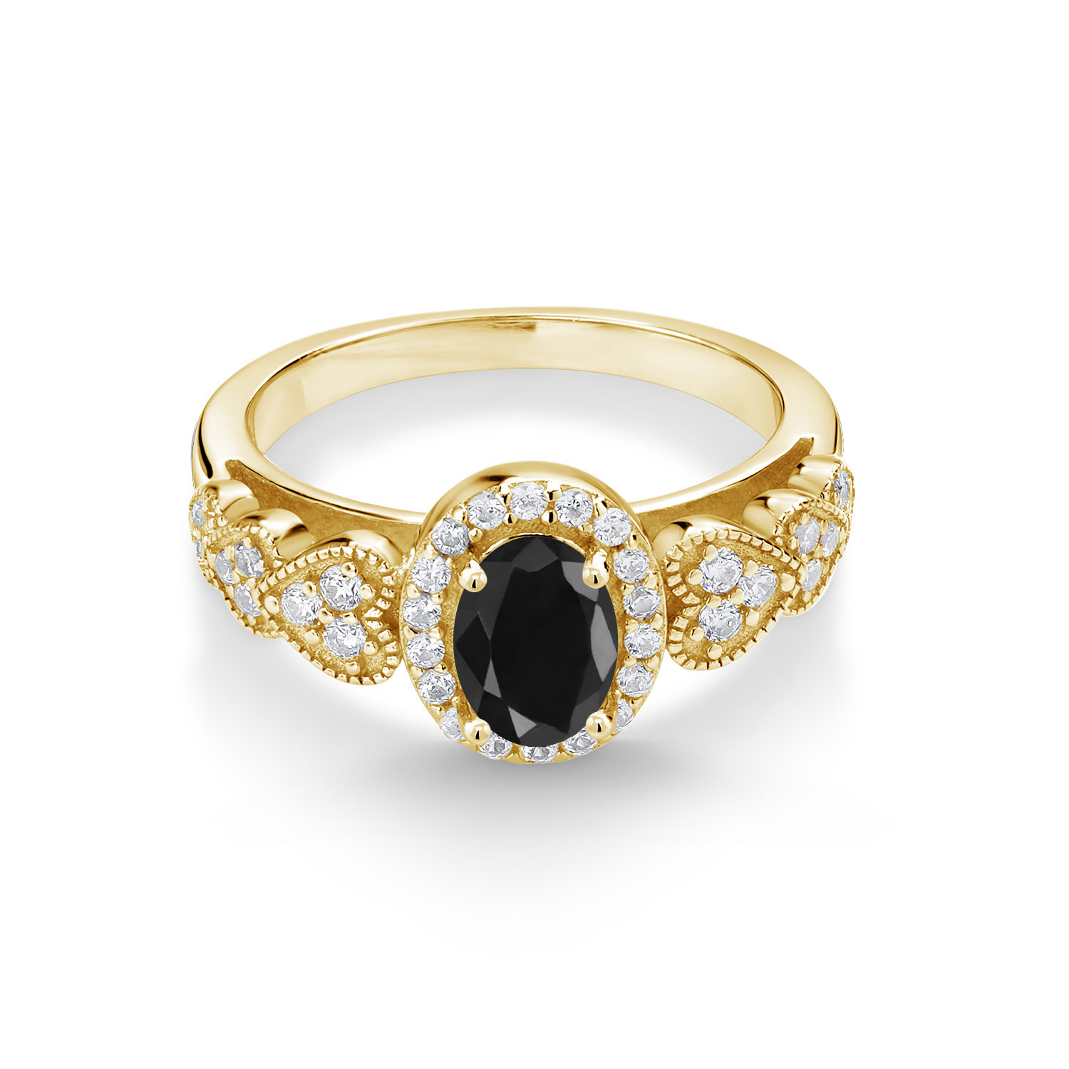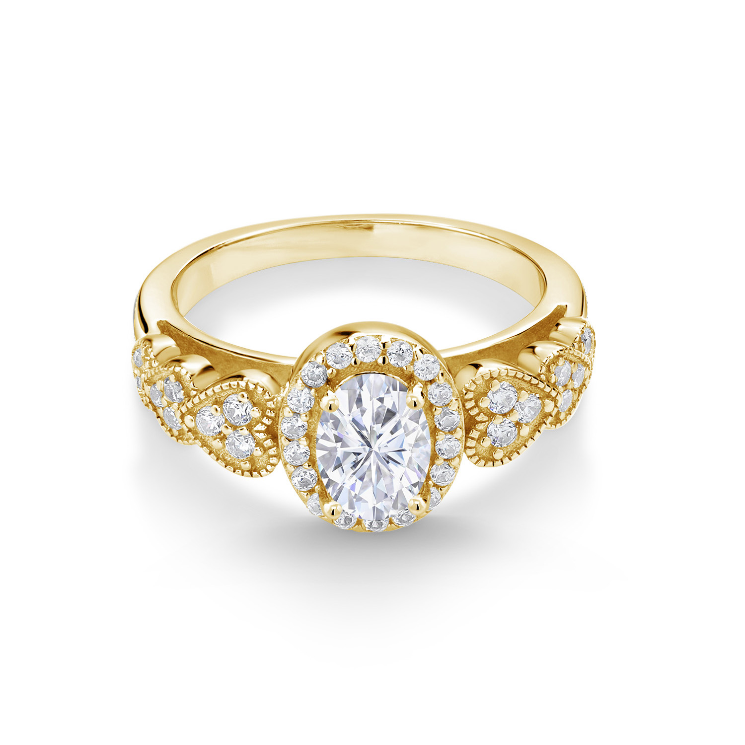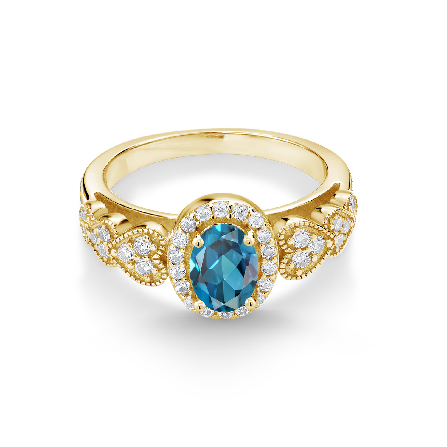 18K Yellow Gold Plated Silver Gemstone Birthstone Halo Engagement Ring for Women | Oval 7X5MM with White Accent Stones | Fine Wedding Anniversary Promise Ring | Sizes 5, 6, 7, 8, 9