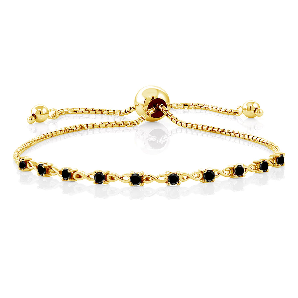 18K Yellow Gold Plated Silver Gemstone Birthstone Infinity Tennis Bracelet For Women | Round 2.5MM | Adjustable Bolo Bracelet Up to 9 Inch | Easy-On Easy-Off