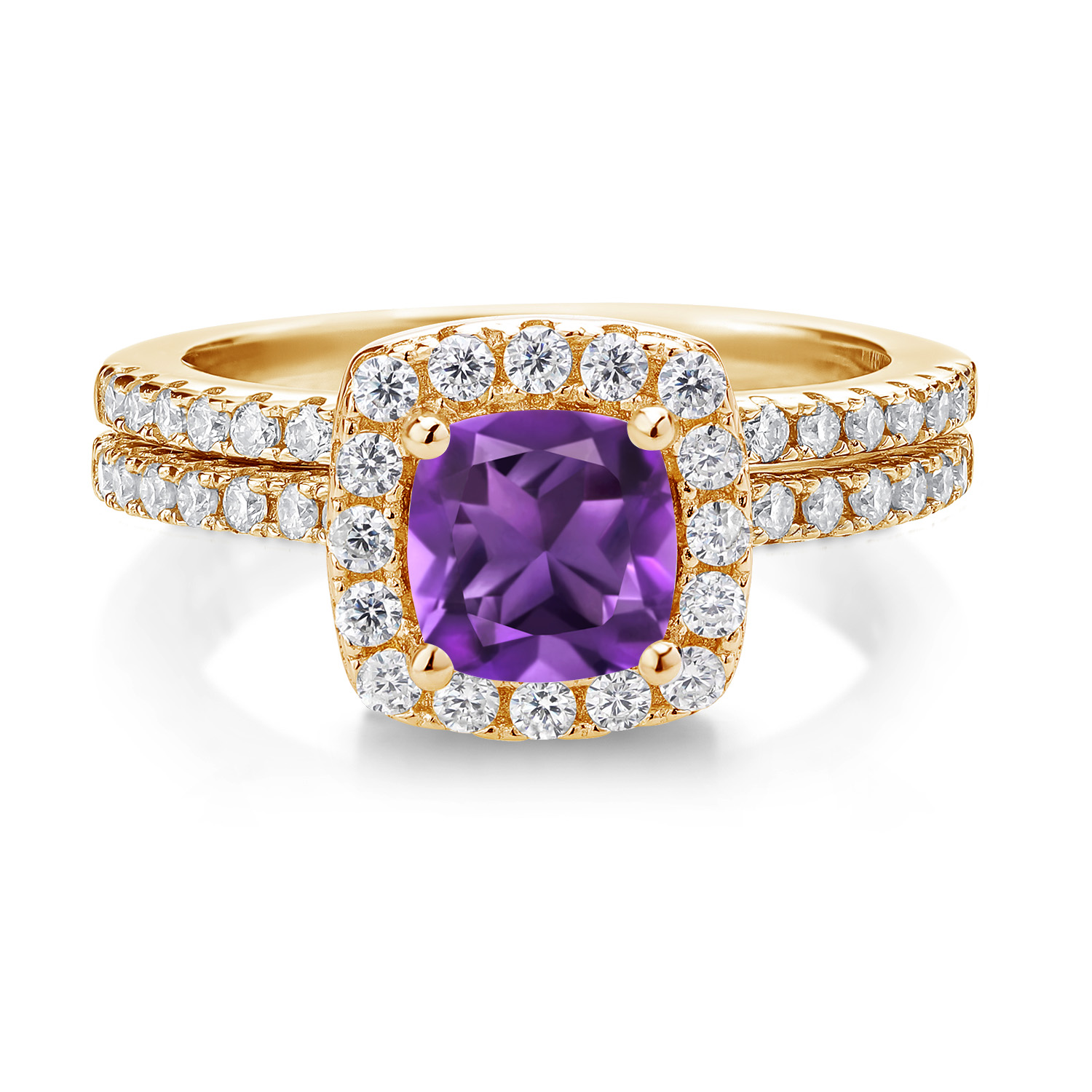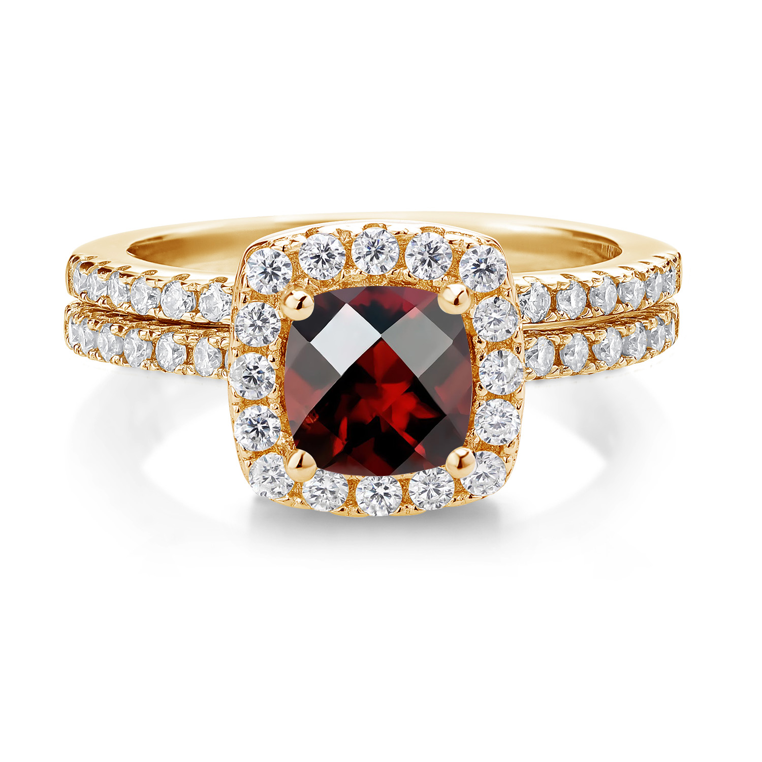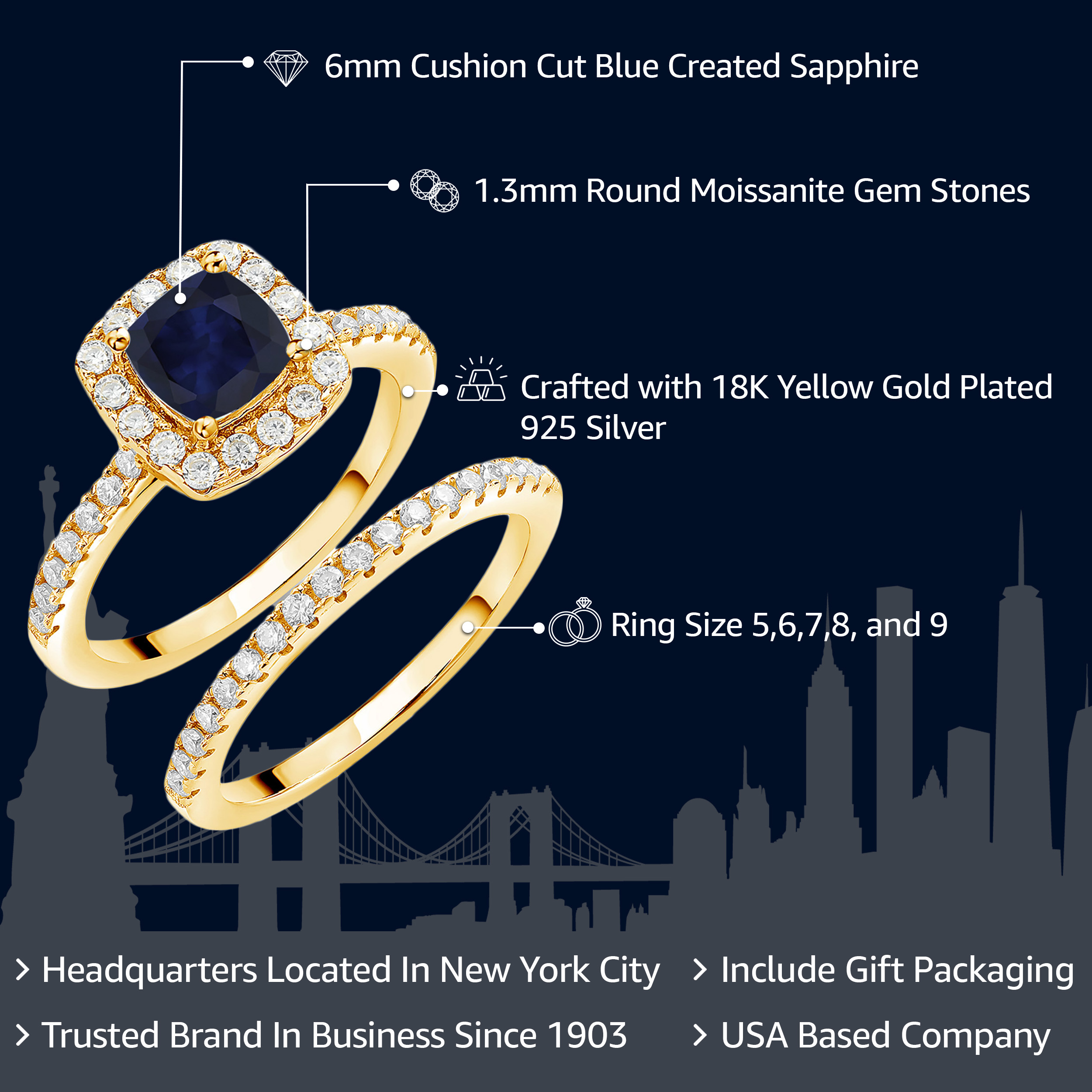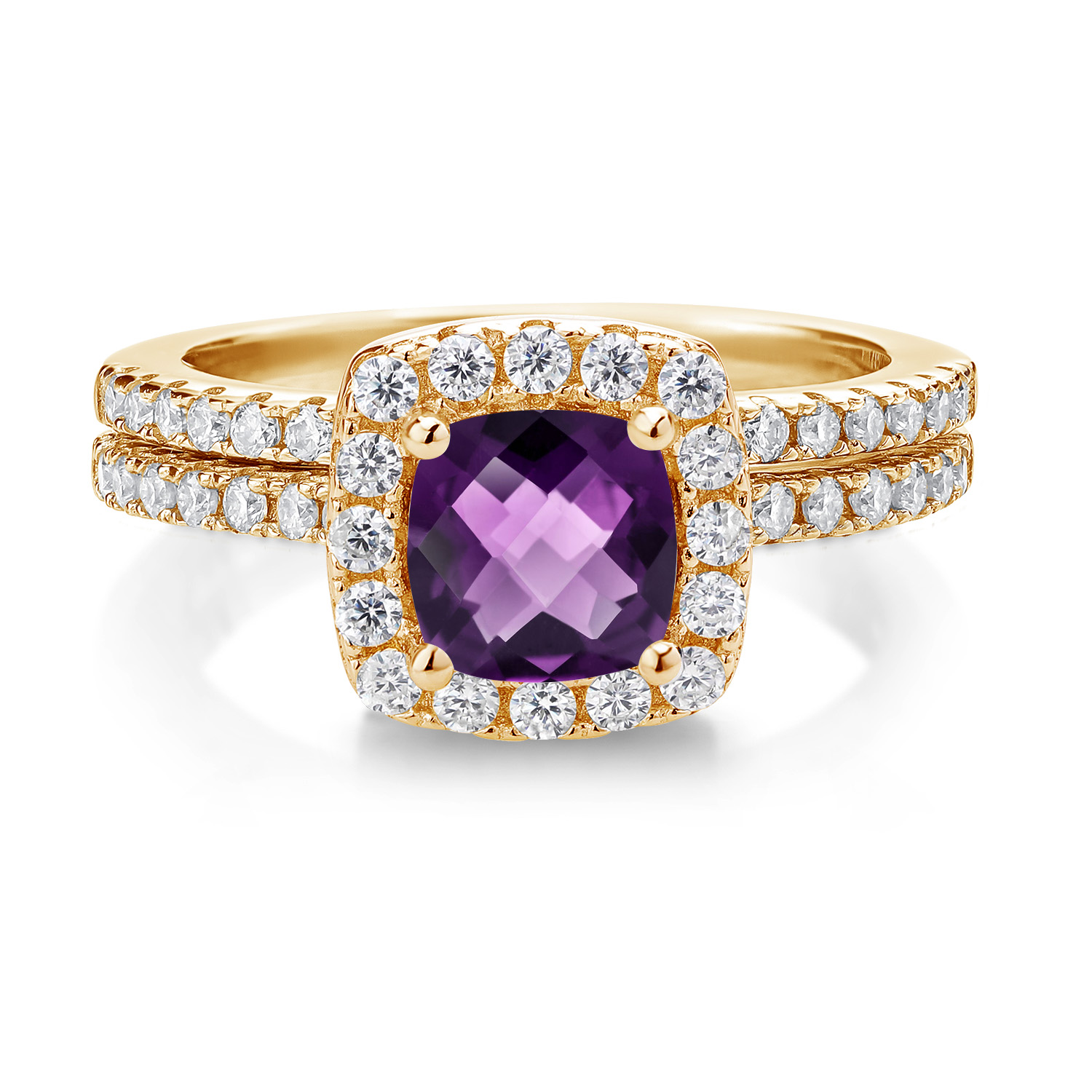 2-Tone Engagement Ring For Women | 925 Silver and 10K Yellow Gold | Gemstone Birthstone | 6MM Cushion Cut | Wedding Anniversary Promise Ring | Available In Size 5, 6, 7, 8, 9