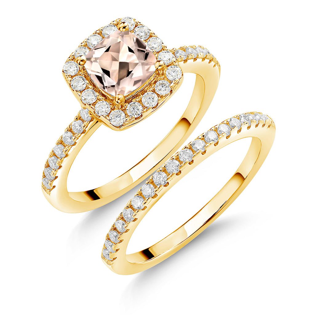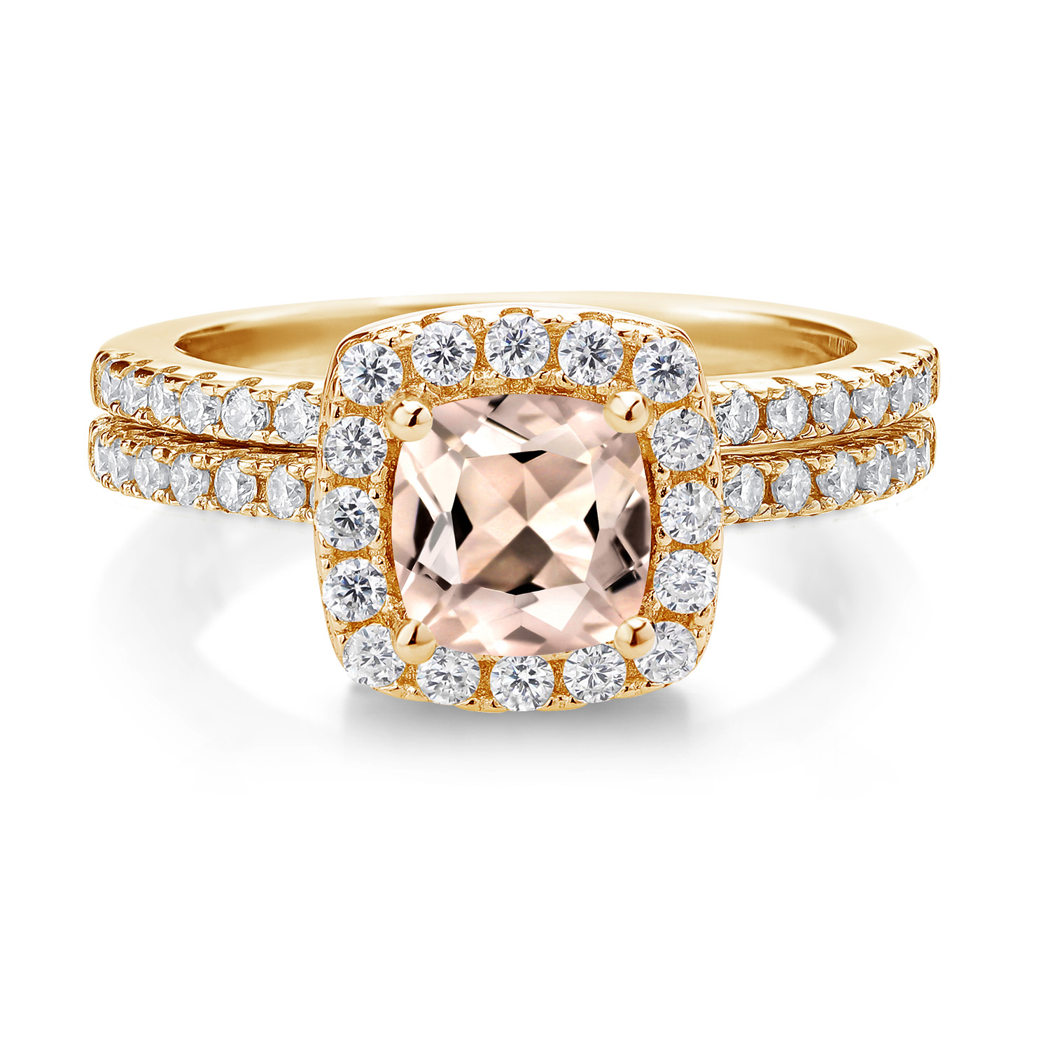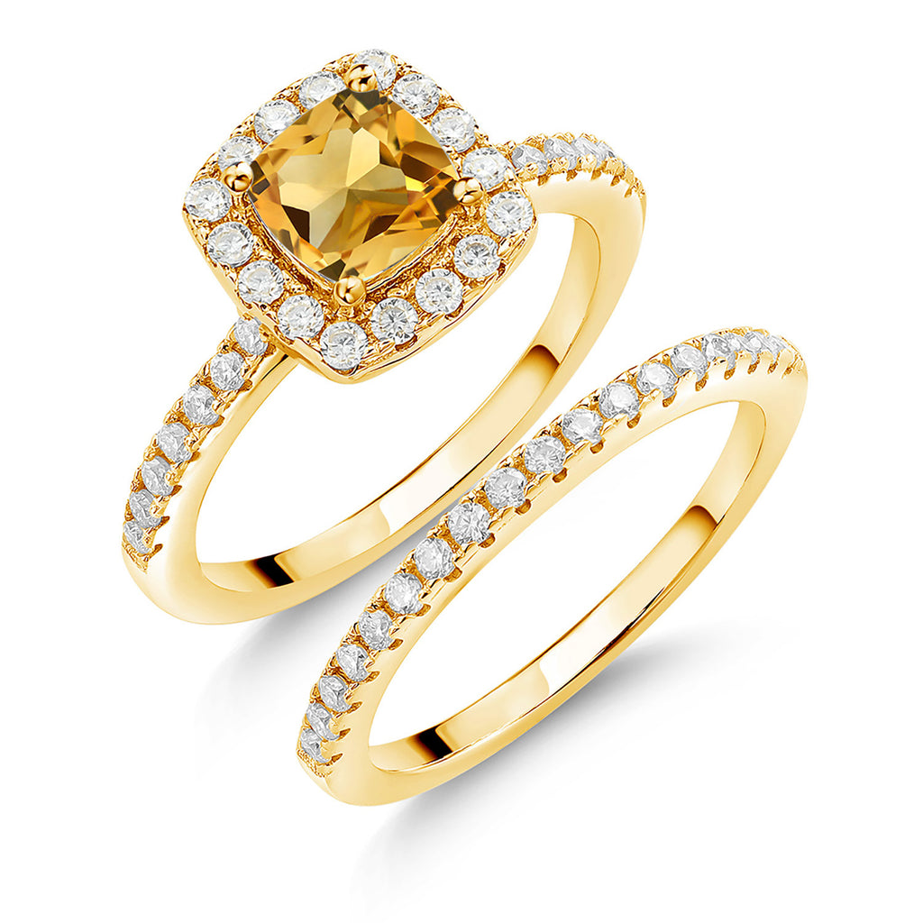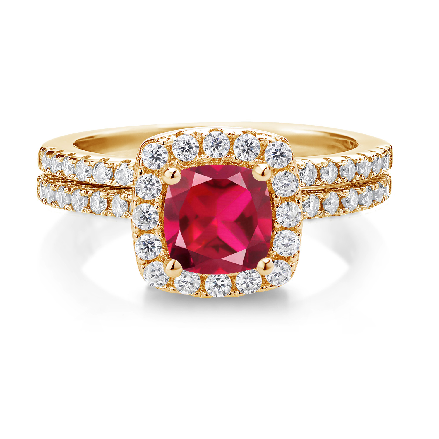 2-Tone Engagement Ring For Women | 925 Silver and 10K Yellow Gold | Gemstone Birthstone | 6MM Cushion Cut | Wedding Anniversary Promise Ring | Available In Size 5, 6, 7, 8, 9