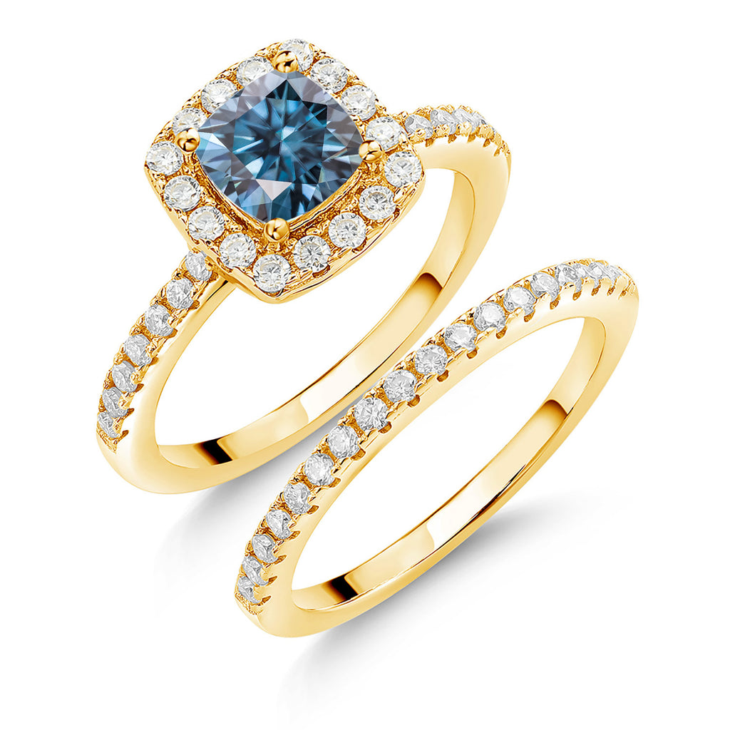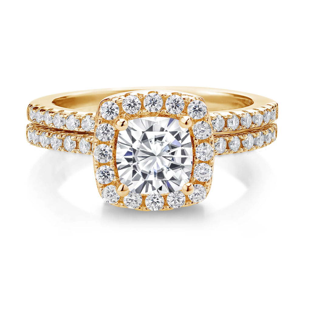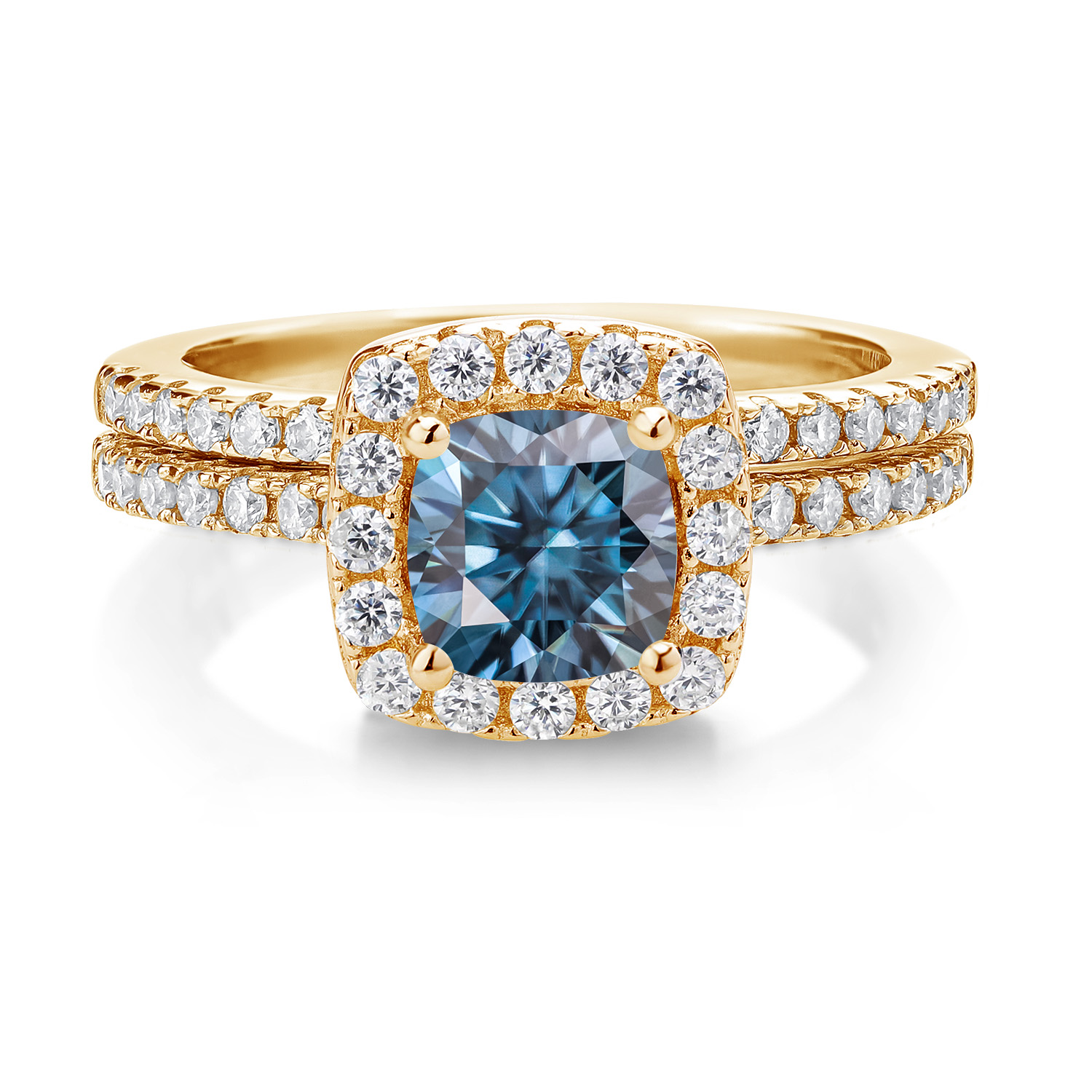 HALO & ACCENT STONE ELEGANCE: Surrounding the central gemstone, a halo of finely cut 1.3MM round accent stones enhances the ring's brilliance and adds a touch of regal charm. These perfectly set accents reflect exceptional craftsmanship, capturing light brilliantly with every movement. The intricate design work highlights the artistry involved in its creation, setting this bridal set apart as a masterpiece of elegance and sophistication.