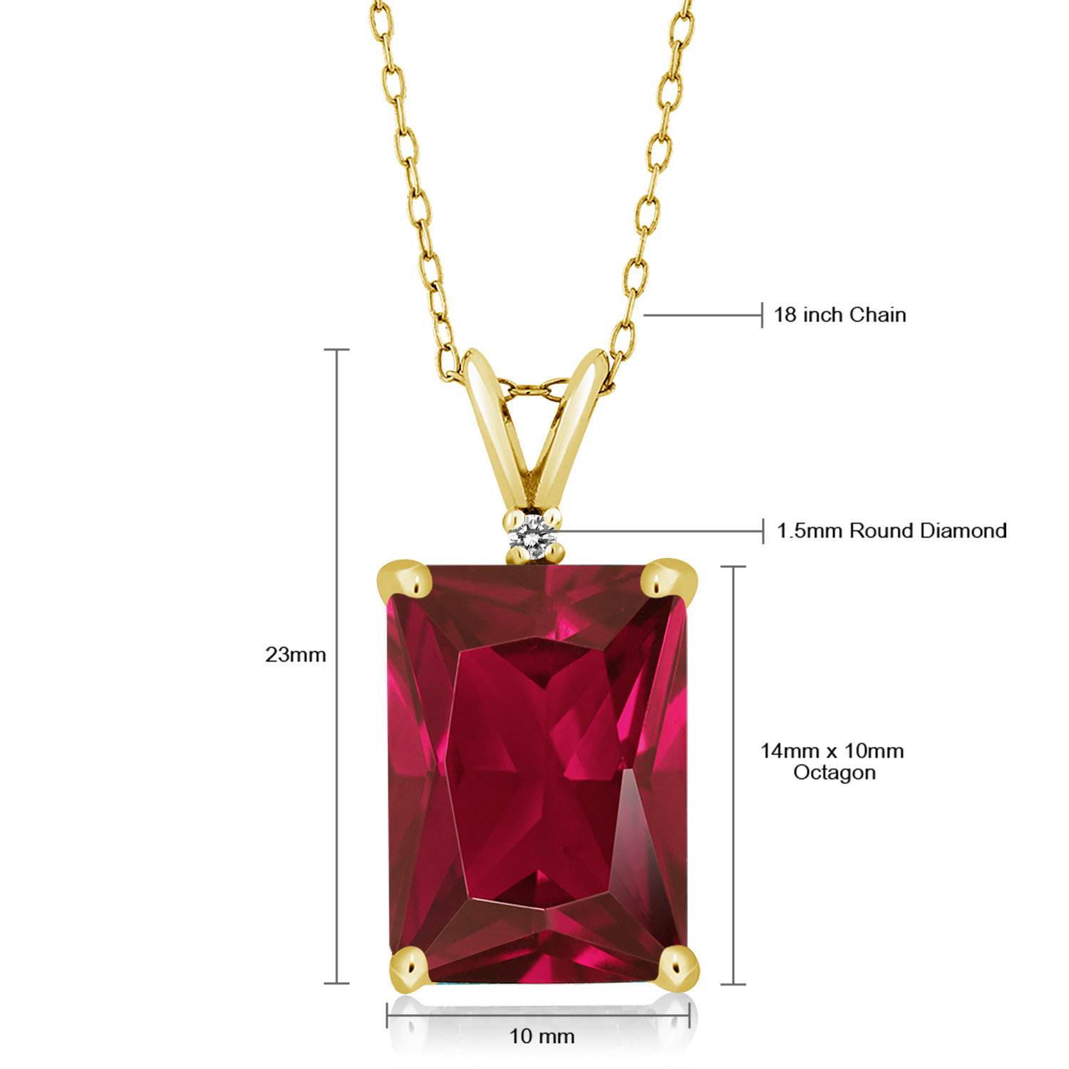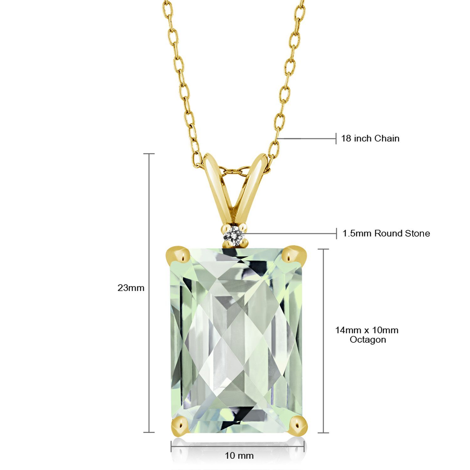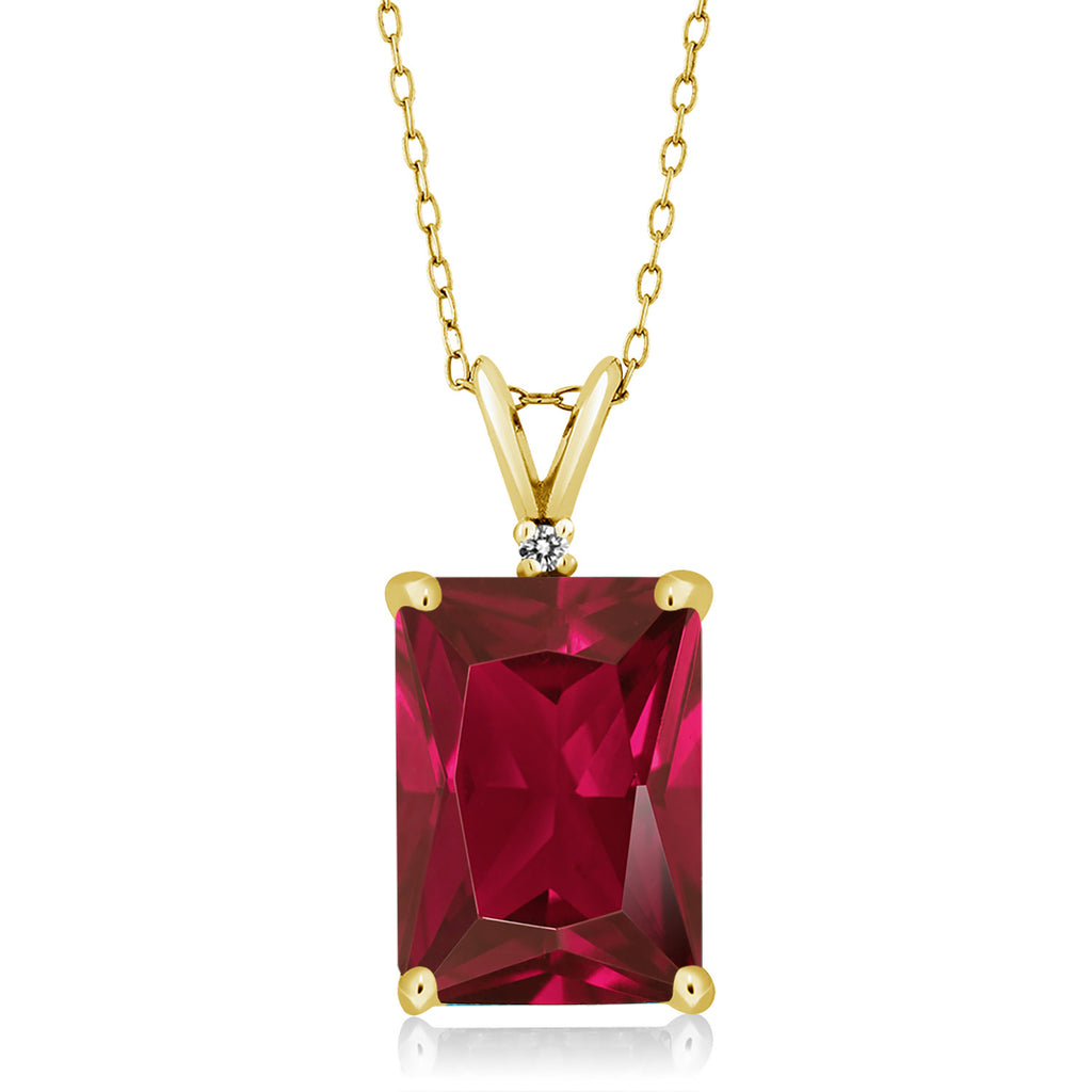 18K Yellow Gold Plated Silver Emerald Cut Gemstone Birthstone and Round Accent White Diamond Pendant Necklace for Women | 14X10MM Emerald Cut and 1.5MM Round | With 18 Inch Silver Chain