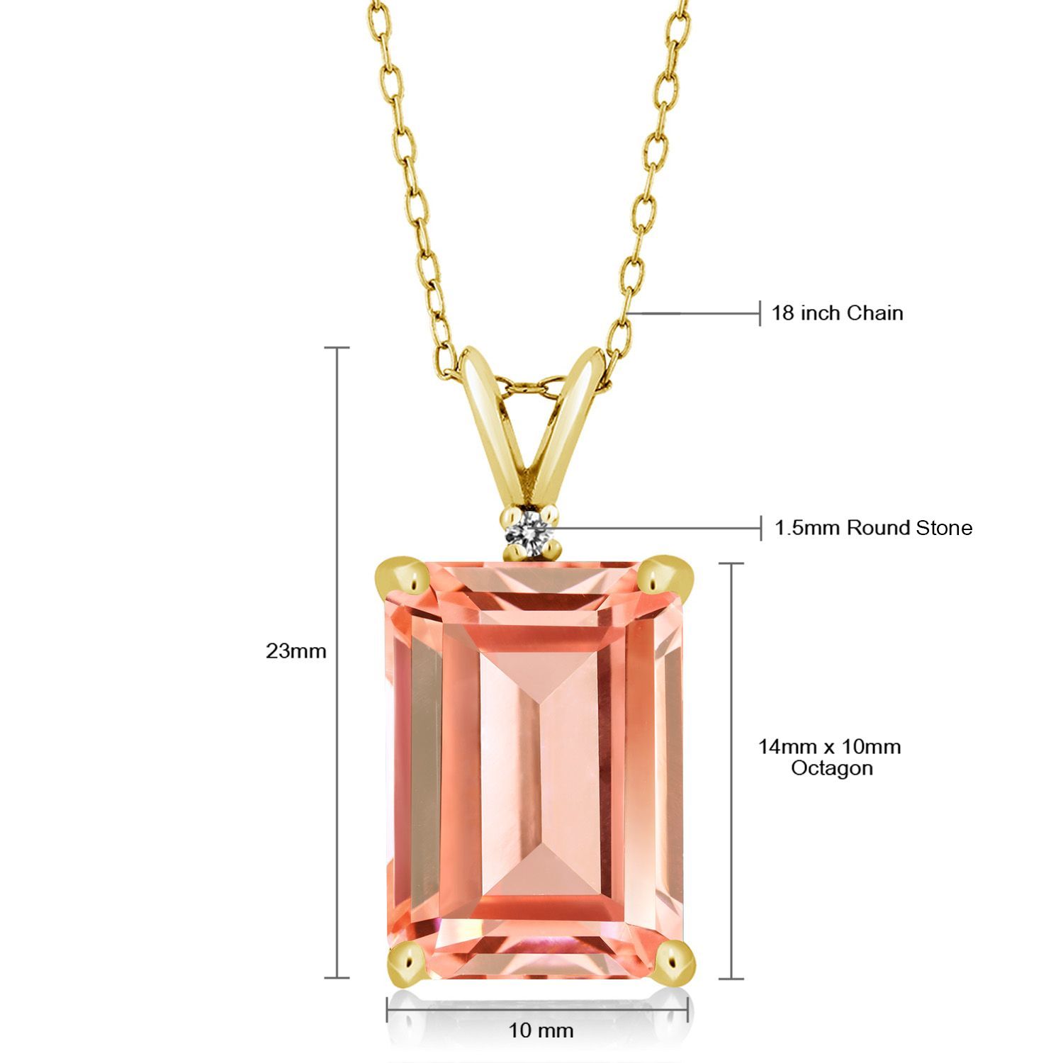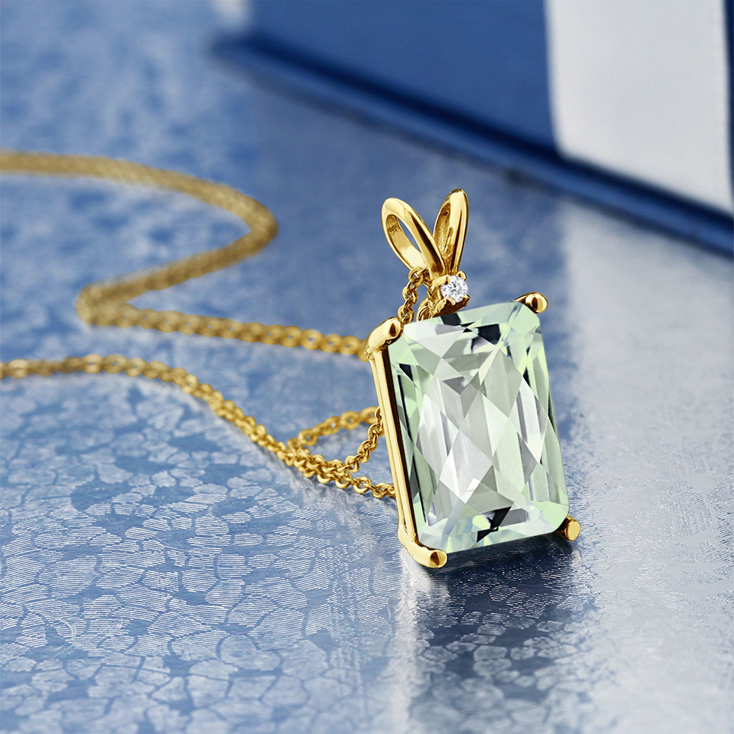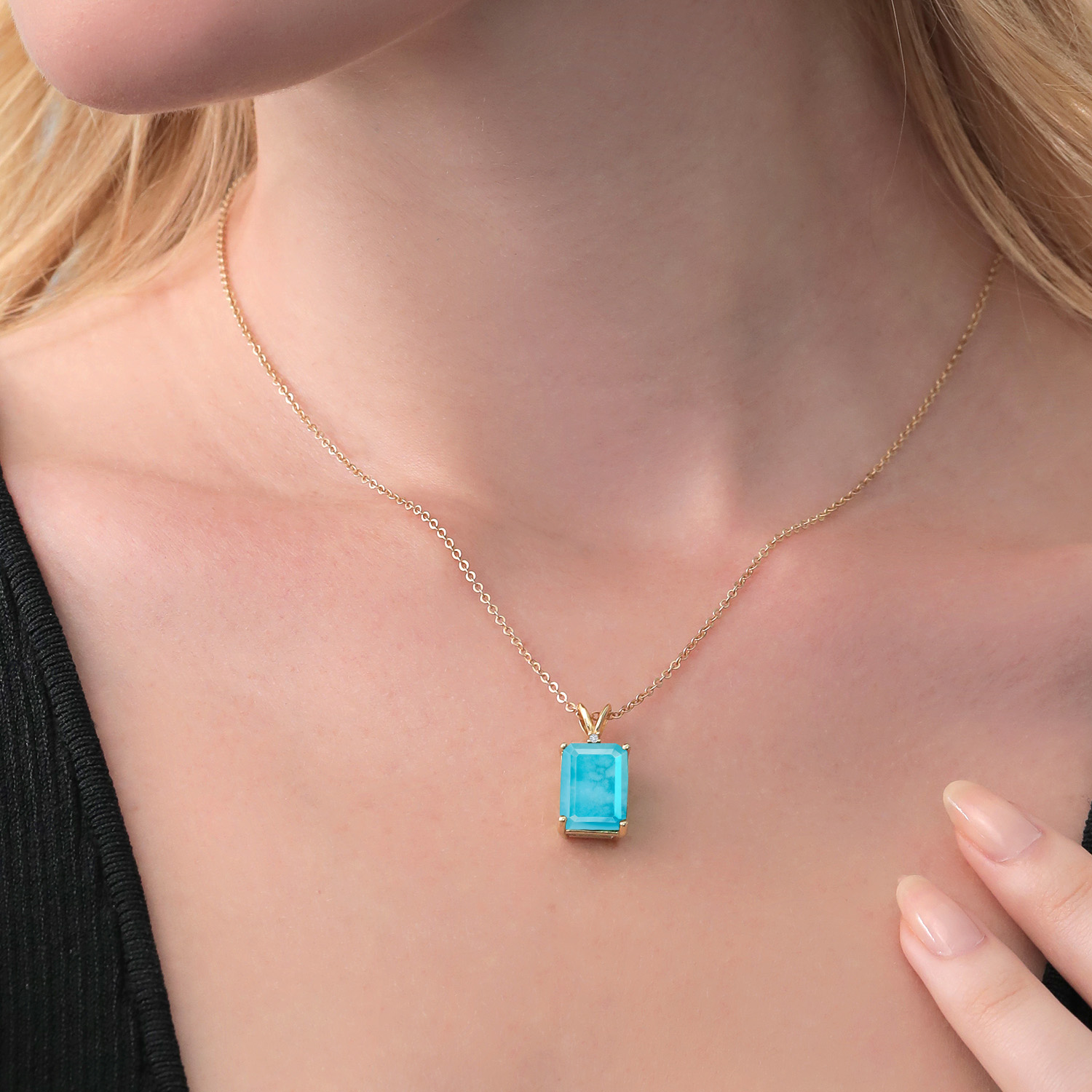 EXQUISITE CRAFTSMANSHIP WITH DIAMOND ACCENTS: The pendant is adorned with sparkling 1.5MM round white diamond accents that highlight the emerald-cut gemstone, offering a harmonious blend of simplicity and sophistication. Each diamond is meticulously set by skilled artisans, reflecting a commitment to detail and quality. This delicate interplay of gemstones and diamonds showcases an artful balance that speaks to the timeless elegance of fine jewelry.